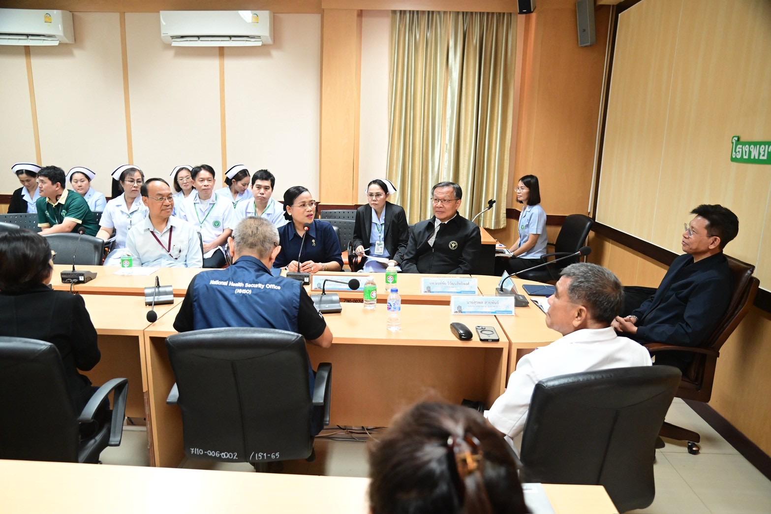 ในการนี้ มีการแลกเปลี่ยนเรียนรู้และนำเสนอผลการดำเนินงานร่วมกับผู้บริหารระดับจังหวัด โรงพยาบาล และหน่วยงานที่เกี่ยวข้อง พร้อมรับฟังข้อเสนอแนะเพื่อเพิ่มประสิทธิภาพการบริหารจัดการงบประมาณกองทุนหลักประกันสุขภาพแห่งชาติ