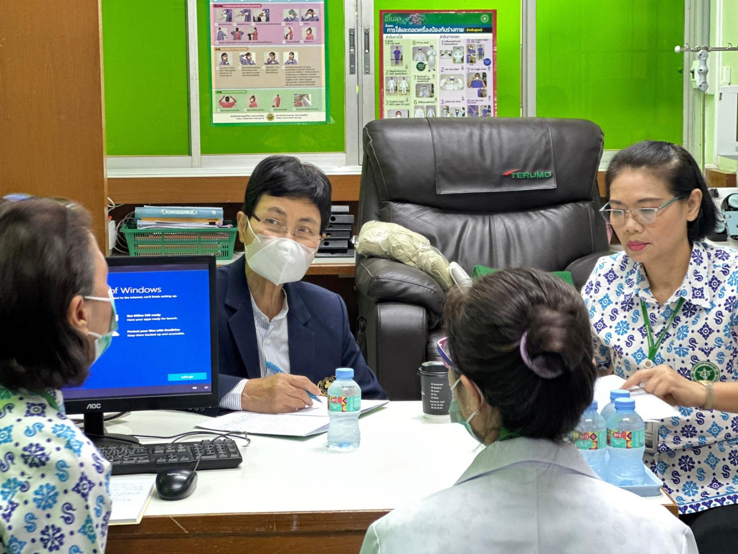 โศรยา ธรรมรักษ์ , อาจารย์วรรณระวี อัคนิจ , อาจารย์นันธิดา พันธุศาสตร์ และอาจารย์ศุภรัตน์ ไก่ฟ้า เพื่อต่ออายุและรับรองคุณภาพสถานพยาบาลฯ และเพื่อให้การพัฒนาคุณภาพโรงพยาบาลต่อเนื่อง เกิดประโยชน์สูงสุดต่อผู้รับบริการ