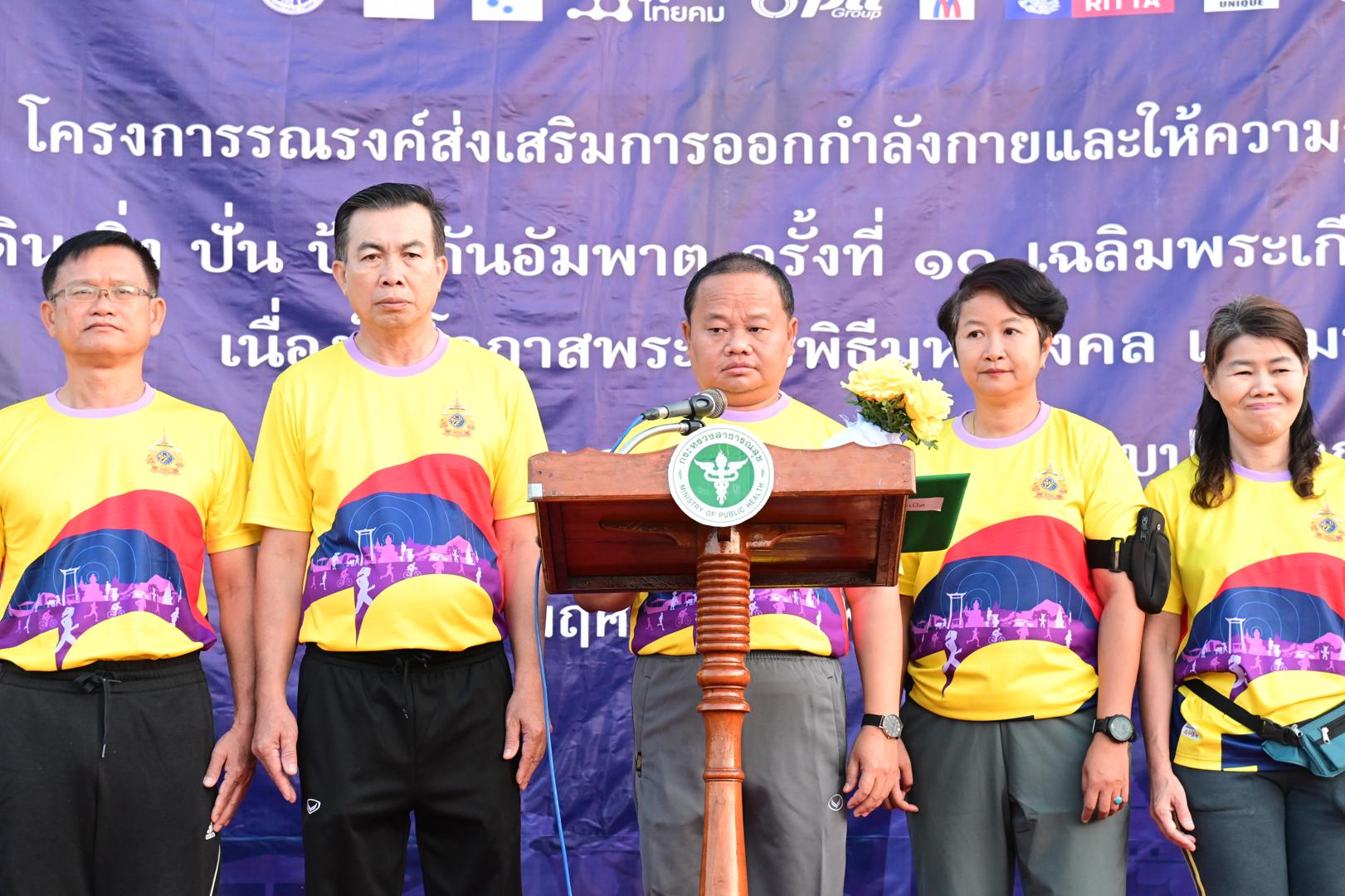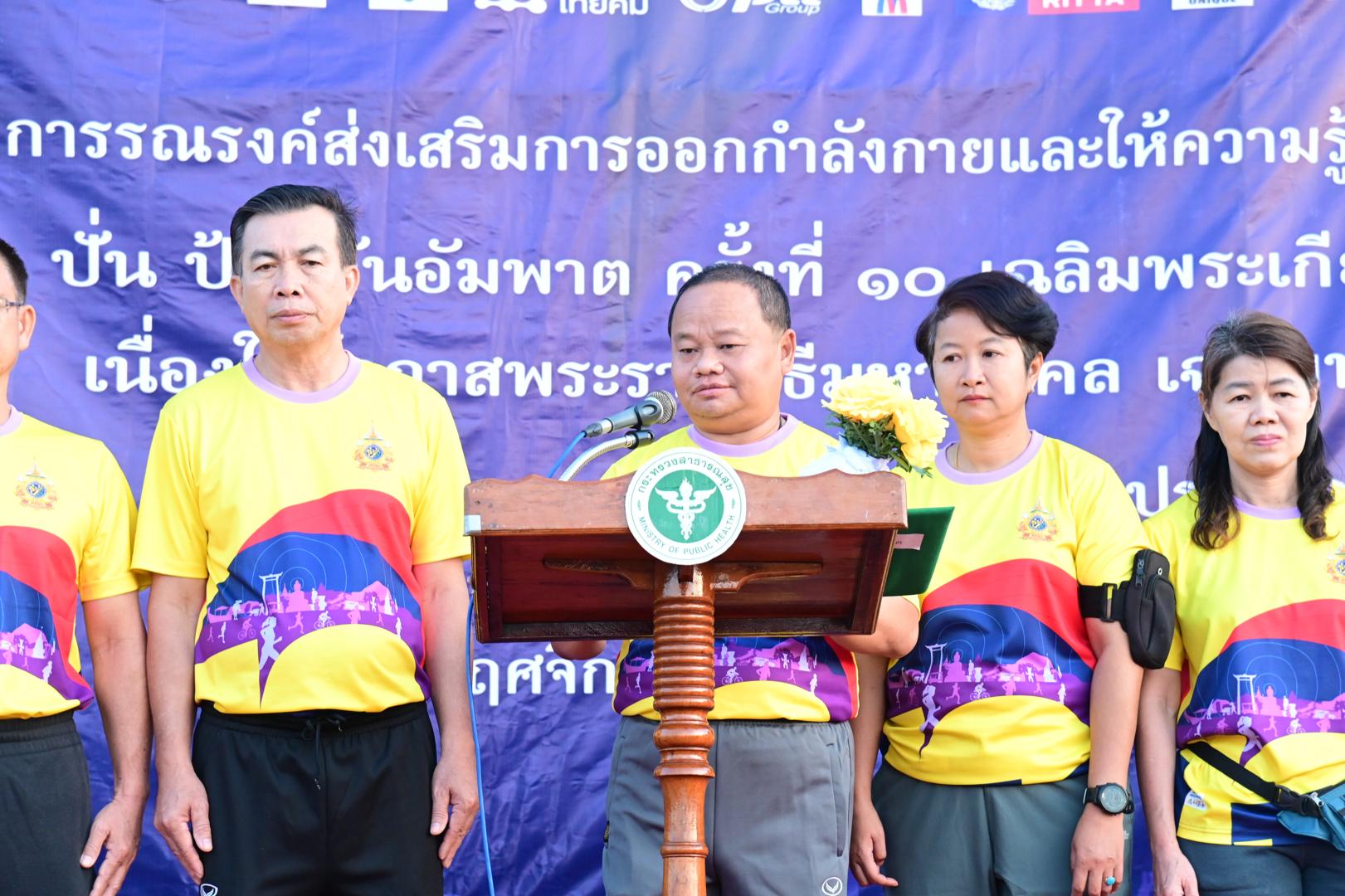 แพทย์หญิงกันตินันท์ มหาสุวีระชัย ผู้อำนวยการโรงพยาบาลมุกดาหาร มอบหมายให้ นายแพทย์วิลาศ นรินทร์ รองผู้อำนวยการฝ่ายการแพทย์ พร้อมด้วยคณะผู้บริหารและบุคลากรในสังกัดกระทรวงสาธารณสุข เข้าร่วมกิจกรรมโครงการเดินวิ่งปั่นป้องกันอัมพาต ครั้งที่ 10 เฉลิมพระเกียรติพระบาทสมเด็จพระเจ้าอยู่หัว เนื่องในโอกาสพระราชพิธีมหามงคลเฉลิมพระชนมพรรษา 6 รอบ 28 กรกฎาคม 2567