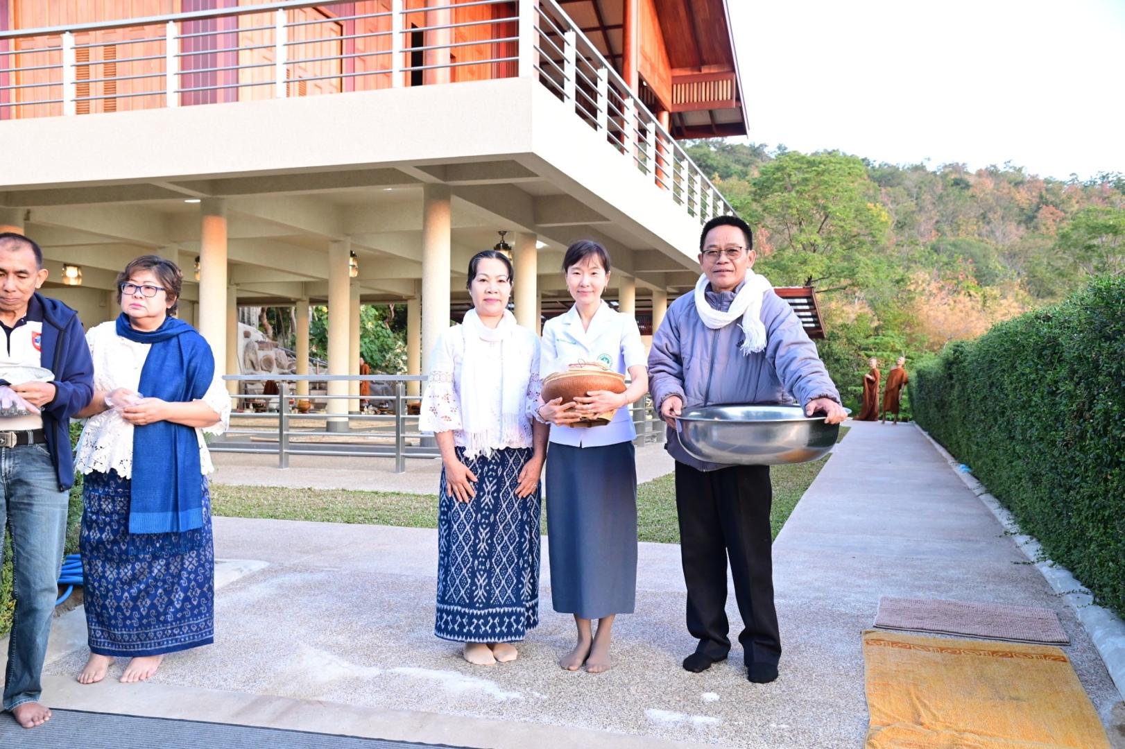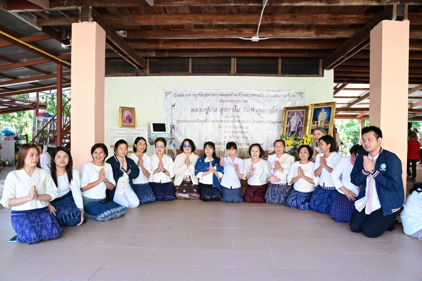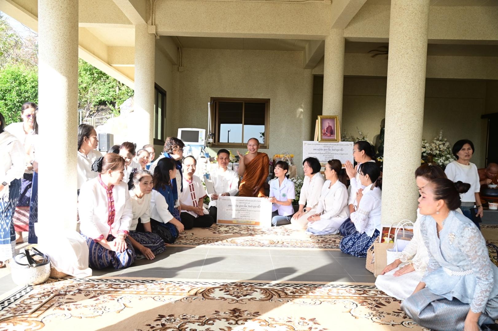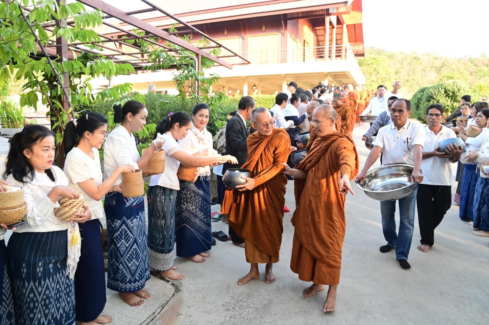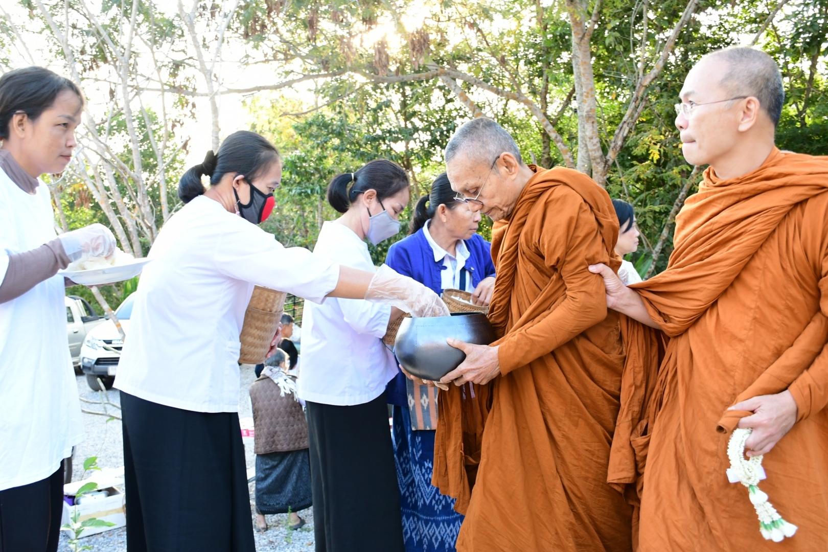 แพทย์หญิงกันตินันท์ มหาสุวีระชัย ผู้อำนวยการโรงพยาบาลมุกดาหาร พร้อมด้วยคณะผู้บริหารและเจ้าหน้าที่โรงพยาบาลมุกดาหาร ร่วมพิธีทำบุญตักบาตร และพิธีทอดผ้าป่าสามัคคีเพื่อจัดซื้อครุภัณฑ์การแพทย์ เครื่องช่วยหายใจ" น้อมถวายเป็นอริยะบูชา แด่ หลวงปู่อ้ม สุขกาโม วัดป่าภูผาผึ้ง เพื่อกิจการ ศูนย์หัวใจและหลอดเลือดสมอง โรงพยาบาลมุกดาหาร โดยวัดป่าวิสุทธิญาณ วัดป่าวิสุทธิสังวร และวัดป่าถ้ำศิลาธรรม