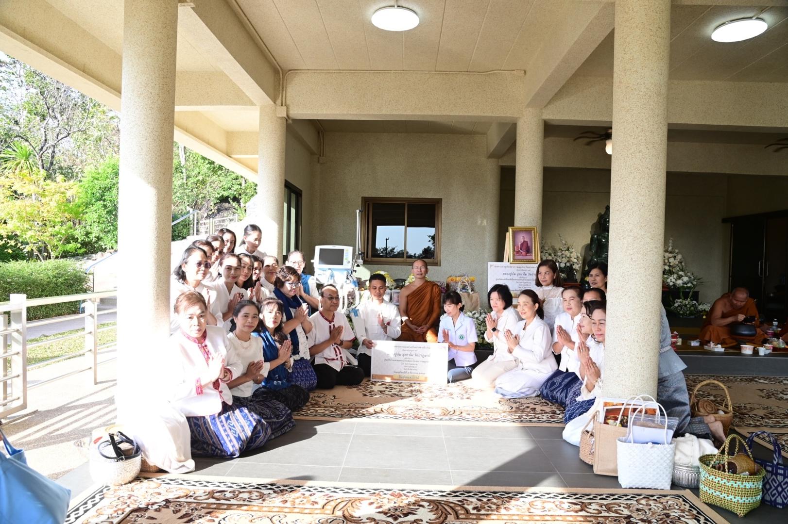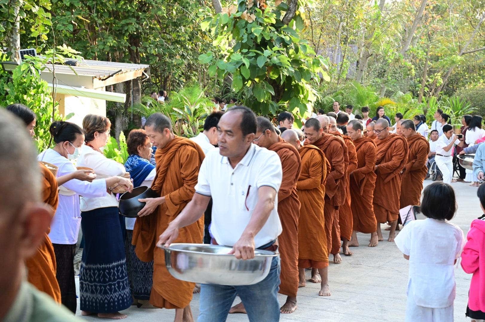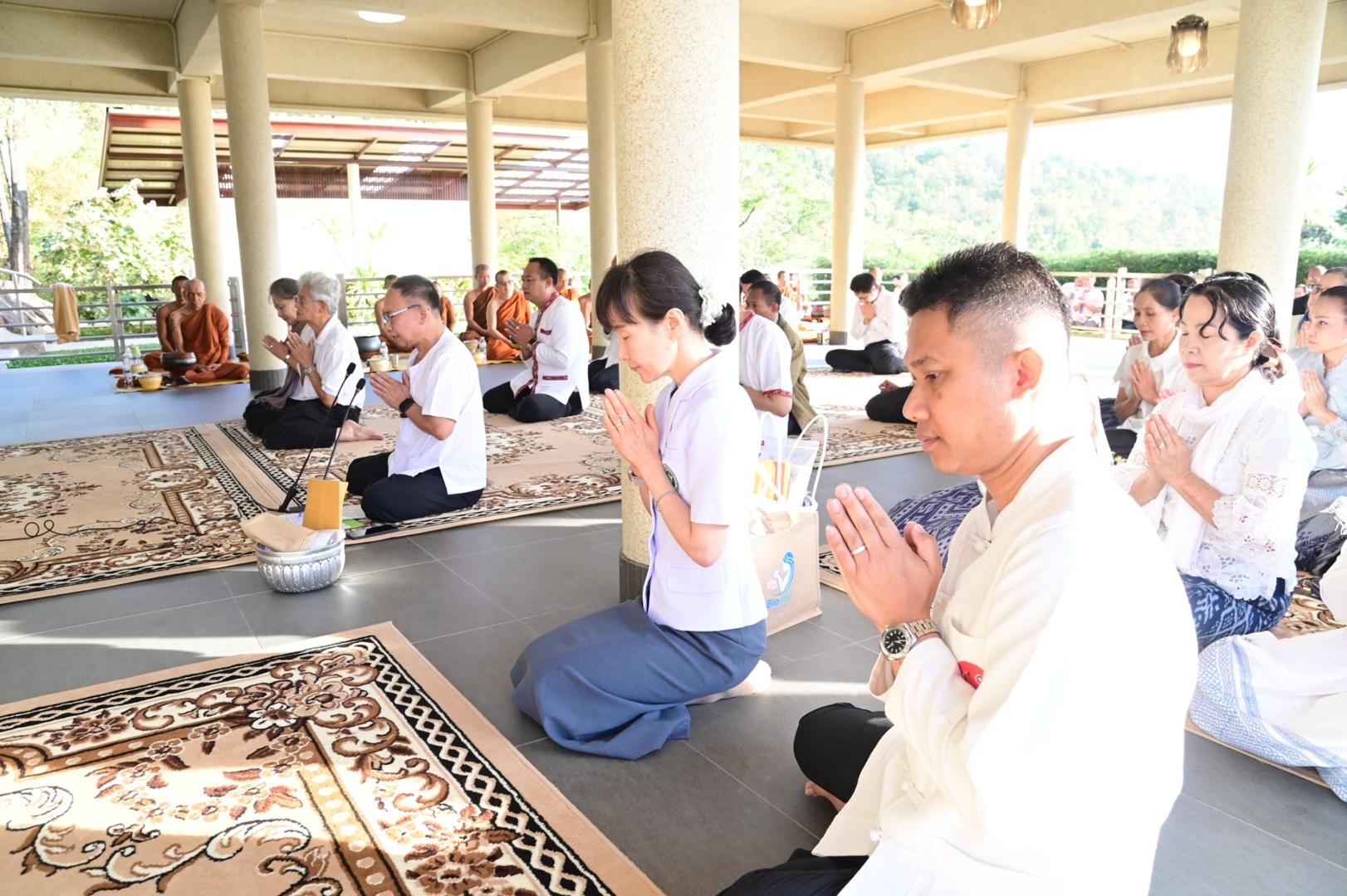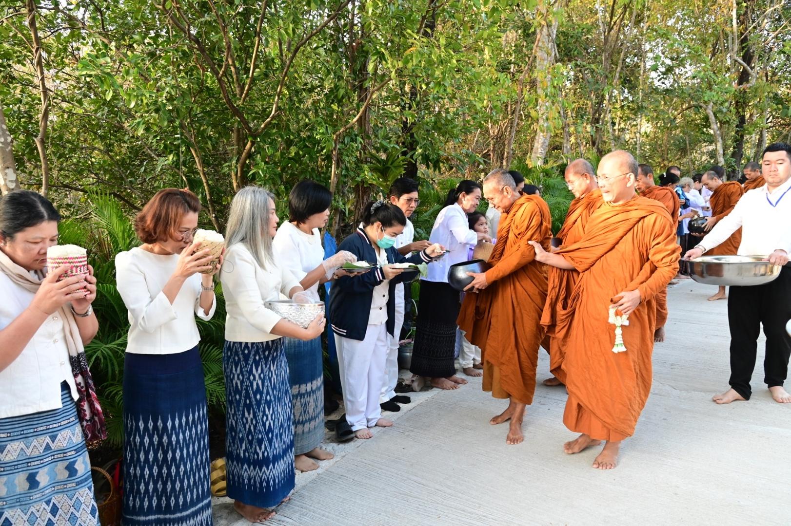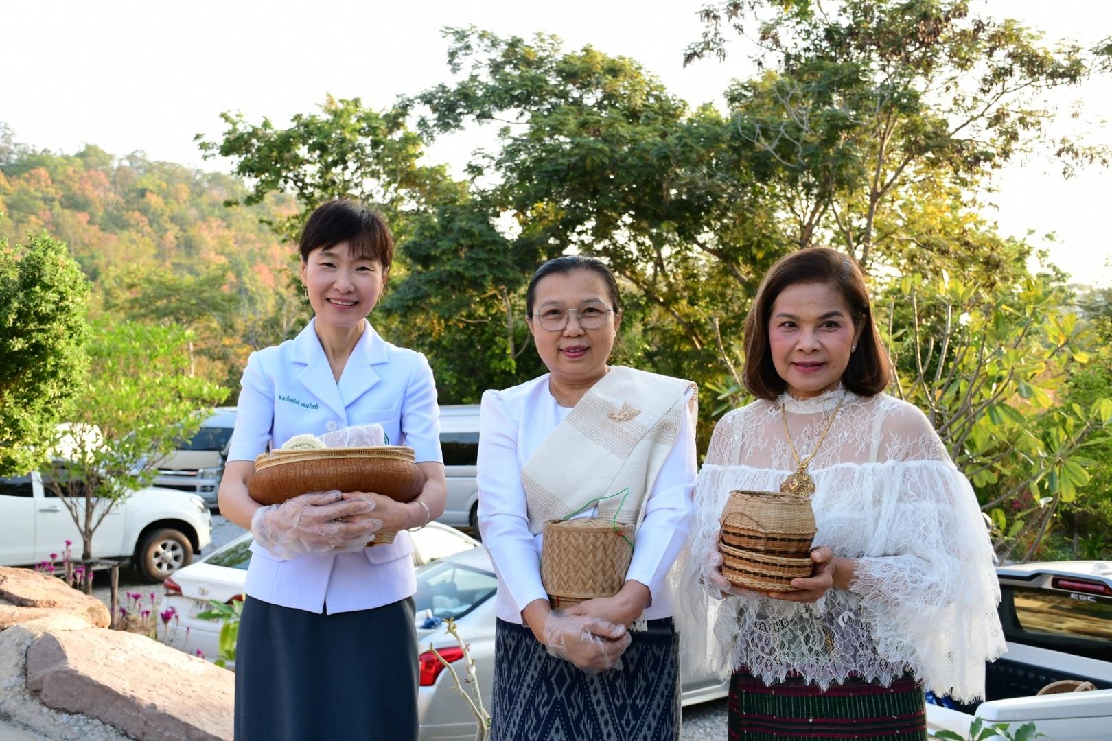 แพทย์หญิงกันตินันท์ มหาสุวีระชัย ผู้อำนวยการโรงพยาบาลมุกดาหาร พร้อมด้วยคณะผู้บริหารและเจ้าหน้าที่โรงพยาบาลมุกดาหาร ร่วมพิธีทำบุญตักบาตร และพิธีทอดผ้าป่าสามัคคีเพื่อจัดซื้อครุภัณฑ์การแพทย์ เครื่องช่วยหายใจ" น้อมถวายเป็นอริยะบูชา แด่ หลวงปู่อ้ม สุขกาโม วัดป่าภูผาผึ้ง เพื่อกิจการ ศูนย์หัวใจและหลอดเลือดสมอง โรงพยาบาลมุกดาหาร โดยวัดป่าวิสุทธิญาณ วัดป่าวิสุทธิสังวร และวัดป่าถ้ำศิลาธรรม