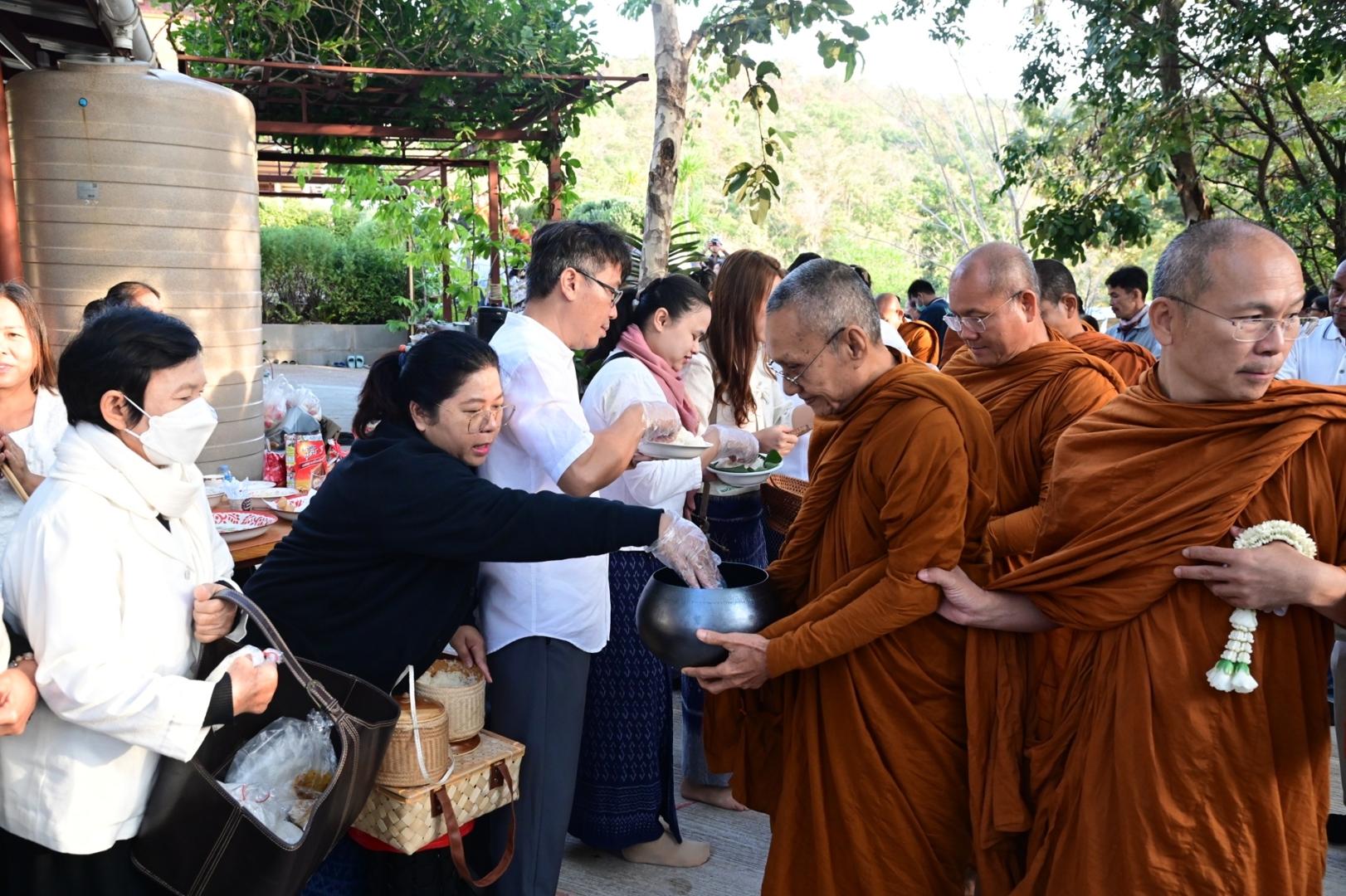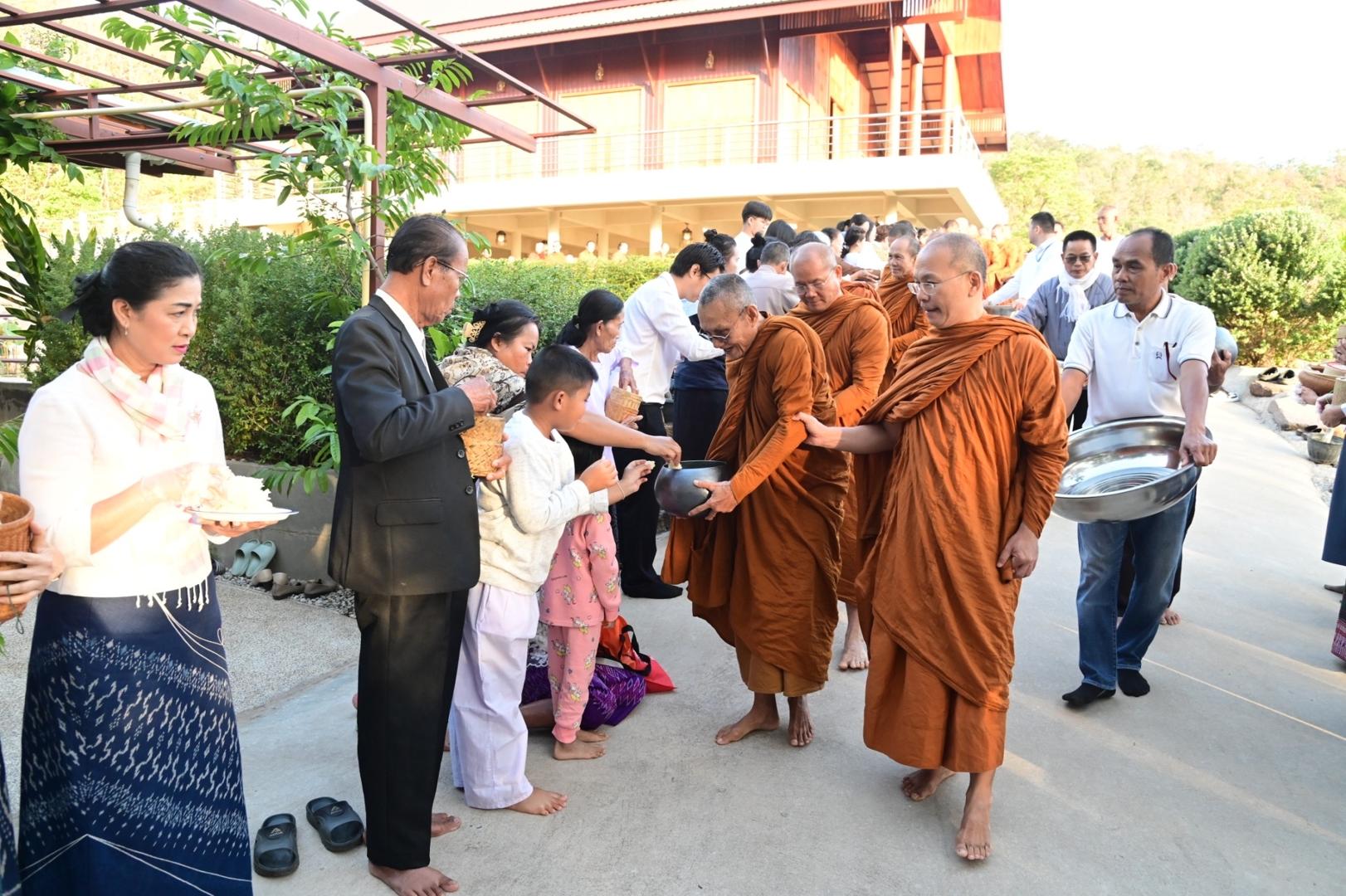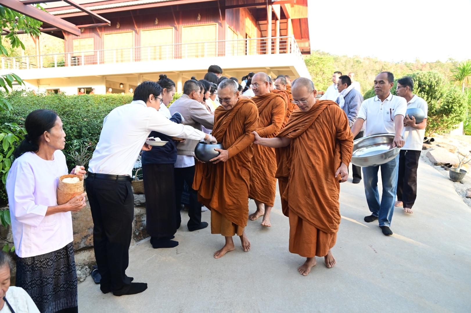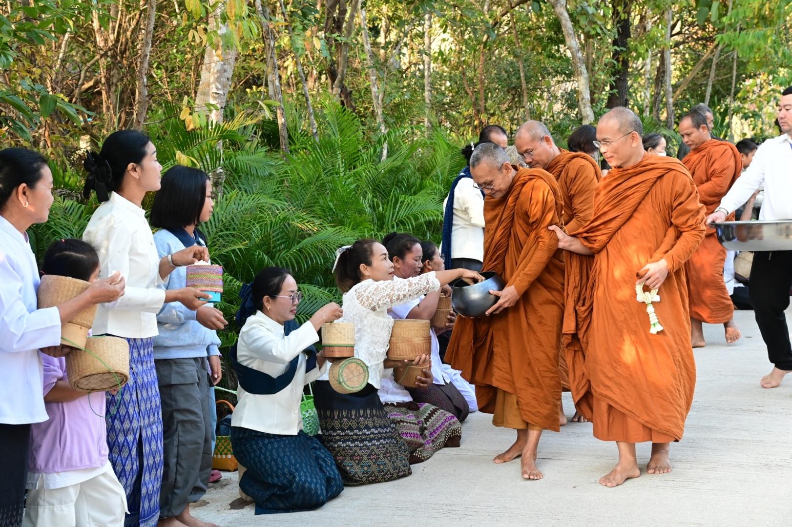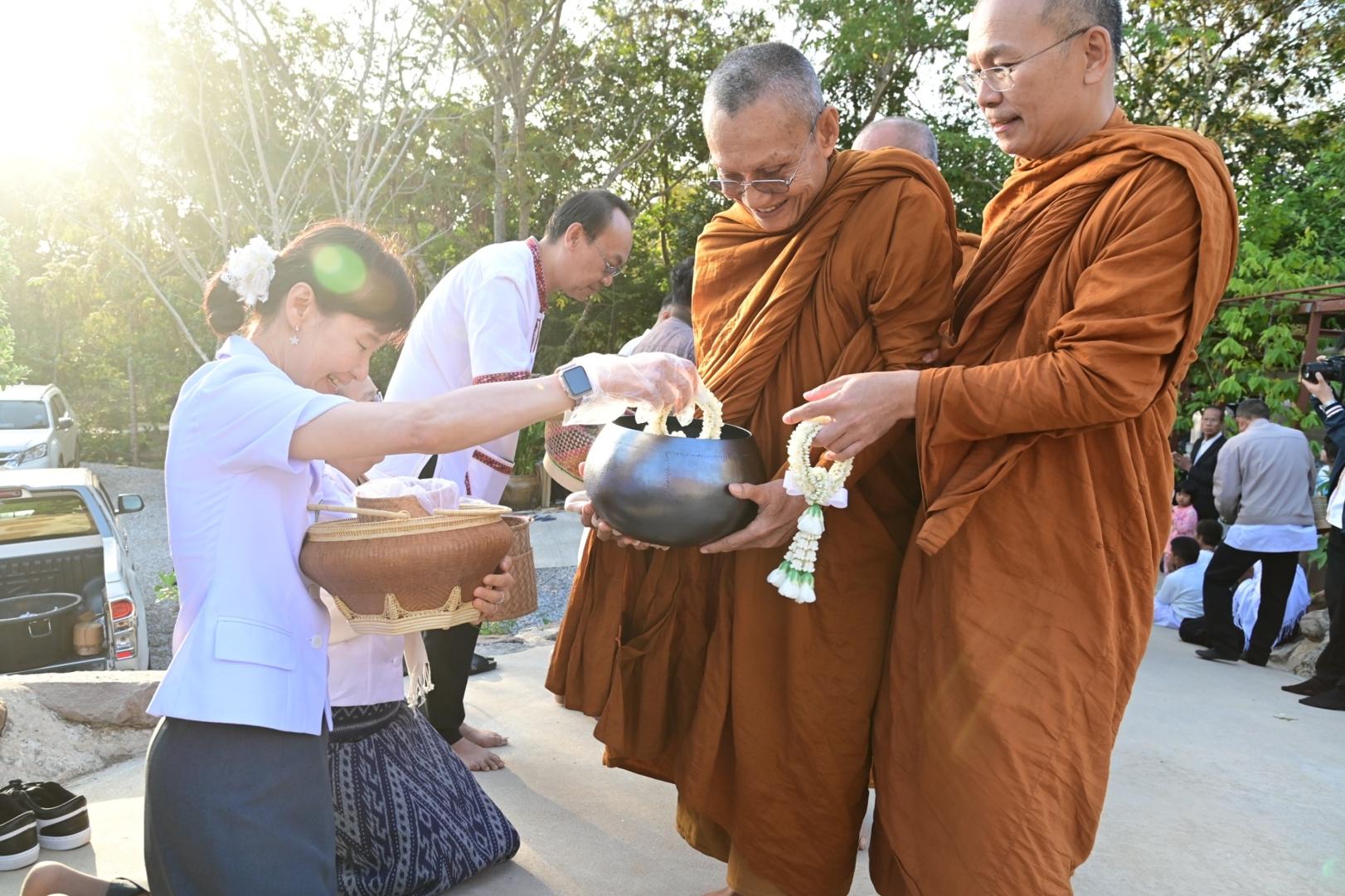 แพทย์หญิงกันตินันท์ มหาสุวีระชัย ผู้อำนวยการโรงพยาบาลมุกดาหาร พร้อมด้วยคณะผู้บริหารและเจ้าหน้าที่โรงพยาบาลมุกดาหาร ร่วมพิธีทำบุญตักบาตร และพิธีทอดผ้าป่าสามัคคีเพื่อจัดซื้อครุภัณฑ์การแพทย์ เครื่องช่วยหายใจ" น้อมถวายเป็นอริยะบูชา แด่ หลวงปู่อ้ม สุขกาโม วัดป่าภูผาผึ้ง เพื่อกิจการ ศูนย์หัวใจและหลอดเลือดสมอง โรงพยาบาลมุกดาหาร โดยวัดป่าวิสุทธิญาณ วัดป่าวิสุทธิสังวร และวัดป่าถ้ำศิลาธรรม