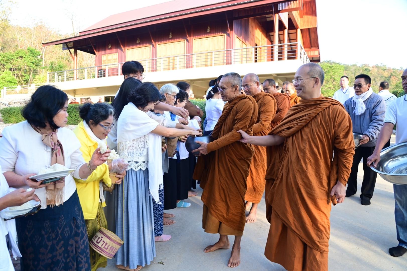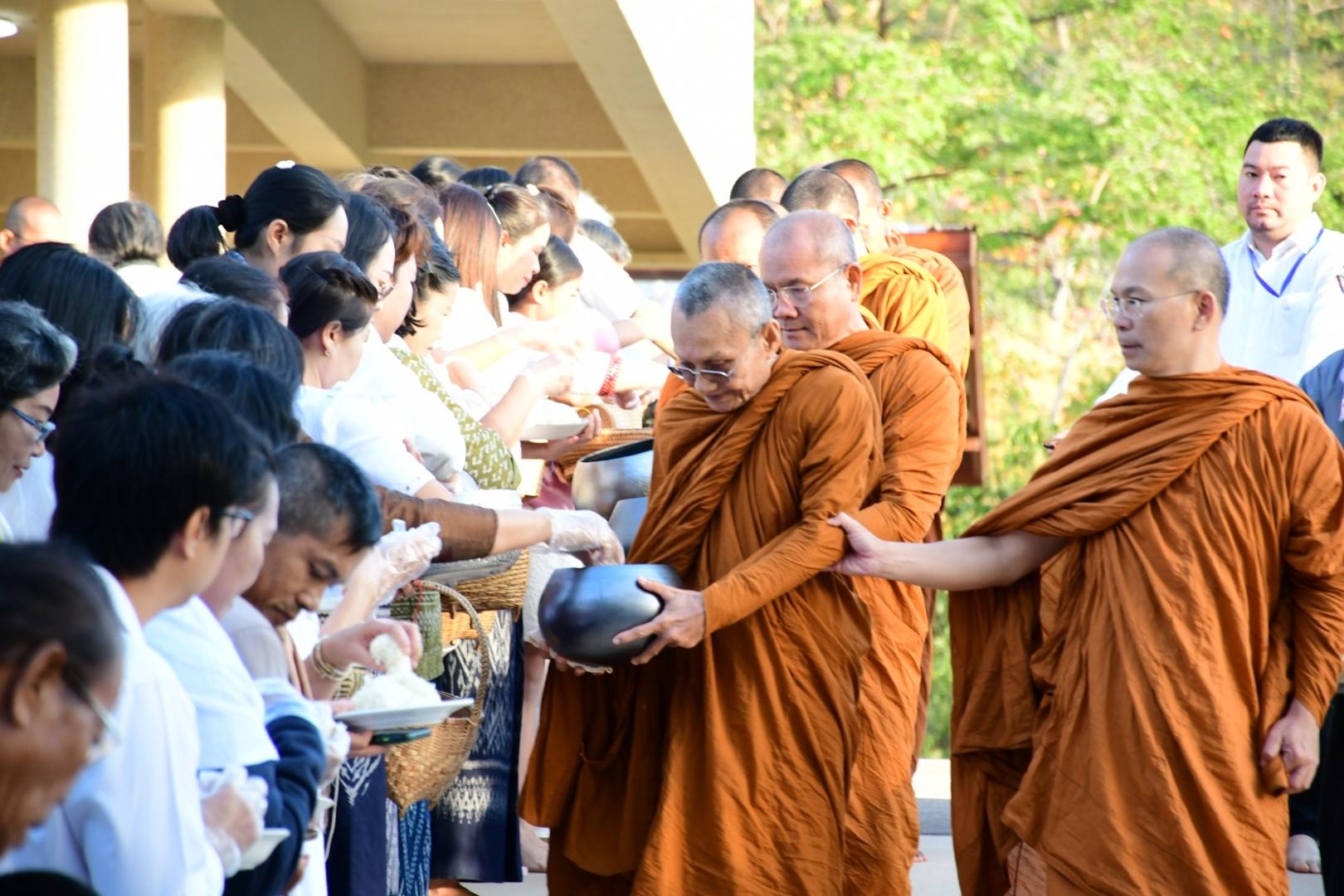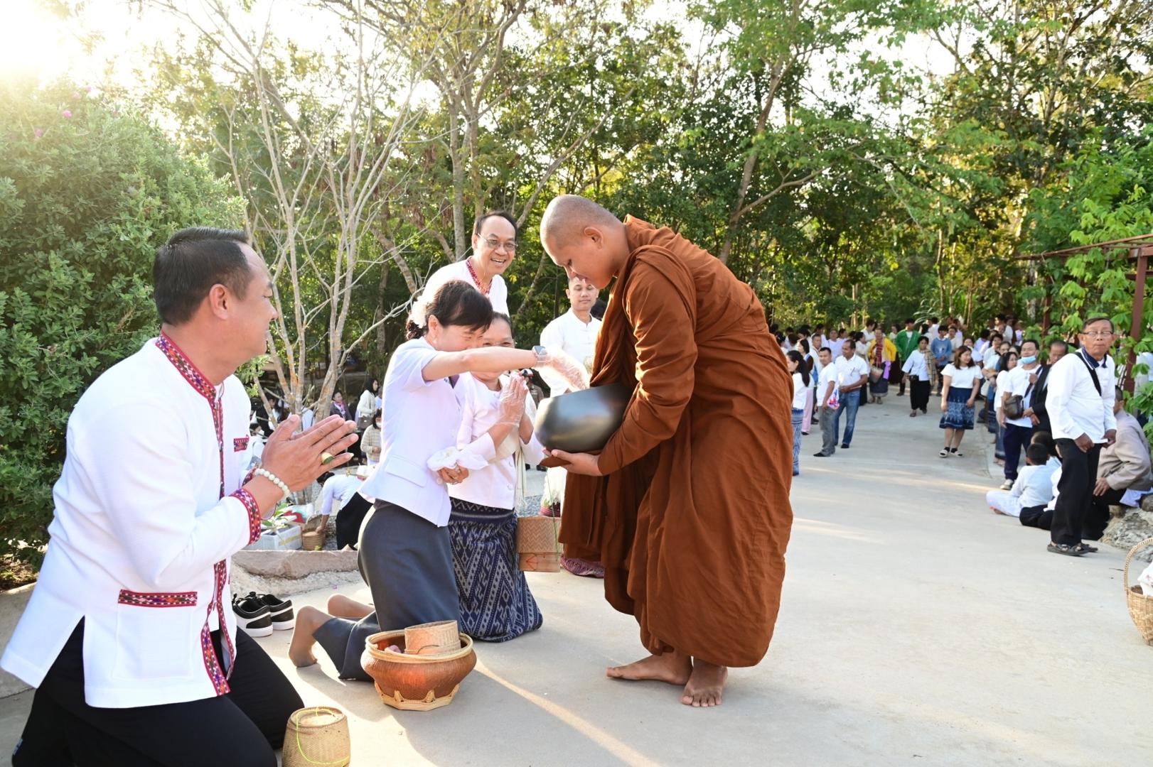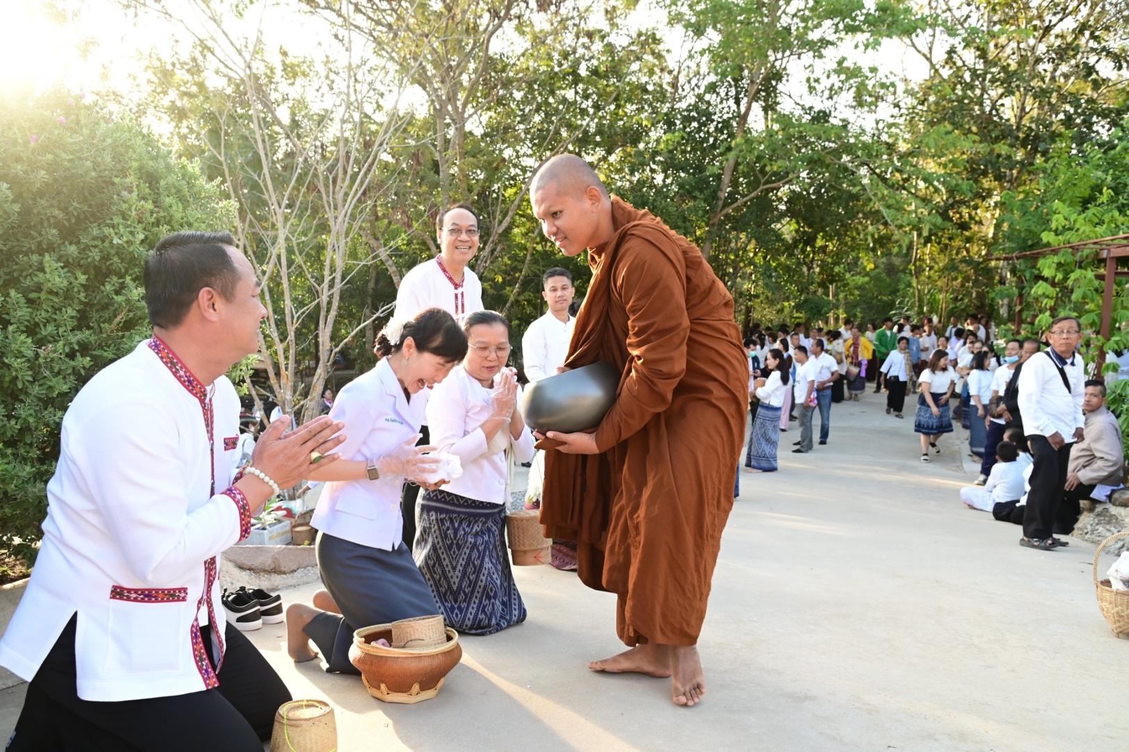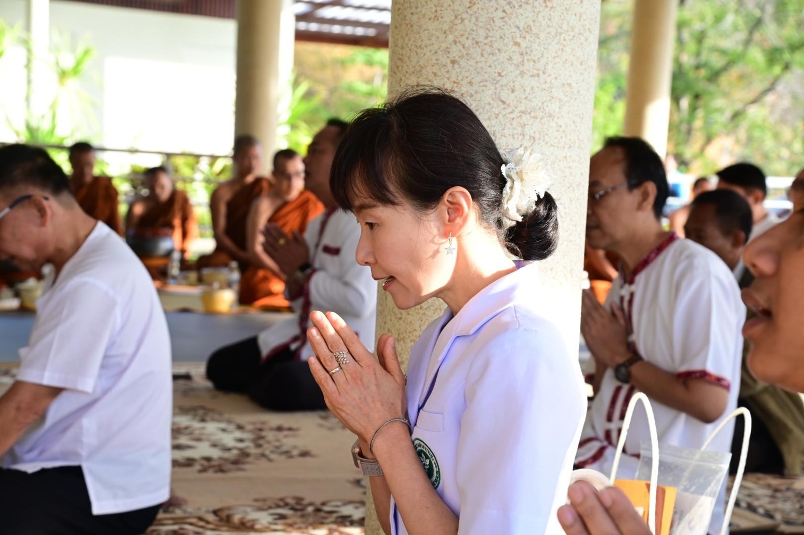 แพทย์หญิงกันตินันท์ มหาสุวีระชัย ผู้อำนวยการโรงพยาบาลมุกดาหาร พร้อมด้วยคณะผู้บริหารและเจ้าหน้าที่โรงพยาบาลมุกดาหาร ร่วมพิธีทำบุญตักบาตร และพิธีทอดผ้าป่าสามัคคีเพื่อจัดซื้อครุภัณฑ์การแพทย์ เครื่องช่วยหายใจ" น้อมถวายเป็นอริยะบูชา แด่ หลวงปู่อ้ม สุขกาโม วัดป่าภูผาผึ้ง เพื่อกิจการ ศูนย์หัวใจและหลอดเลือดสมอง โรงพยาบาลมุกดาหาร โดยวัดป่าวิสุทธิญาณ วัดป่าวิสุทธิสังวร และวัดป่าถ้ำศิลาธรรม