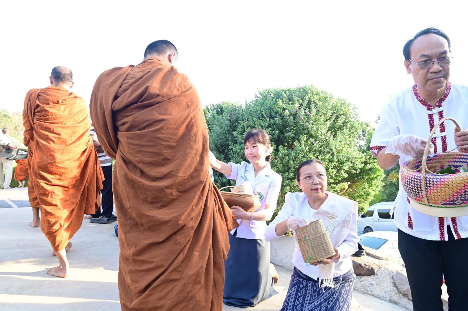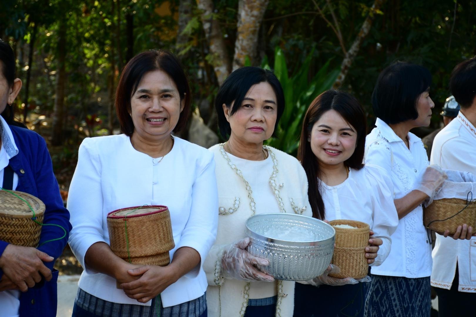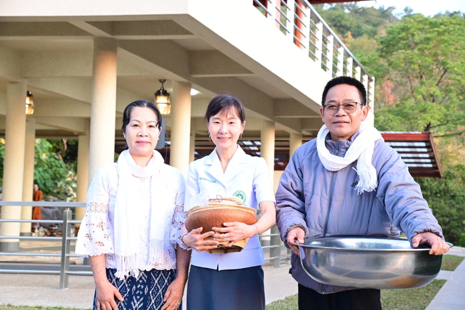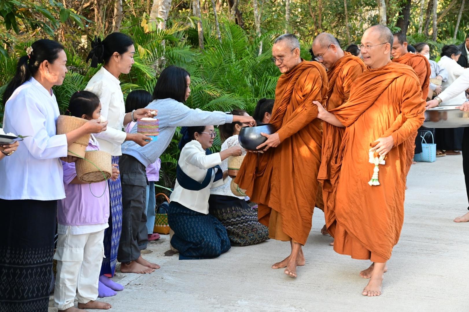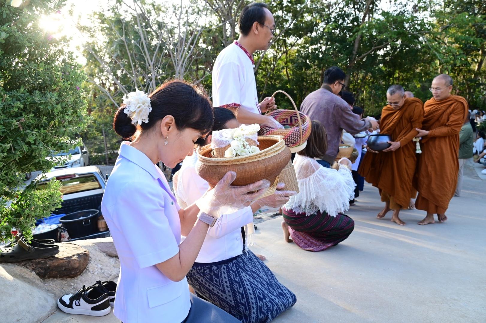 แพทย์หญิงกันตินันท์ มหาสุวีระชัย ผู้อำนวยการโรงพยาบาลมุกดาหาร พร้อมด้วยคณะผู้บริหารและเจ้าหน้าที่โรงพยาบาลมุกดาหาร ร่วมพิธีทำบุญตักบาตร และพิธีทอดผ้าป่าสามัคคีเพื่อจัดซื้อครุภัณฑ์การแพทย์ เครื่องช่วยหายใจ" น้อมถวายเป็นอริยะบูชา แด่ หลวงปู่อ้ม สุขกาโม วัดป่าภูผาผึ้ง เพื่อกิจการ ศูนย์หัวใจและหลอดเลือดสมอง โรงพยาบาลมุกดาหาร โดยวัดป่าวิสุทธิญาณ วัดป่าวิสุทธิสังวร และวัดป่าถ้ำศิลาธรรม