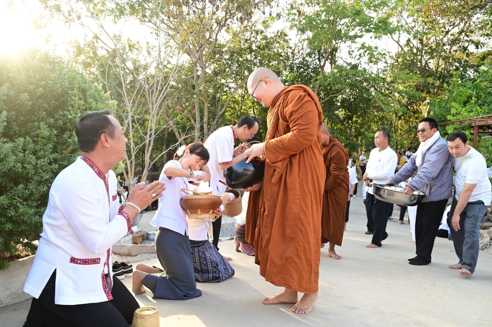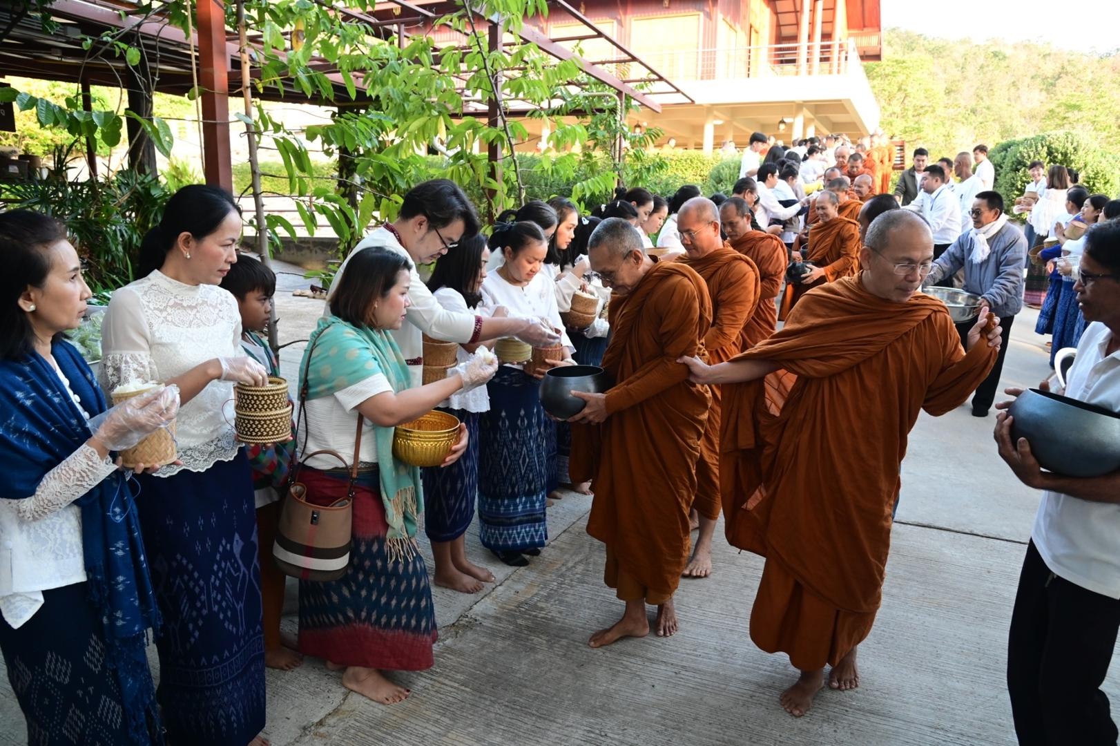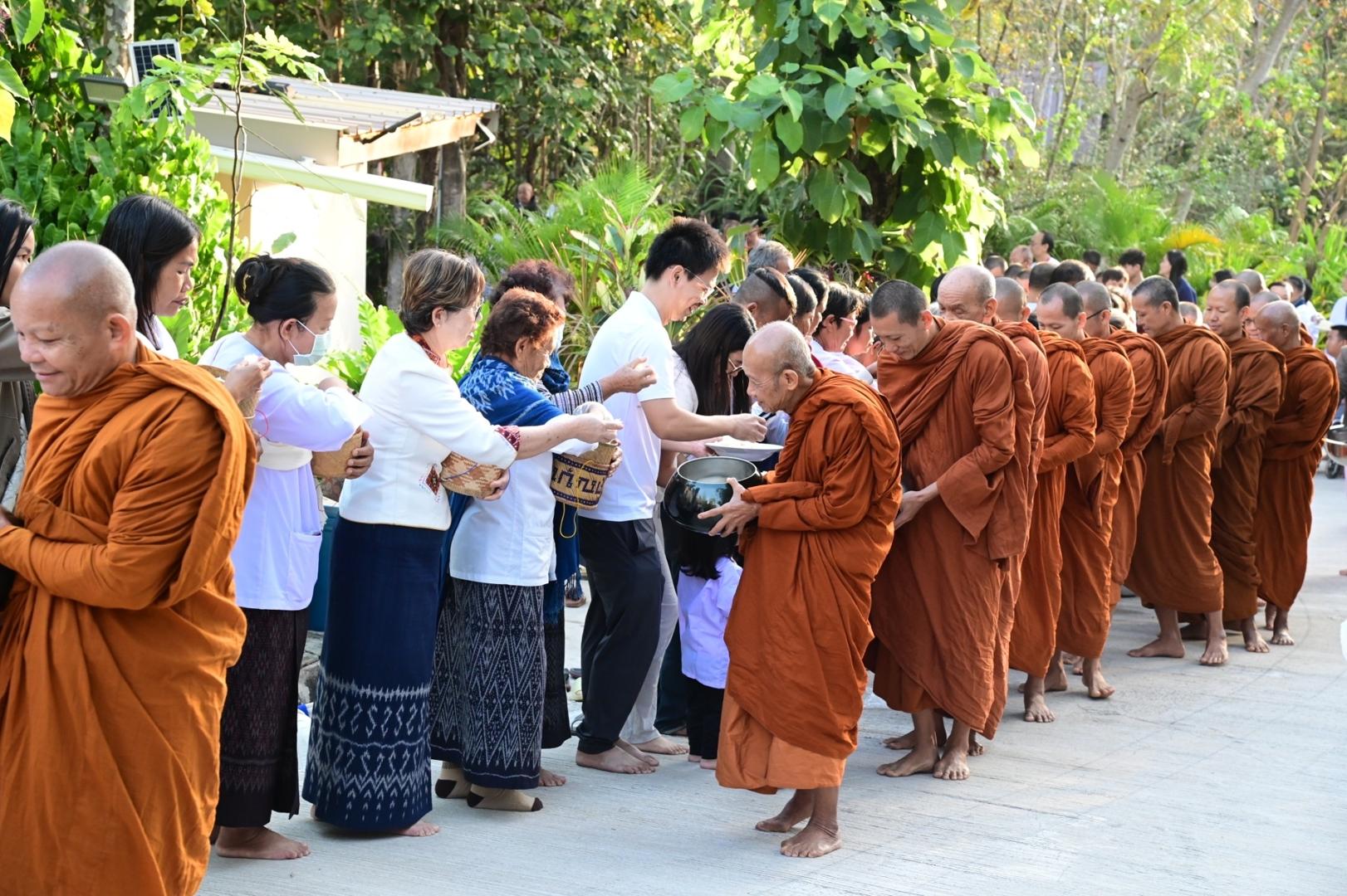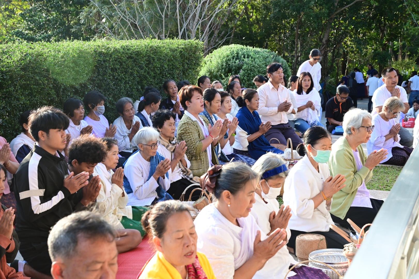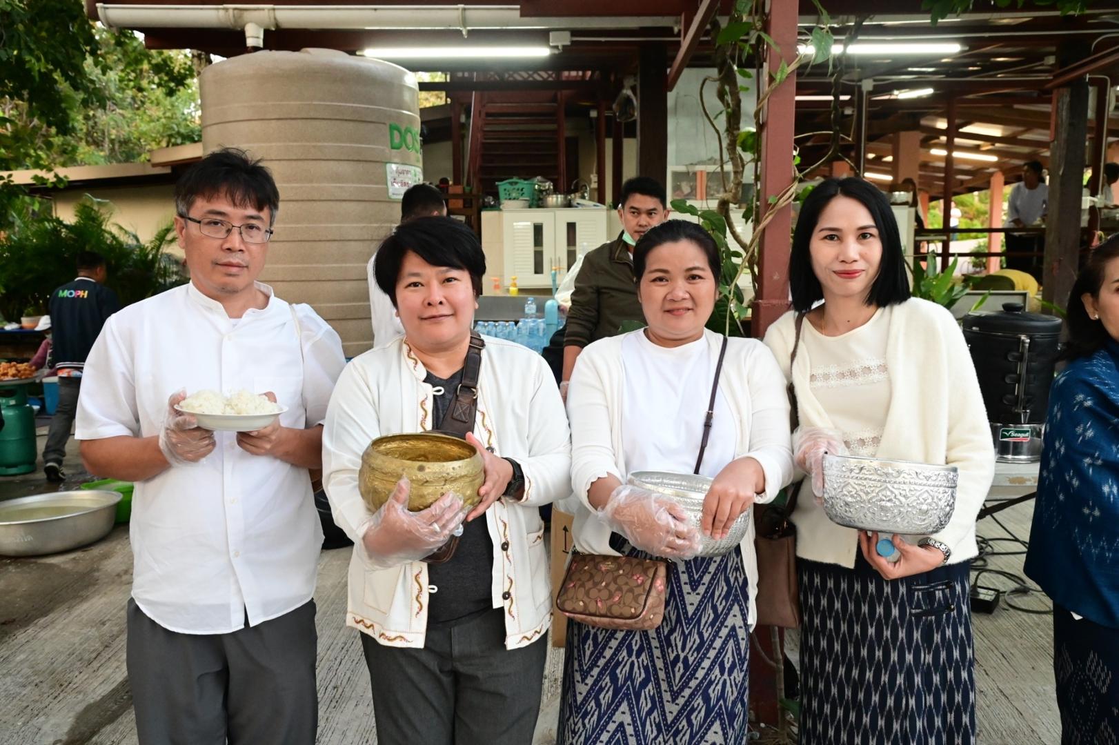 แพทย์หญิงกันตินันท์ มหาสุวีระชัย ผู้อำนวยการโรงพยาบาลมุกดาหาร พร้อมด้วยคณะผู้บริหารและเจ้าหน้าที่โรงพยาบาลมุกดาหาร ร่วมพิธีทำบุญตักบาตร และพิธีทอดผ้าป่าสามัคคีเพื่อจัดซื้อครุภัณฑ์การแพทย์ เครื่องช่วยหายใจ" น้อมถวายเป็นอริยะบูชา แด่ หลวงปู่อ้ม สุขกาโม วัดป่าภูผาผึ้ง เพื่อกิจการ ศูนย์หัวใจและหลอดเลือดสมอง โรงพยาบาลมุกดาหาร โดยวัดป่าวิสุทธิญาณ วัดป่าวิสุทธิสังวร และวัดป่าถ้ำศิลาธรรม