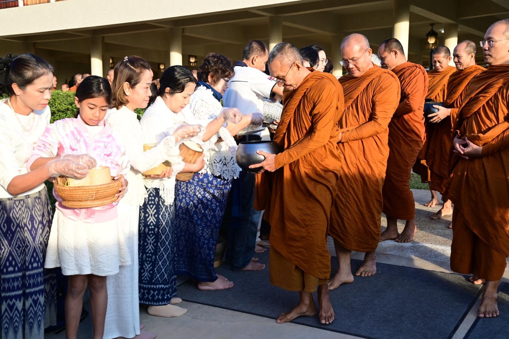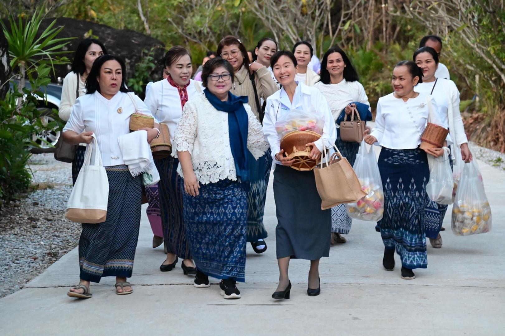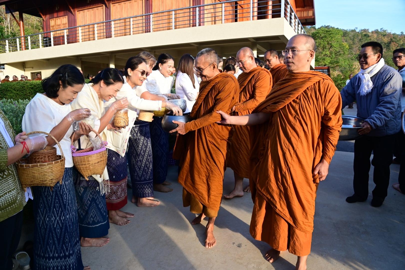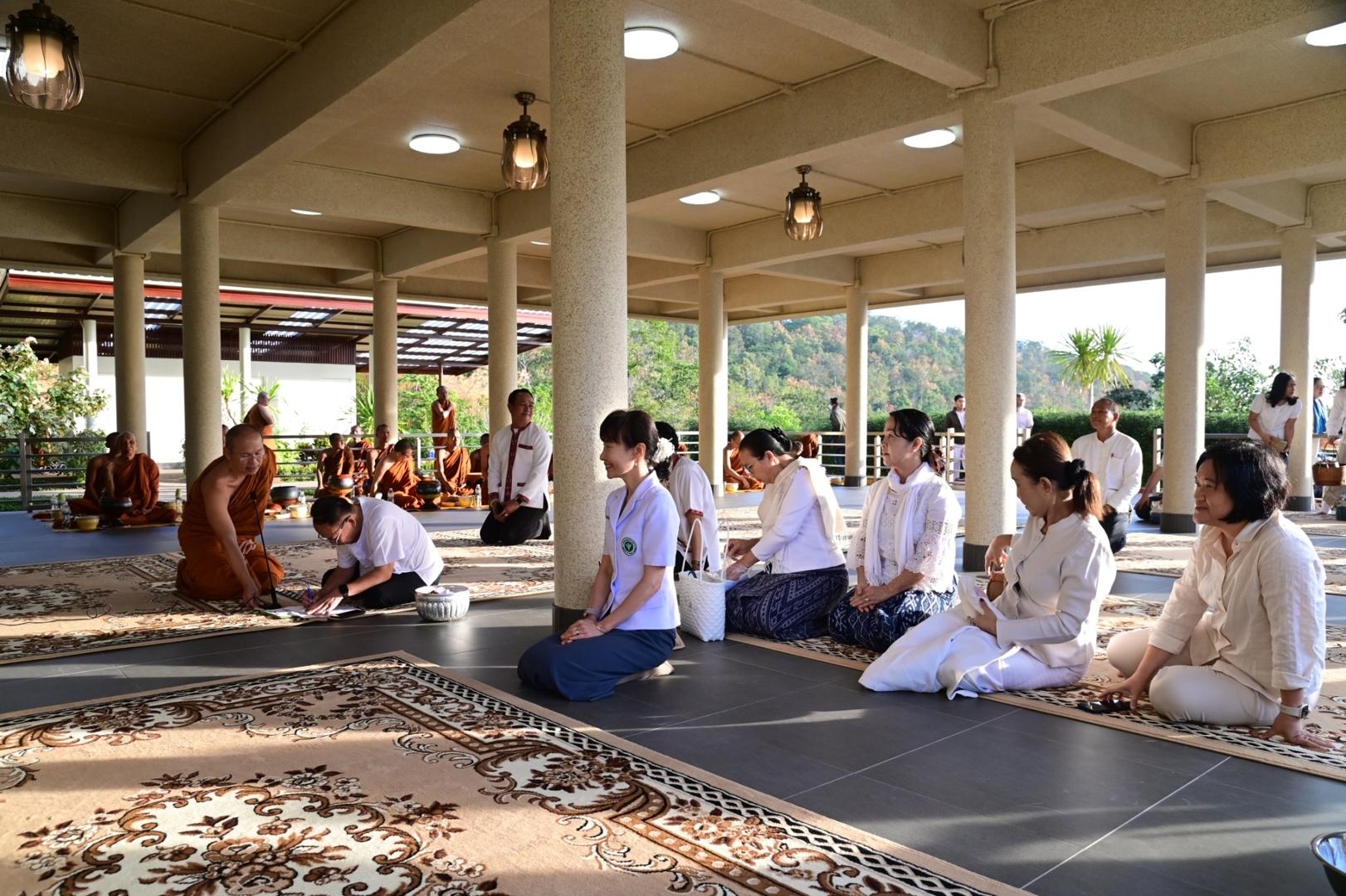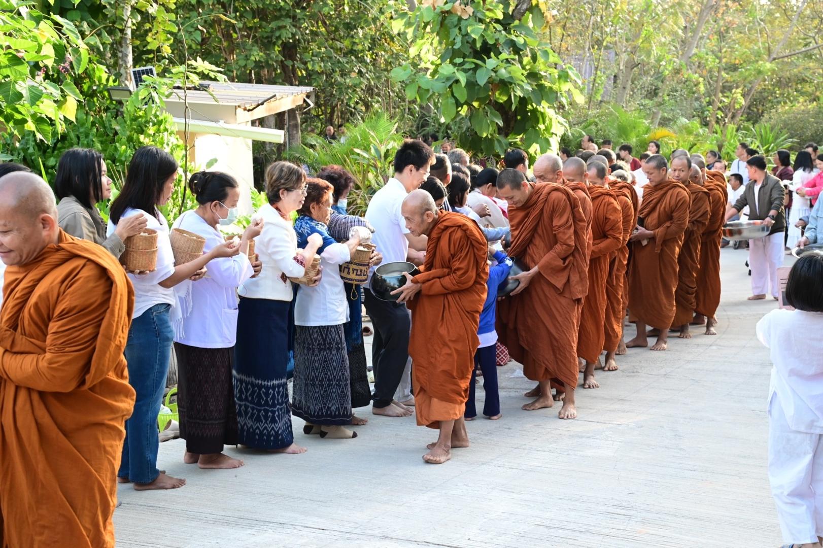 แพทย์หญิงกันตินันท์ มหาสุวีระชัย ผู้อำนวยการโรงพยาบาลมุกดาหาร พร้อมด้วยคณะผู้บริหารและเจ้าหน้าที่โรงพยาบาลมุกดาหาร ร่วมพิธีทำบุญตักบาตร และพิธีทอดผ้าป่าสามัคคีเพื่อจัดซื้อครุภัณฑ์การแพทย์ เครื่องช่วยหายใจ" น้อมถวายเป็นอริยะบูชา แด่ หลวงปู่อ้ม สุขกาโม วัดป่าภูผาผึ้ง เพื่อกิจการ ศูนย์หัวใจและหลอดเลือดสมอง โรงพยาบาลมุกดาหาร โดยวัดป่าวิสุทธิญาณ วัดป่าวิสุทธิสังวร และวัดป่าถ้ำศิลาธรรม