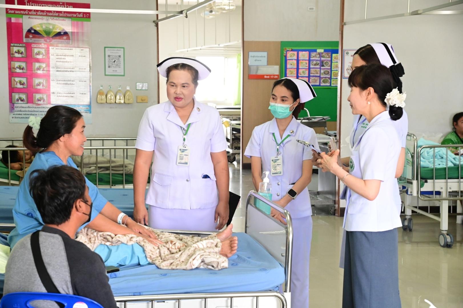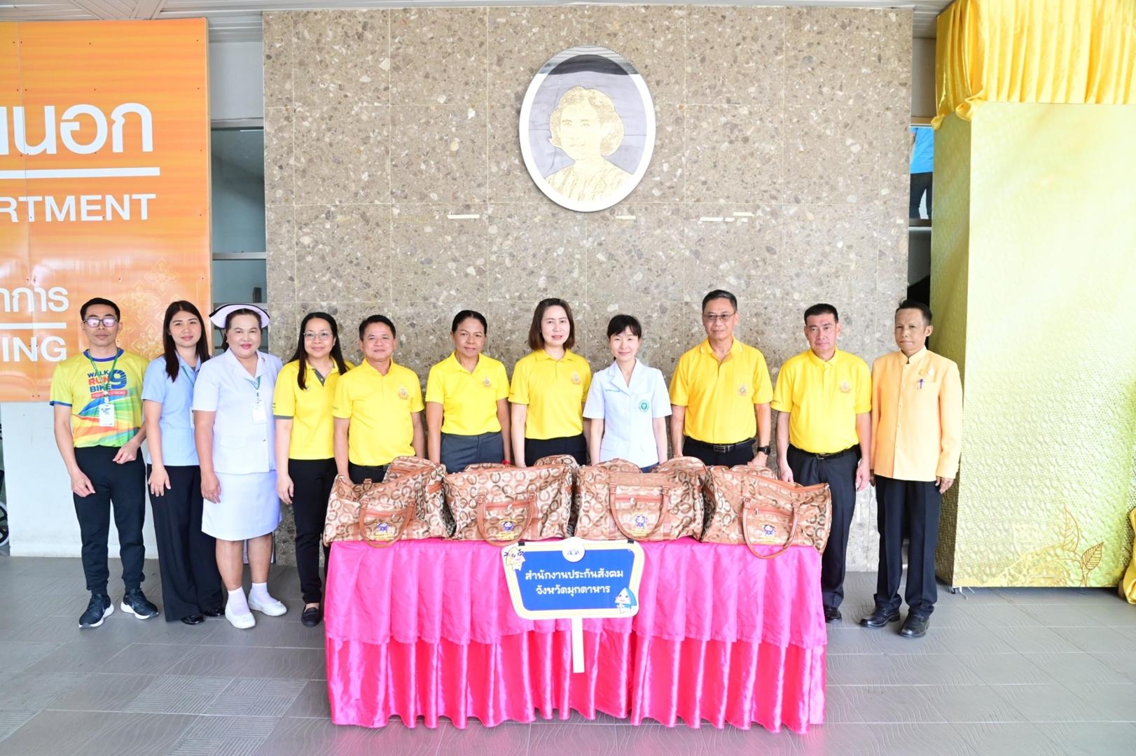 แพทย์หญิงกันตินันท์ มหาสุวีระชัย ผู้อำนวยการโรงพยาบาลมุกดาหาร พร้อมด้วยคณะผู้บริหารและเจ้าหน้าที่โรงพยาบาลมุกดาหารร่วมต้อนรับคุณรัชดา อุดมมงคลกิจ ประกันสังคมจังหวัดมุกดาหาร พร้อมคณะตรวจเยี่ยมฯ ภายใต้โครงการเยี่ยมผู้ทุพพลภาพ ผู้ประกันตนเจ็บป่วยในสถานพยาบาล หรือผู้ป่วยหลังภาวะวิกฤต เนื่องในวันคล้ายวันพระบรมราชสมภพของพระบาทสมเด็จพระบรมชนกาธิเบศร มหาภูมิพล