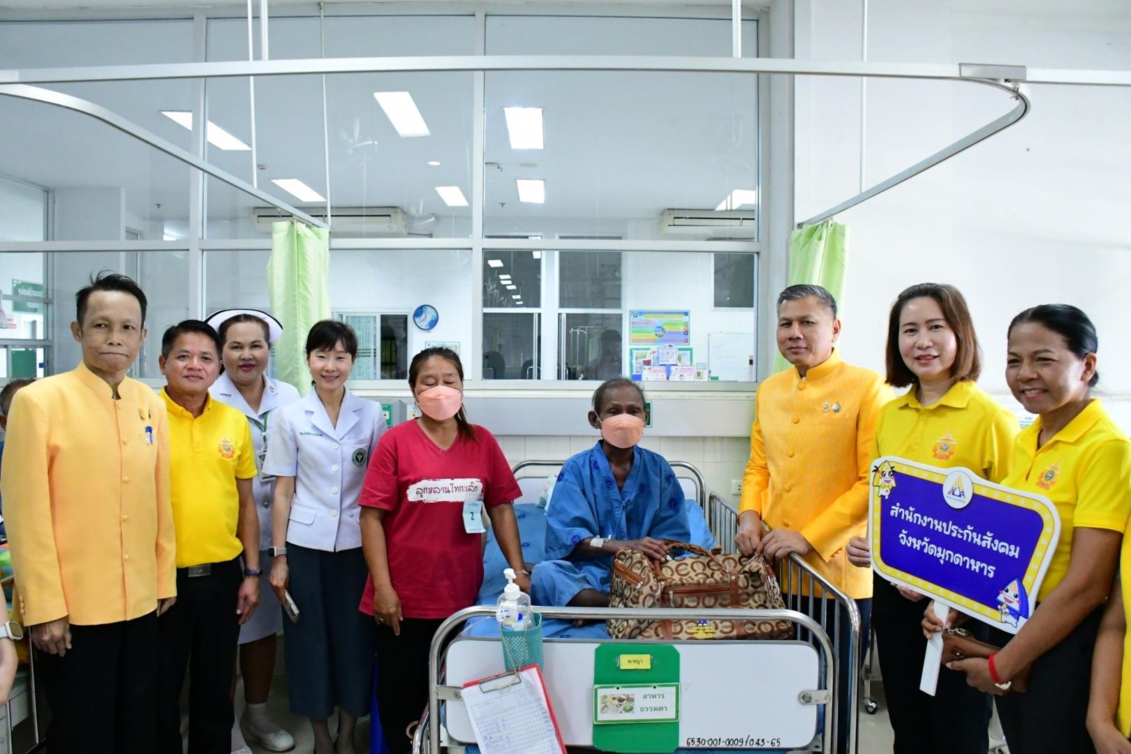 โดยมีนายวรญาณ บุญณราช ผู้ว่าราชการจังหวัดมุกดาหาร ร่วมมอบของเยี่ยมแก่ผู้ประกันตน