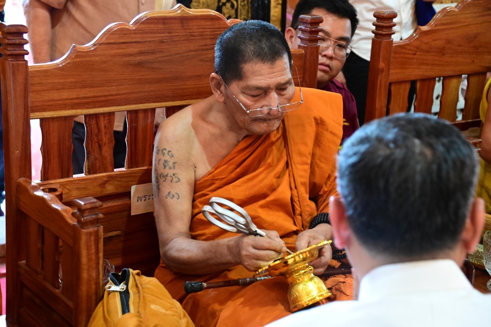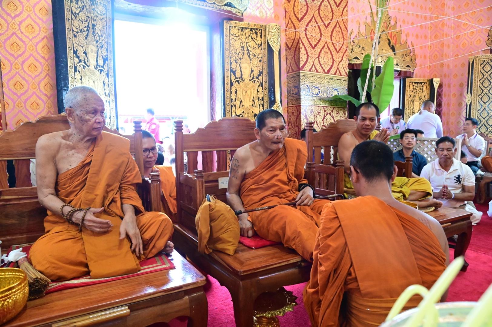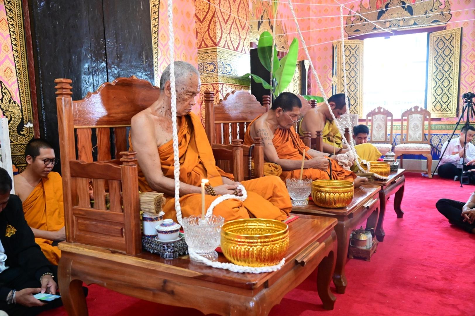 โดยได้กราบนิมนต์และได้รับความเมตตาจาก พระราชวัชรธรรมโสภณ (หลวงปู่มหาศิลา สิริจนฺโท) พระครูโสภณวินัยวัฒน์ (หลวงปู่เวิน คุเณสโก) พระวชิรญาณวิศิษฏิ์ วิ. (พระอาจารย์สุริยันต์ โฆสปญฺโญ) และพระราชวัชราวิทยาคม (พระอาจารย์ต้อม ปภสฺสโร) ในการทำพิธีอธิษฐานจิตและเจริญพระพุทธมนต์ พิธีมหาพุทธาภิเษกวัตถุมงคล รูปหล่อพระเจ้าองค์หลวง พระกริ่งพระเจ้าองค์หลวง และเหรียญพระเจ้าองค์หลวงรุ่น สไบทรัพย์ รวย รวย รวย