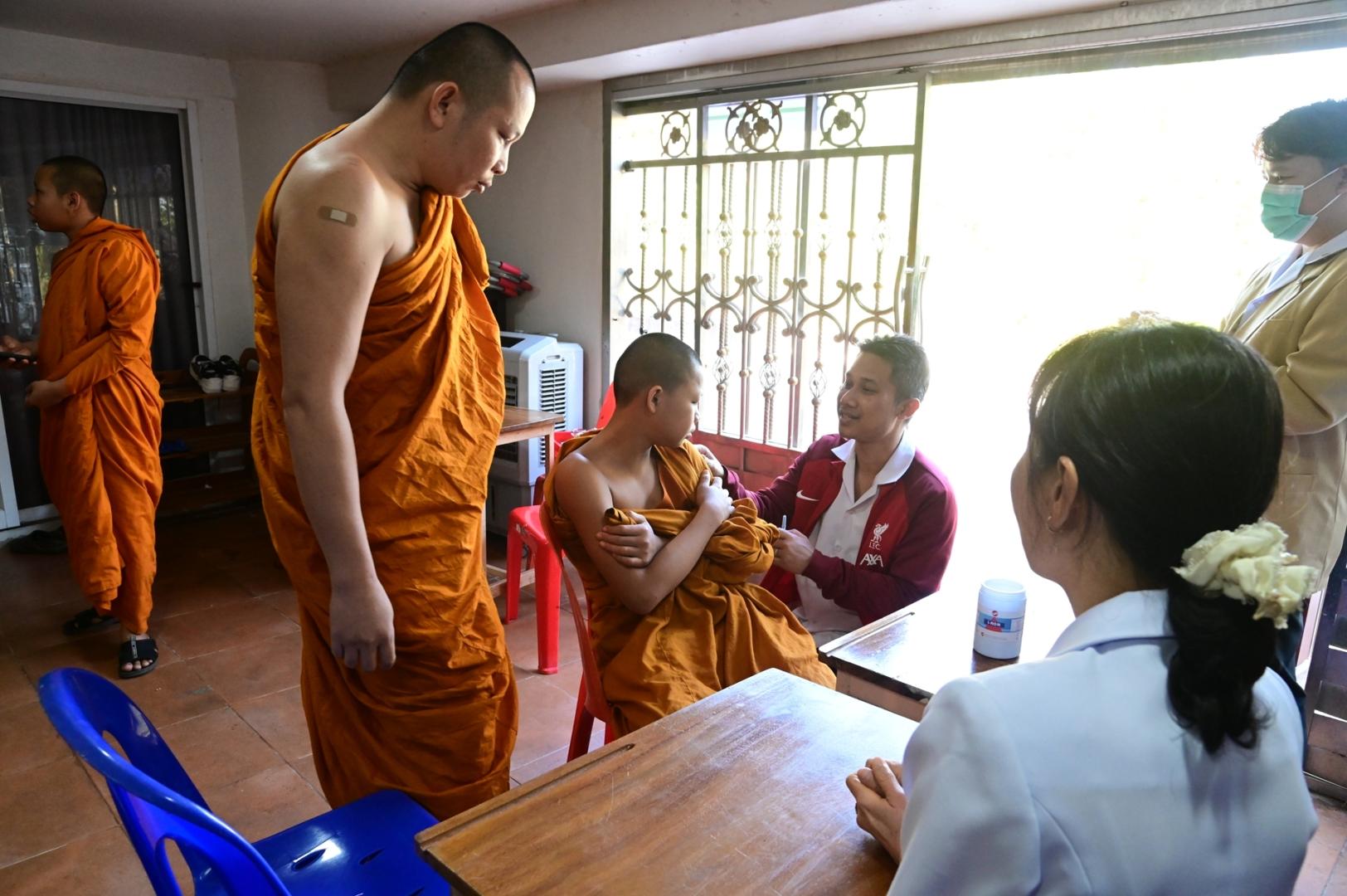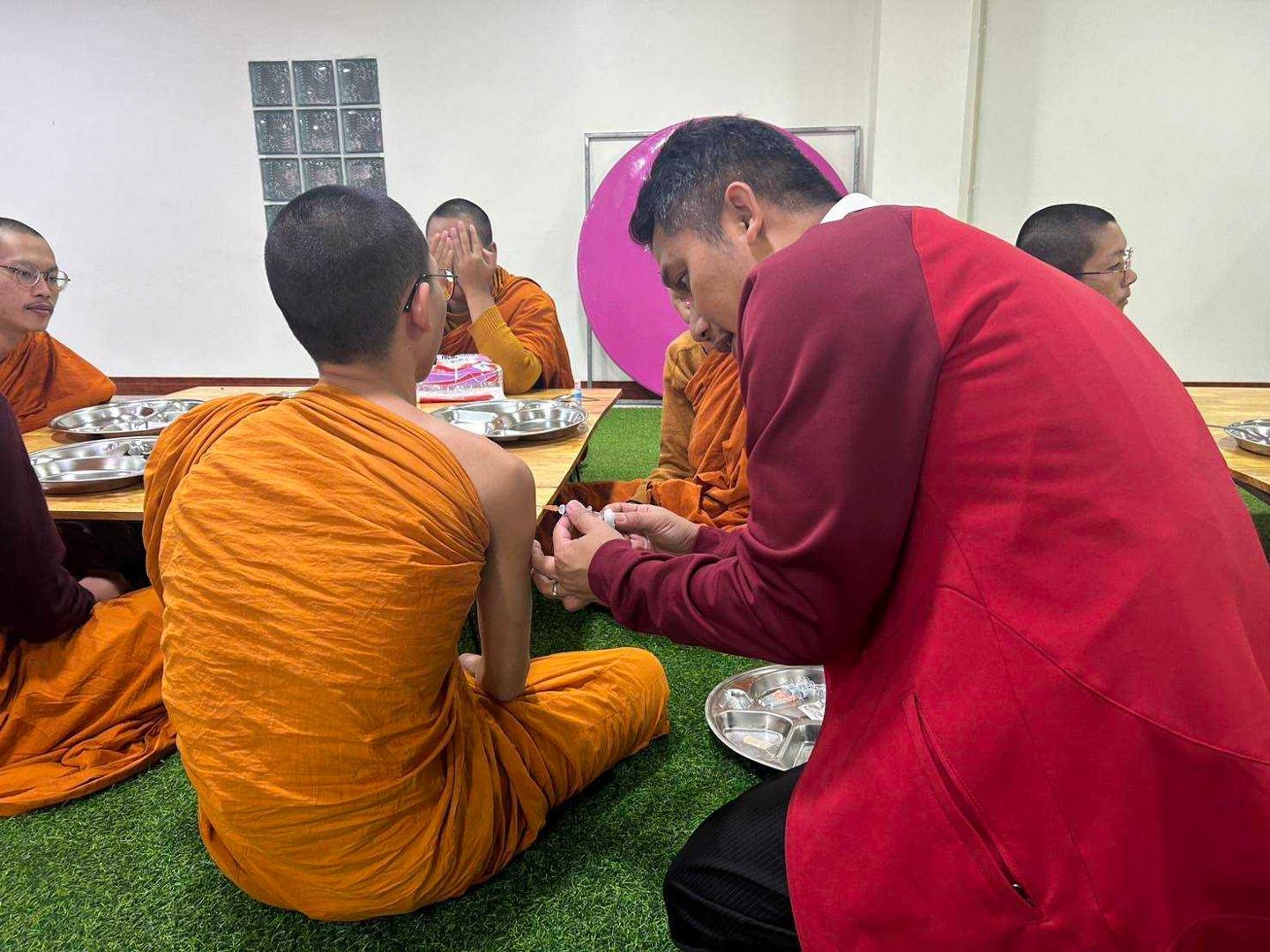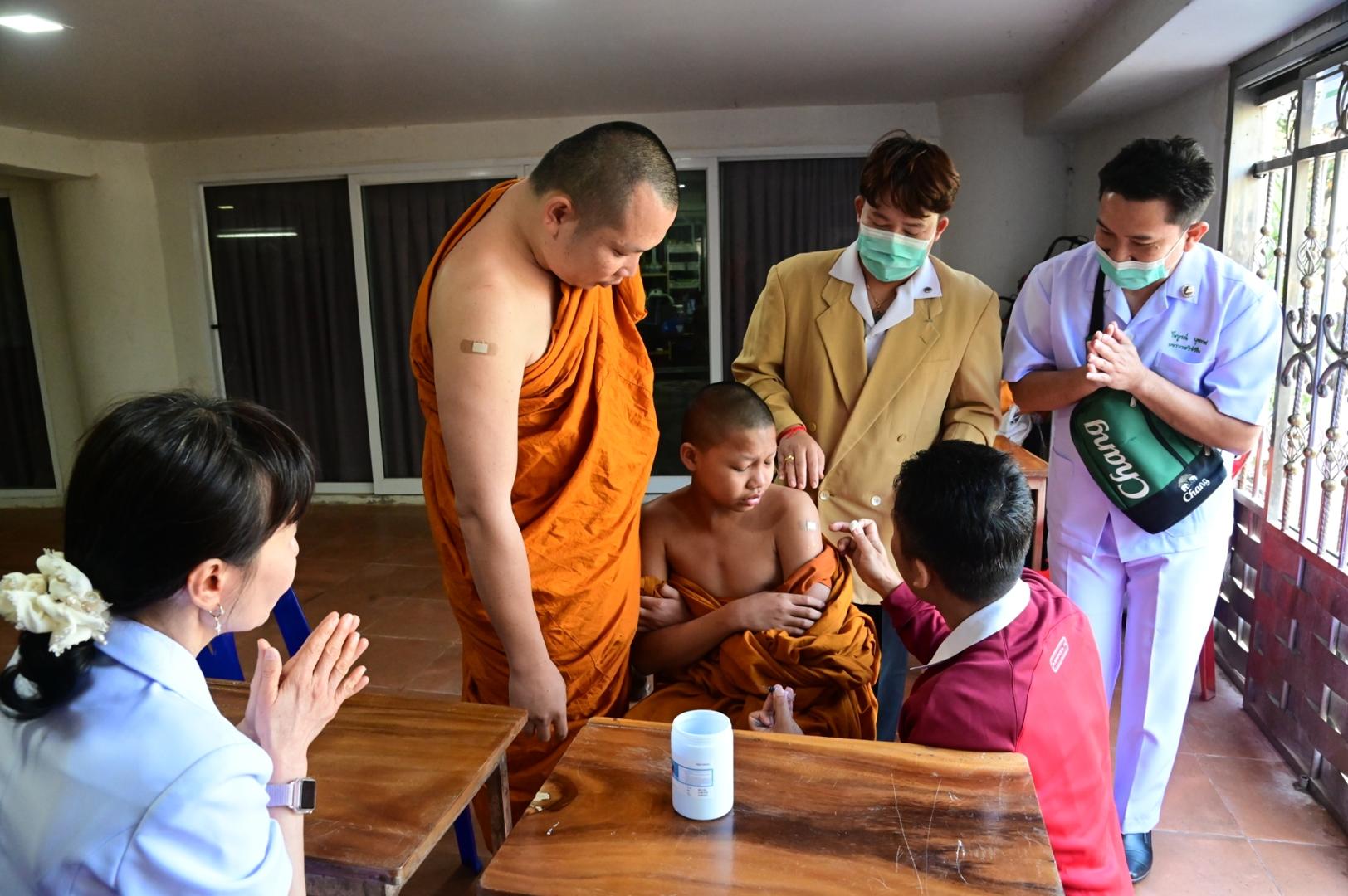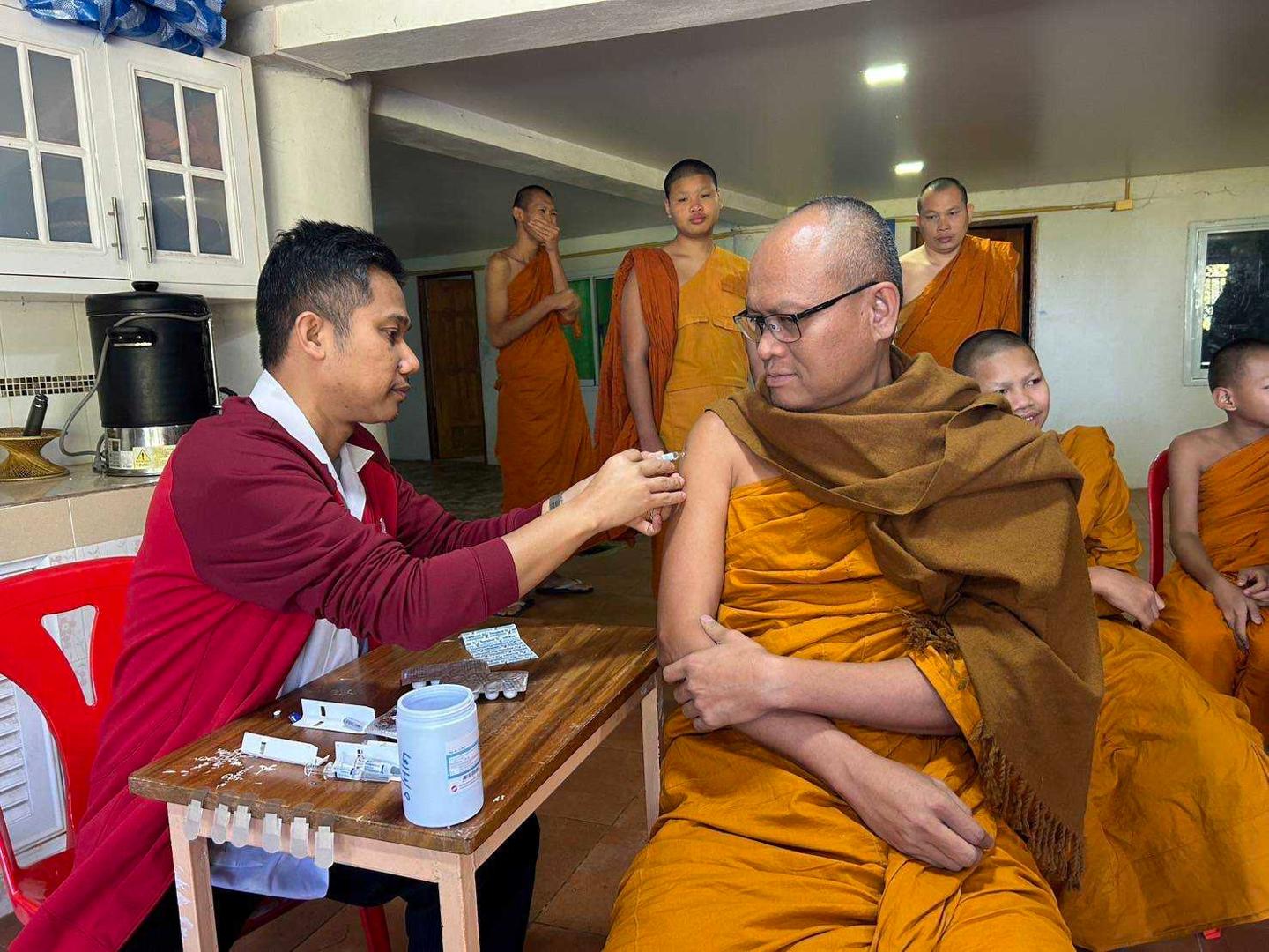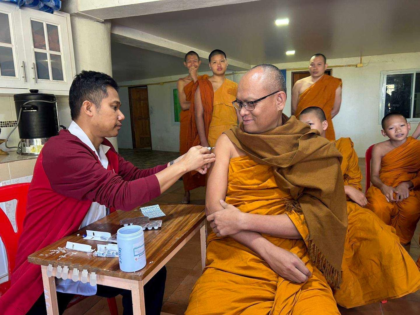 พระวิฑูรวชิรโมลี รองเจ้าคณะจังหวัดมุกดาหาร พร้อมทั้งถวายวัคซีนไข้หวัดใหญ่ เพื่อกระตุ้นเสริมสร้างภูมิคุ้มกันของร่างกายที่มีต่อเชื้อไข้หวัดใหญ่