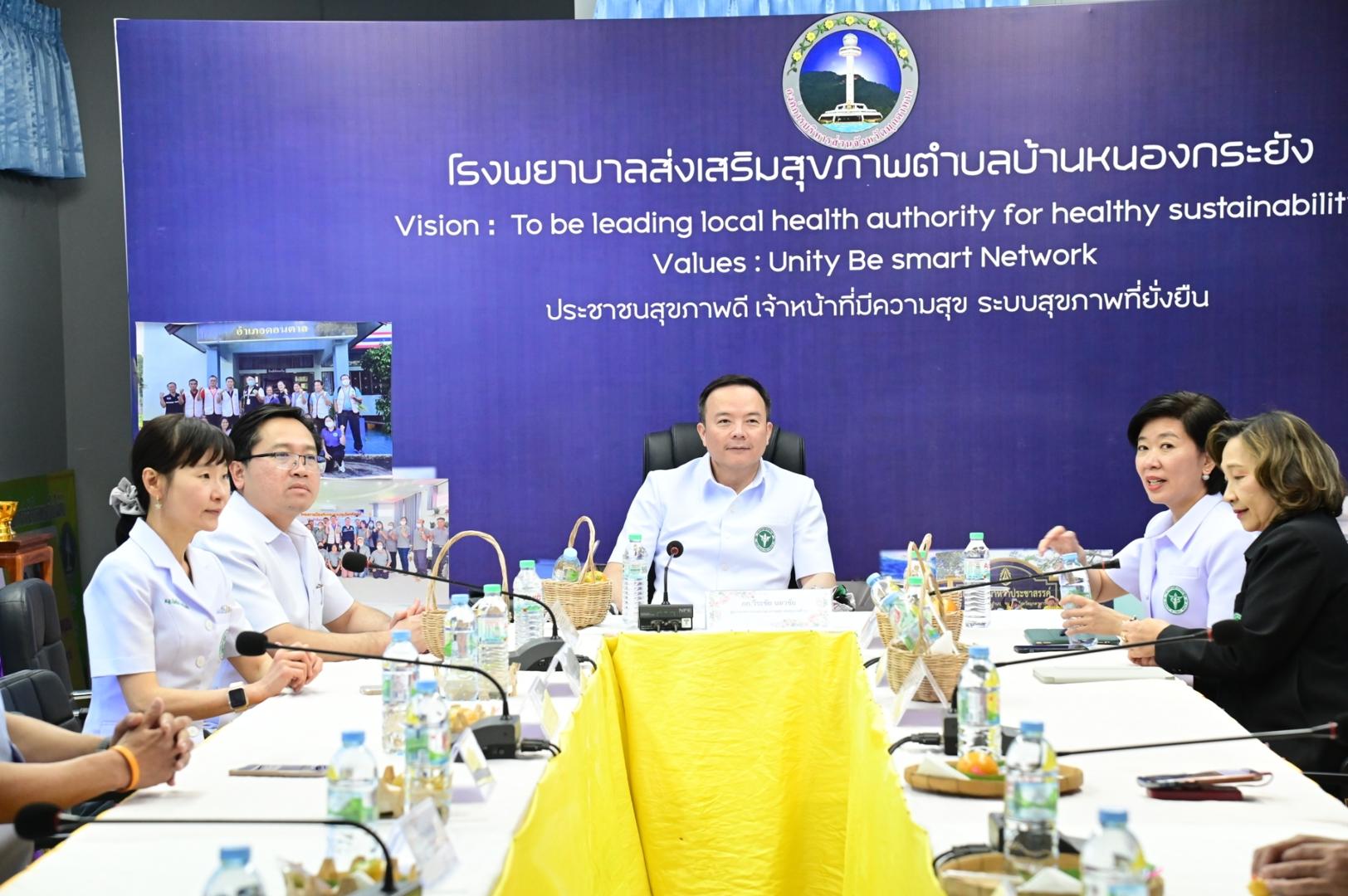 และเมื่อเวลา 10.30 น. เดินทางไปร่วมรับฟังบรรยายสรุป การขับเคลื่อนการดำเนินงานตามประเด็นการตรวจราชการในบริบทของ คปสอ. เยี่ยมชมโรงพยาบาลดอนตาล ผลงานเด่น รพ.สต.บ้านหนองกระยัง ตำบลนาสะเม็ง