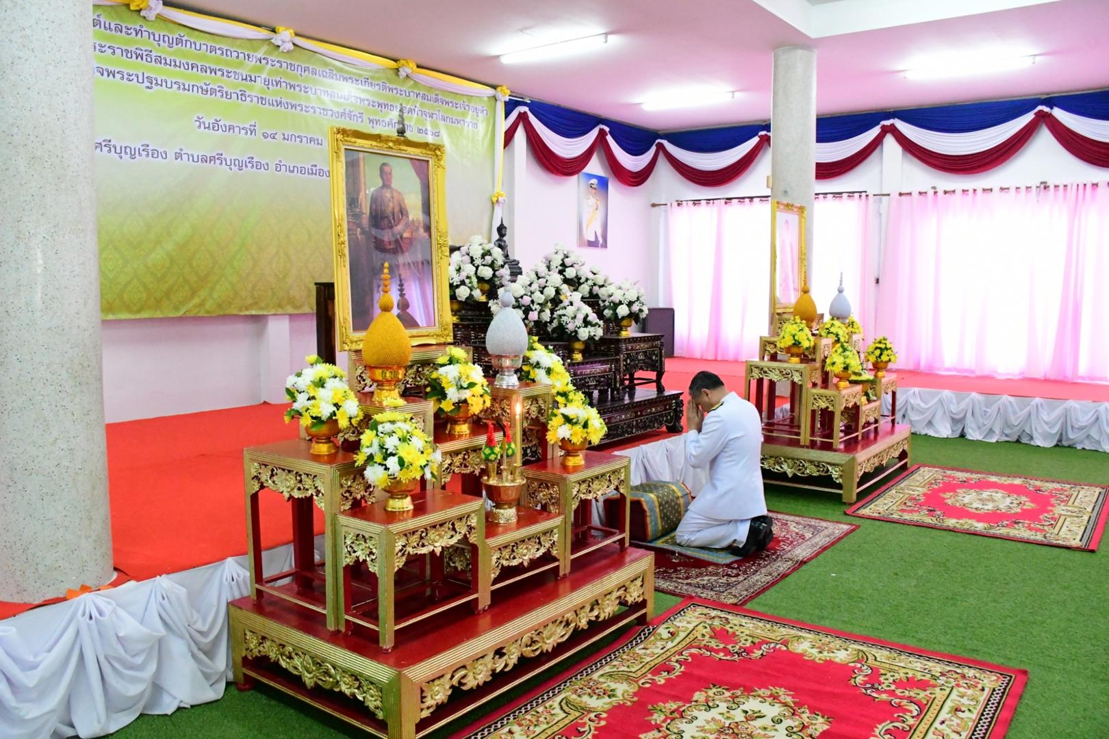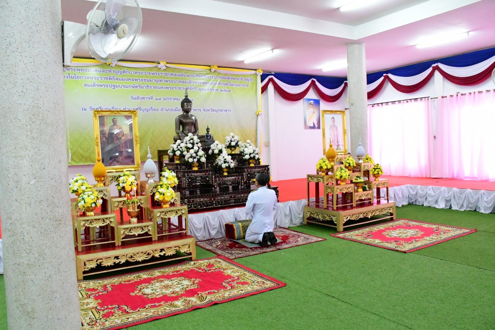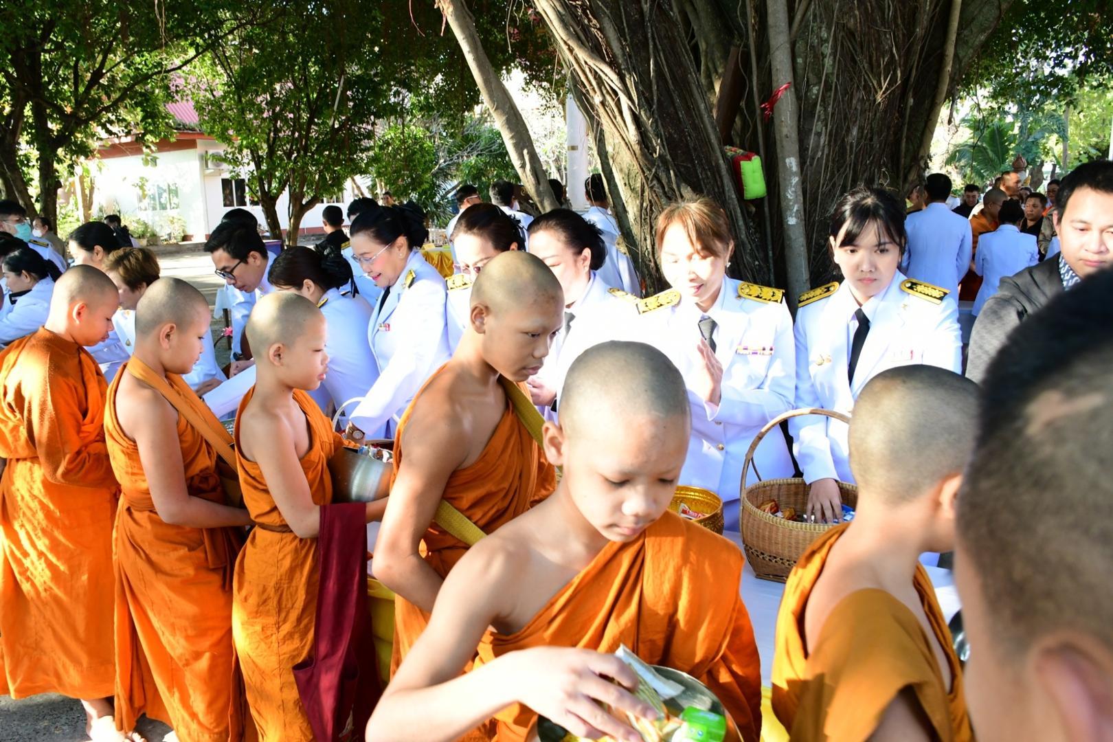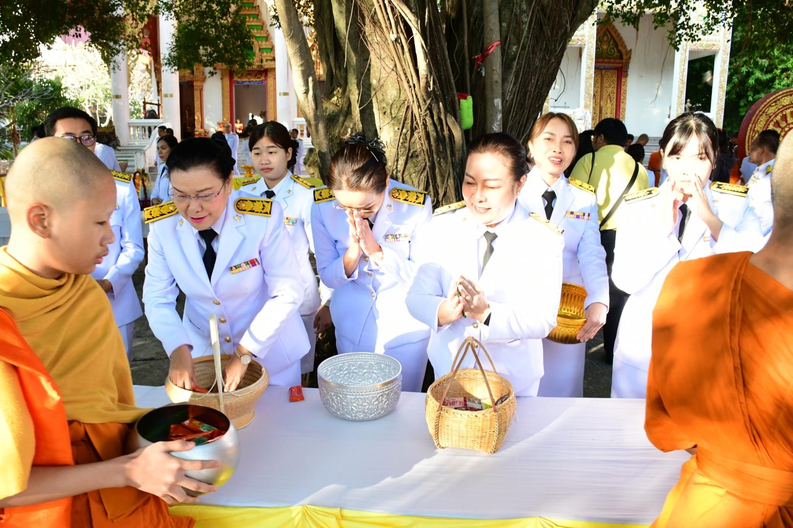 แพทย์หญิงกันตินันท์ มหาสุวีระชัย ผู้อำนวยการโรงพยาบาลมุกดาหาร มอบหมายให้ เจ้าหน้าที่โรงพยาบาลมุกดาหาร ร่วมพิธีเจริญพระพุทธมนต์และทำบุญตักบาตรพระสงฆ์ 59 รูป ถวายพระราชกุศล เฉลิมพระเกียรติพระบาทสมเด็จพระเจ้าอยู่หัว เนื่องในโอกาสพระราชพิธีสมมงคลพระชนมายุเท่าพระบาทสมเด็จพระพุทธยอดฟ้าจุฬาโลกมหาราช สมเด็จพระปฐมบรมกษัตริยาธิราช แห่งพระราชวงศ์จักรี พุทธศักราช 2568 ณ วัดศรีบุญเรือง ตำบลศรีบุญเรือง อำเภอเมือง มุกดาหาร และร่วมพิธีทางศาสนามหามงคลถวายพระราชกุศล