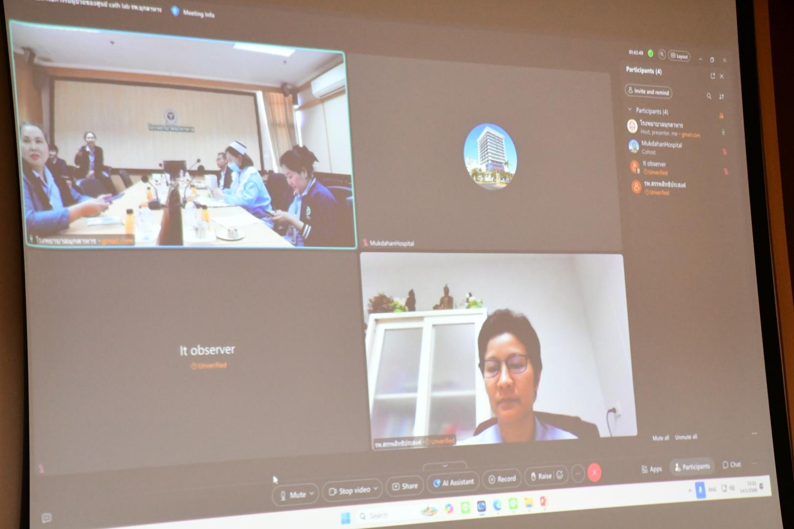 แพทย์หญิงกันตินันท์ มหาสุวีระชัย ผู้อำนวยการโรงพยาบาลมุกดาหาร มอบหมายให้นายแพทย์วิลาศ นรินทร์ รองผู้อำนวยการฝ่ายการแพทย์ พร้อมด้วยคณะผู้บริหารและเจ้าหน้าที่โรงพยาบาลมุกดาหาร ร่วมประชุมเพื่อหารือแนวทางการเปิดหน่วยบริการศูนย์หัวใจและหลอดเลือดสมอง สืบเนื่องจากนายแพทย์ประพฤทธิ์ ธนกิจจารุ รองผู้อำนวยการฝ่ายการแพทย์คนที่ 2 โรงพยาบาลสรรพสิทธิประสงค์ ร่วมลงพื้นที่สำรวจหน่วยบริการศูนย์หัวใจและหลอดเลือดสมอง เพื่อเตรียมความพร้อม การเป็นศูนย์หัวใจ ระดับ 2 โดยมีแผนดำเนินการจัดตั้ง Cardiac Center ที่โรงพยาบาลมุกดาหาร ในปี 2568 โดยให้บริการผู้ป่วยโรคกล้ามเนื้อหัวใจขาดเลือดเฉียบพลัน มีการเปิดบริการห้องตรวจสวนหัวใจและหลอดเลือด ให้บริการด้านฉีดสีและหลอดเลือดหัวใจ ได้อย่างมีประสิทธิภาพ ผ่านระบบออนไลน์ VDO conference WebEx