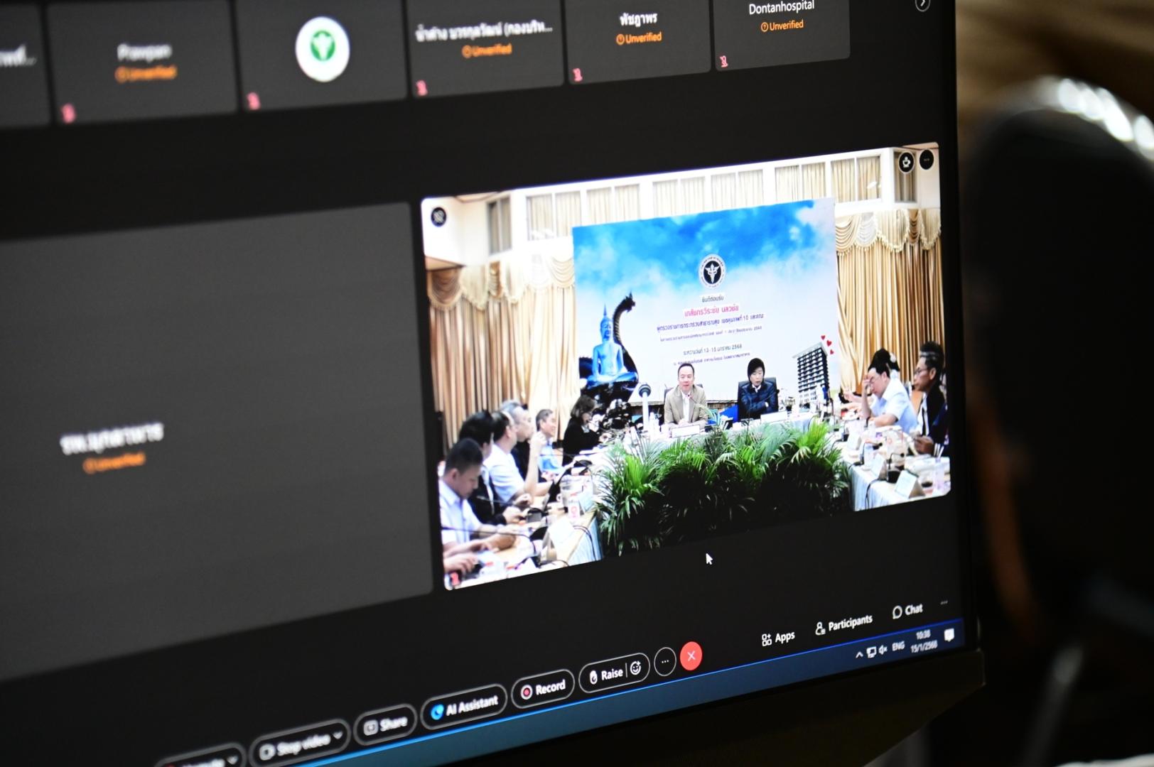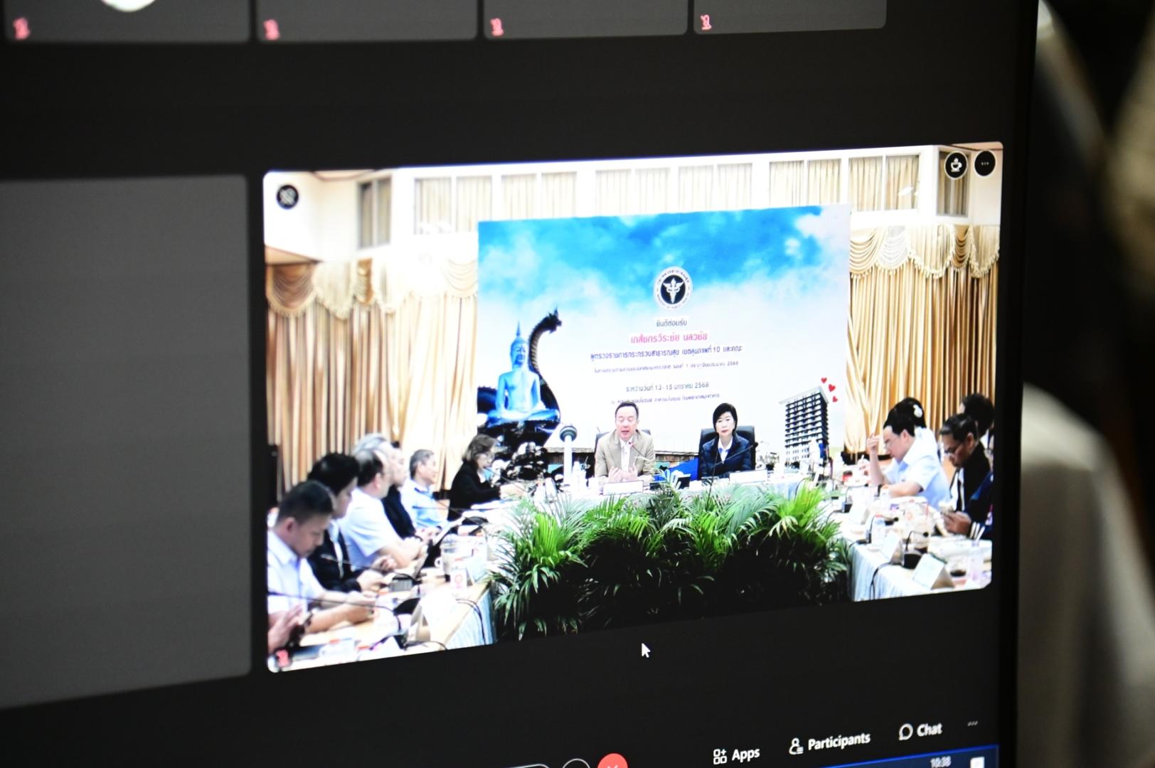 แพทย์หญิงกันตินันท์ มหาสุวีระชัย ผู้อำนวยการโรงพยาบาลมุกดาหาร พร้อมด้วยคณะผู้บริหารและบุคลากรในสังกัดกระทรวงสาธารณสุขเข้าร่วมรับการตรวจราชการและนิเทศงานกรณี ปกติ รอบที่ 1 ประจำปีงบประมาณ 2568 เขตสุขภาพที่ 10 จังหวัดมุกดาหาร ระหว่างวันที่ 13-15 มกราคม 2568 สรุปผลการตรวจราชการและนิเทศงานกรณีปกติ รอบที่ 1 ตามประเด็นการตรวจราชการ โดยถ่ายทอดผ่านระบบออนไลน์ Application Cisco Webex Meeting