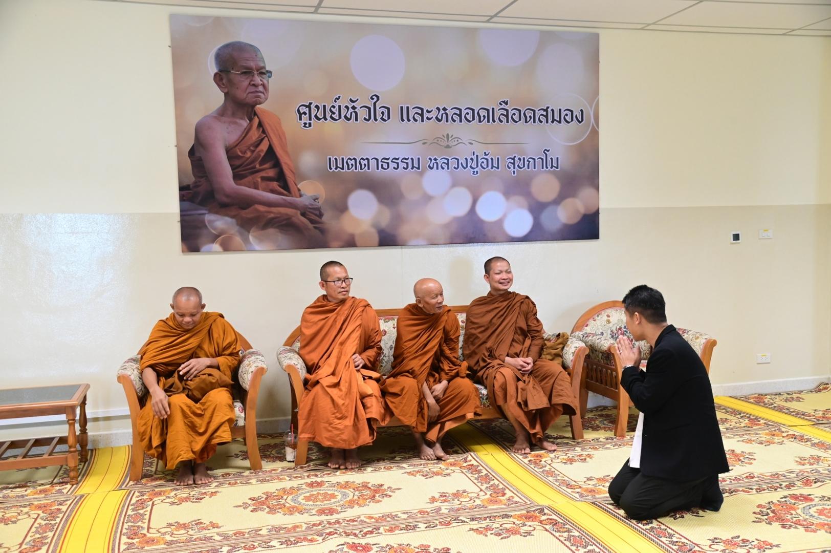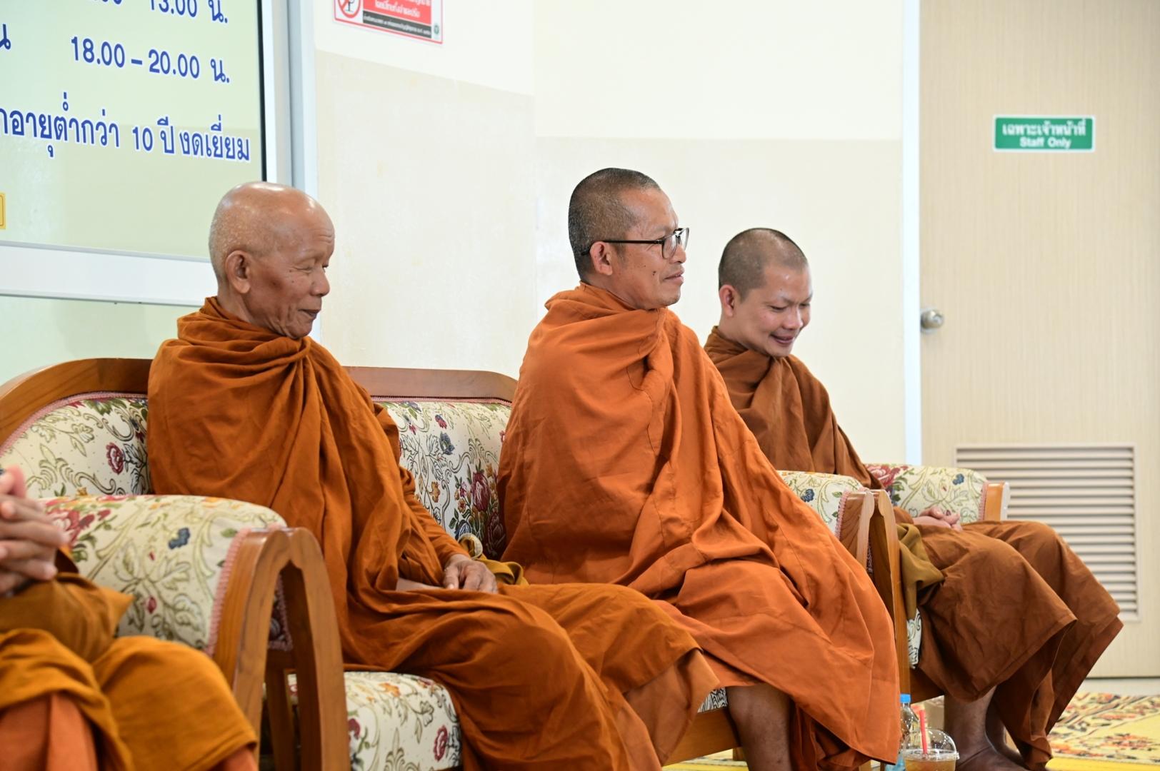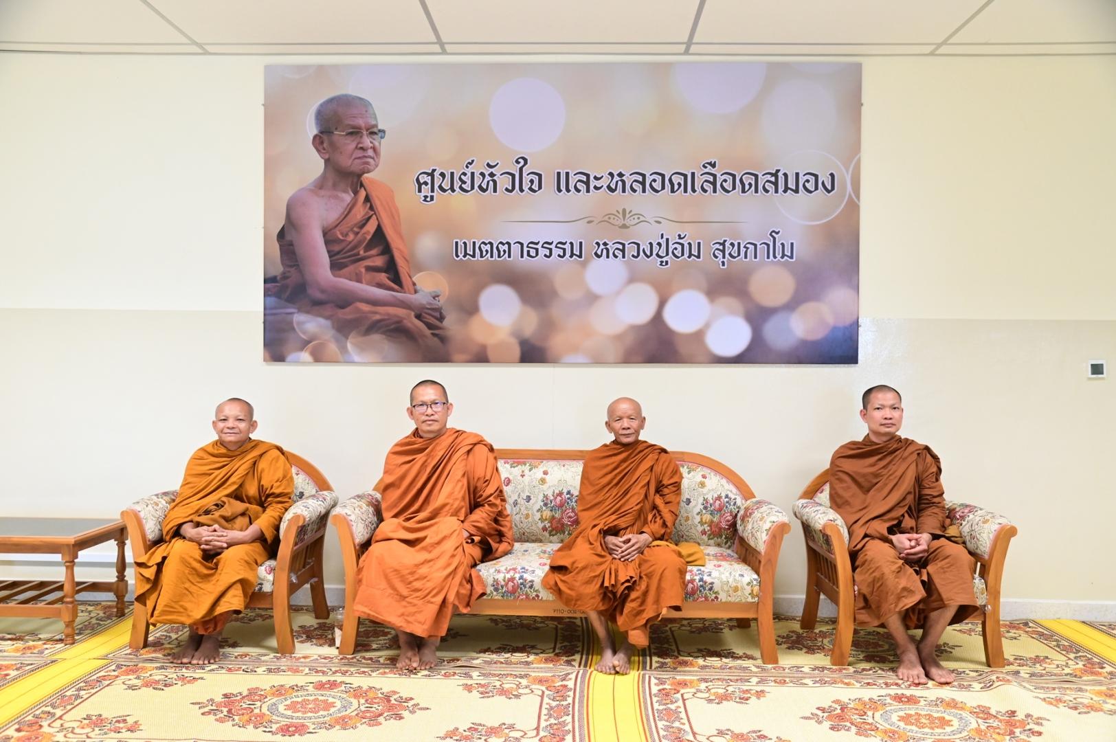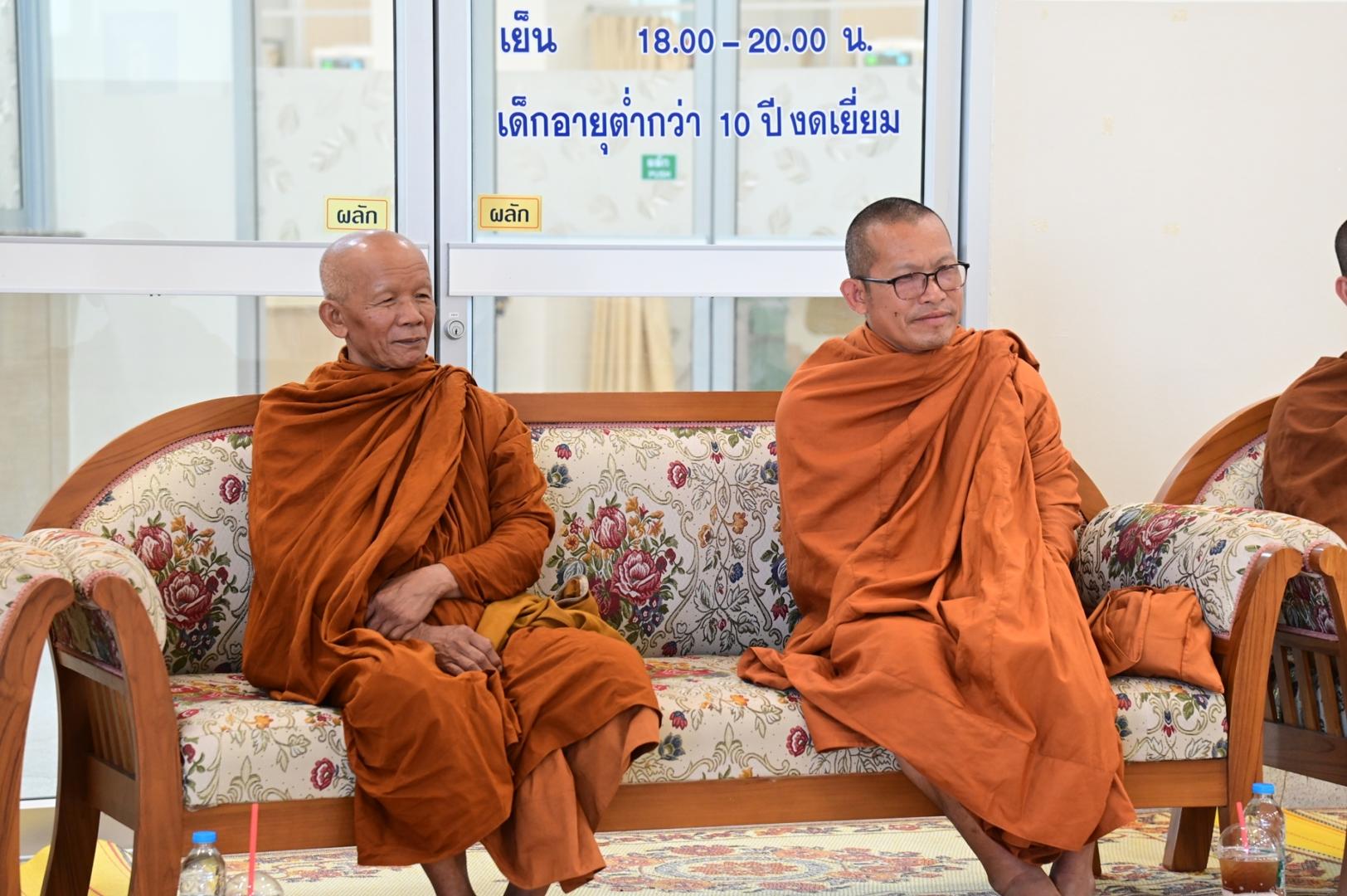 แพทย์หญิงกันตินันท์ มหาสุวีระชัย ผู้อำนวยการโรงพยาบาลมุกดาหาร พร้อมด้วยคณะผู้บริหารและเจ้าหน้าที่โรงพยาบาลมุกดาหาร กราบนมัสการพระอาจารย์จากวัดป่าภูผาผึ้ง โดยคณะศิษย์เก่า พณิชยการพระนคร รุ่น 31 ,วัดป่าถ้ำศิลาธรรม โดยนายเสี่ยงฮี นางเต็กเฮียง แซ่จิว พร้อมลูกหลาน สกุล สมประเสริฐสุข ,วัดสวนป่าริมธาร โดยคณะสงฆ์ วัดสวนป่าริมธารและวิโมกข์ อาศรม , วัดป่าภูหินเกิ้ง โดยพระอำนวย( แป้น) ชวโน และคณะศิษย์