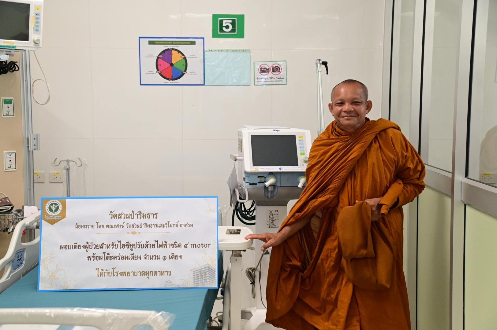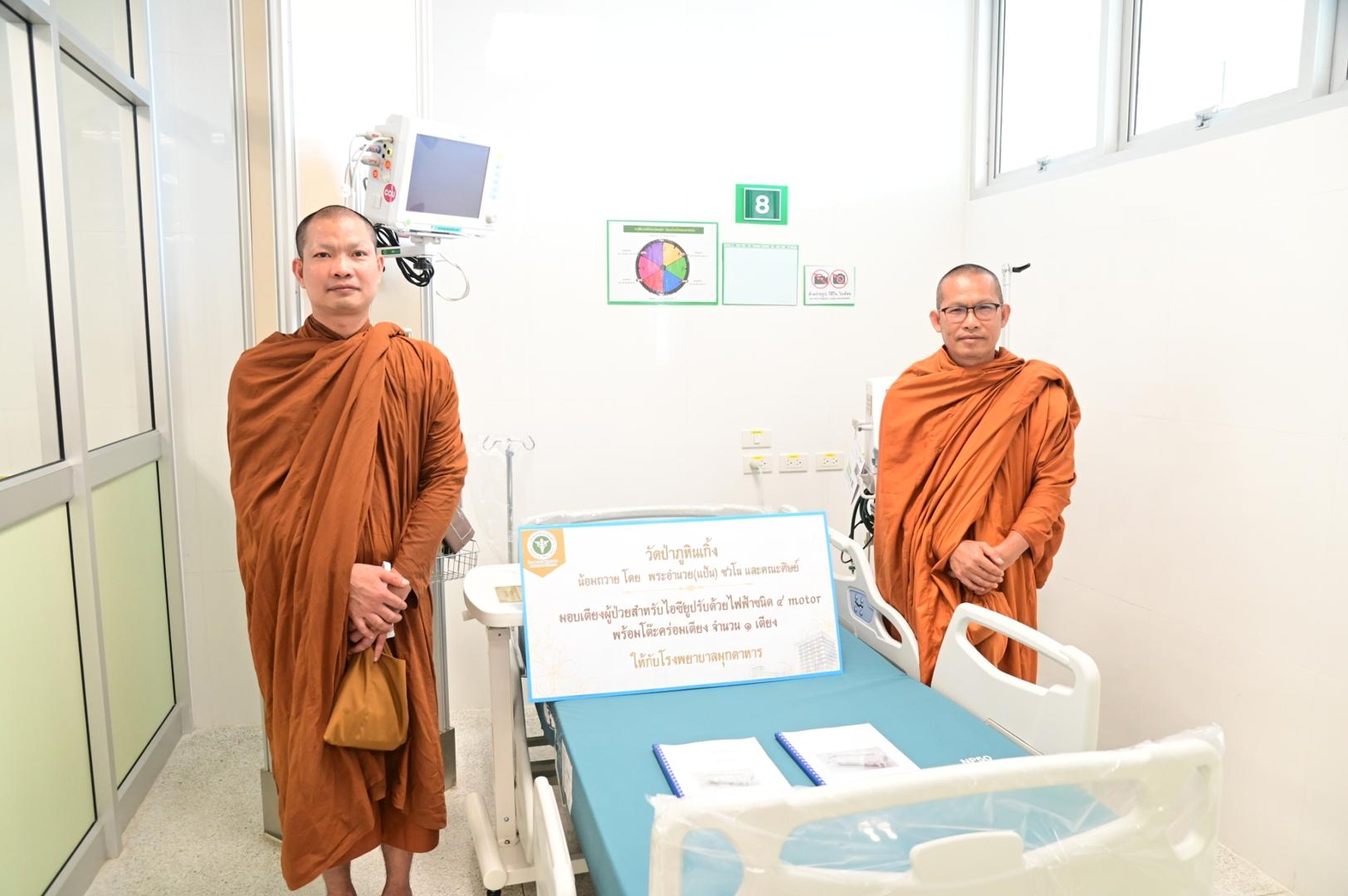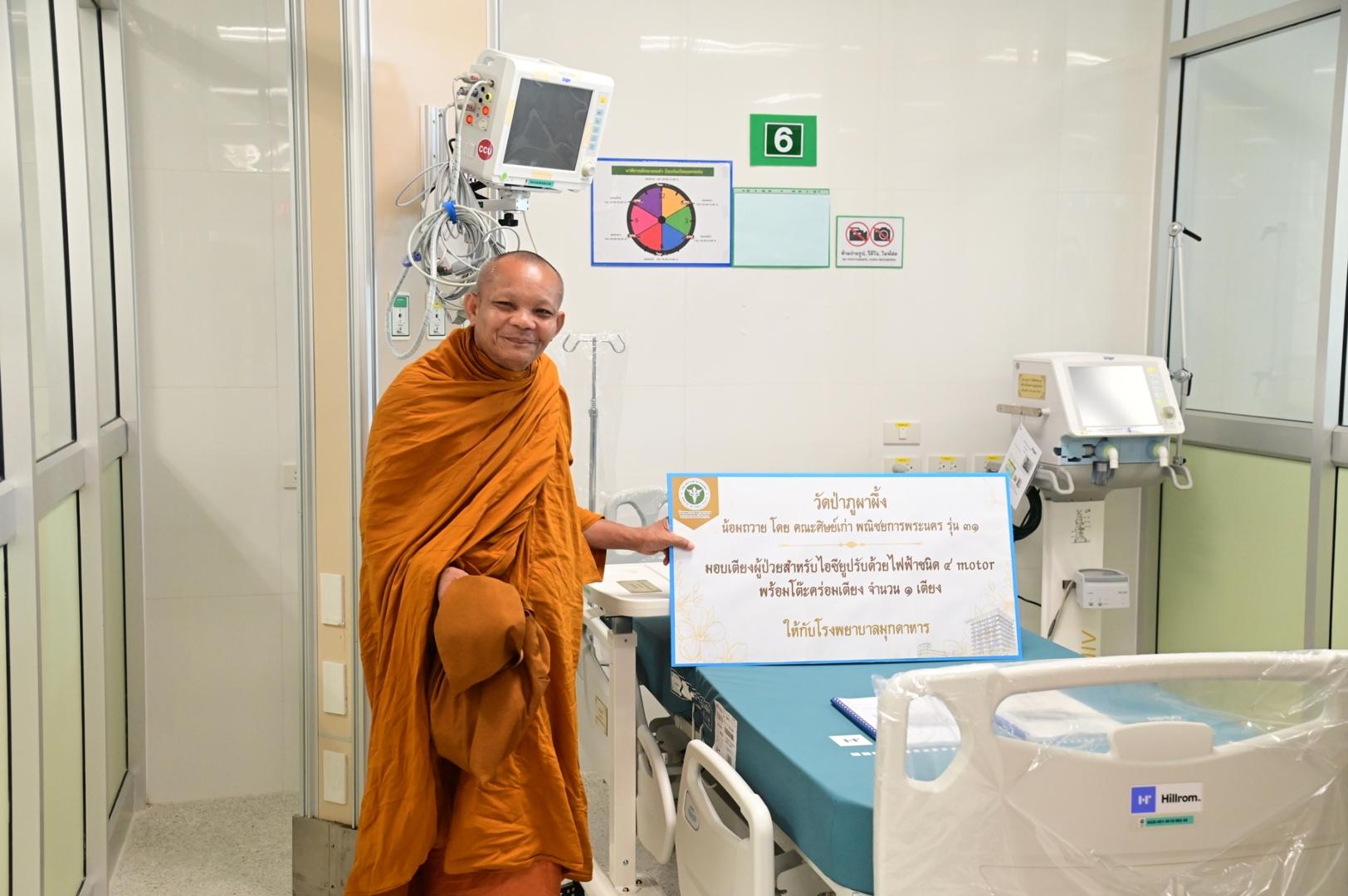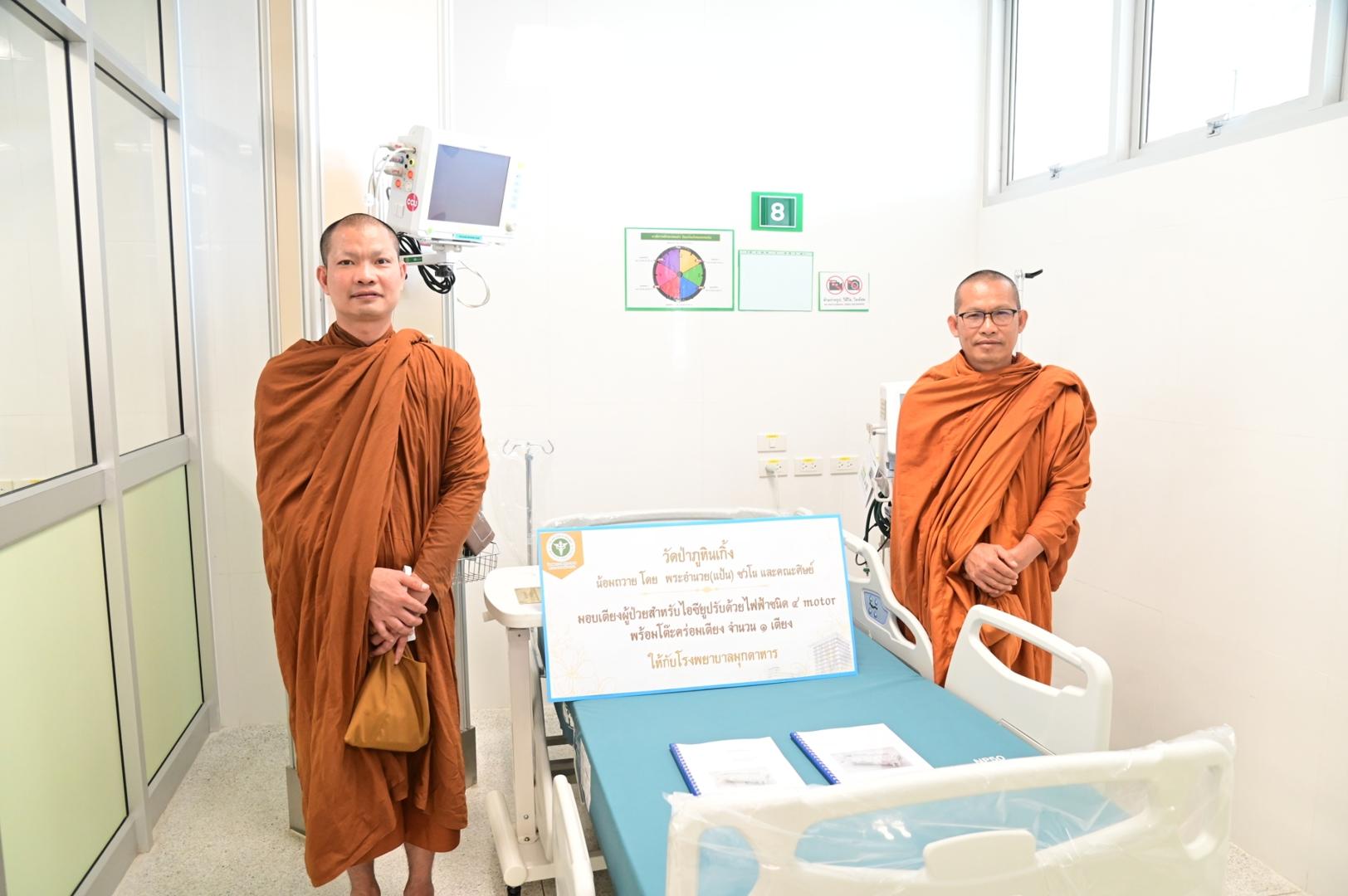 มีเมตตาจิตมอบเตียงผู้ป่วยสำหรับไอซียูปรับด้วยไฟฟ้าชนิด 4 motor พร้อมโต๊ะคร่อมเตียง รวมจำนวน 4 เตียง รวมมูลค่า 372,000 บาท (ห้าแสนสองหมื่นบาทถ้วน)
