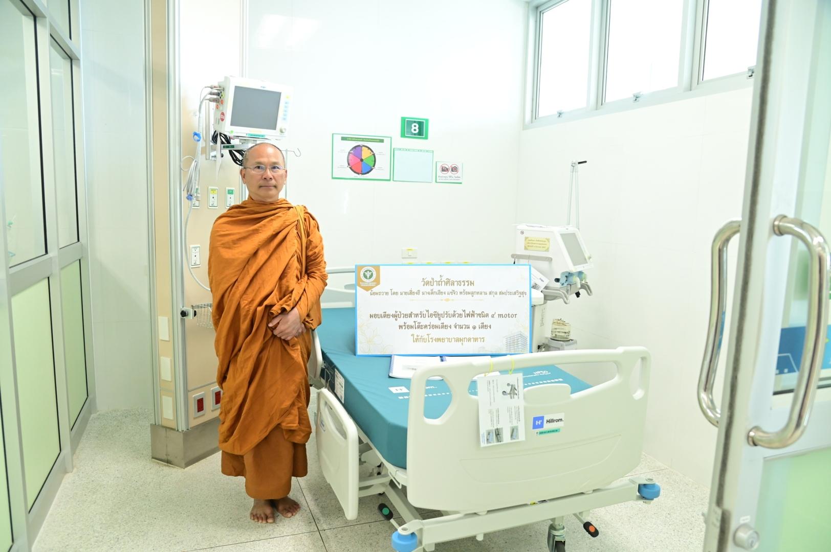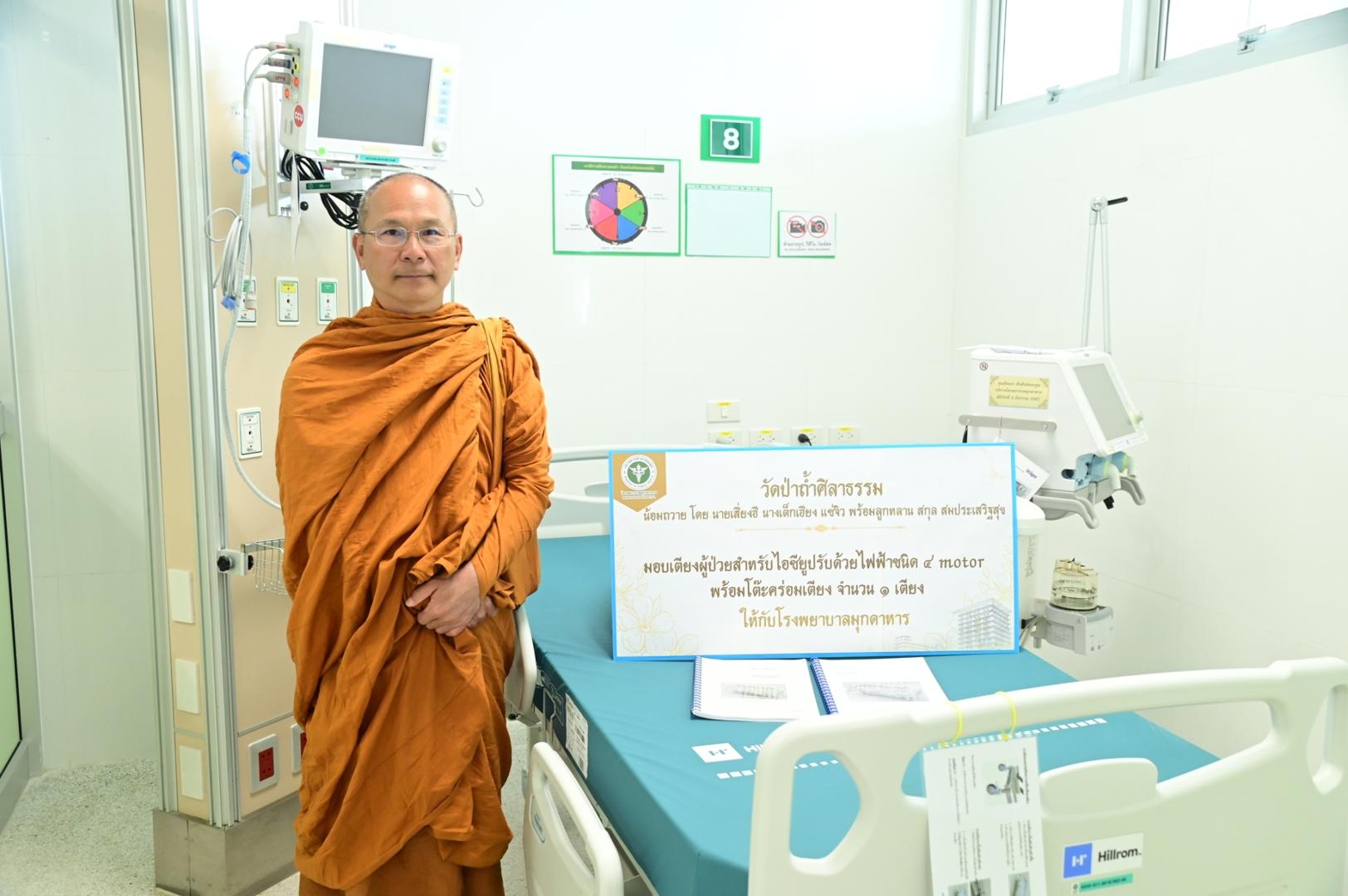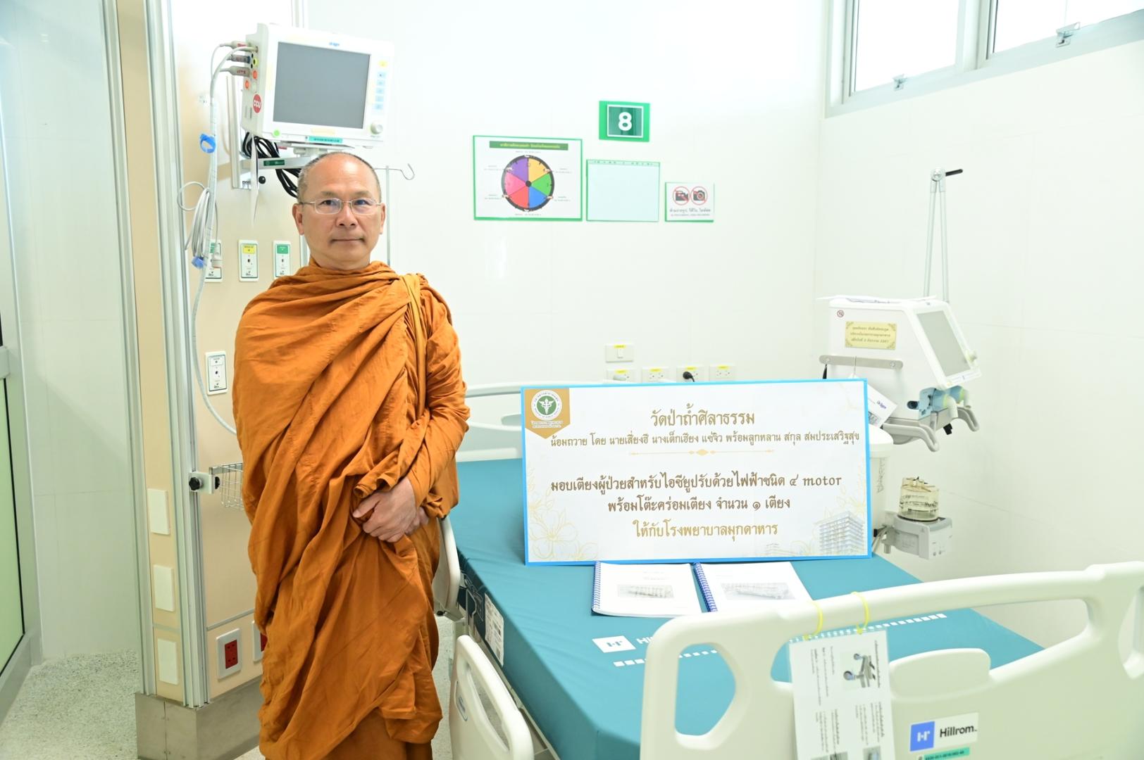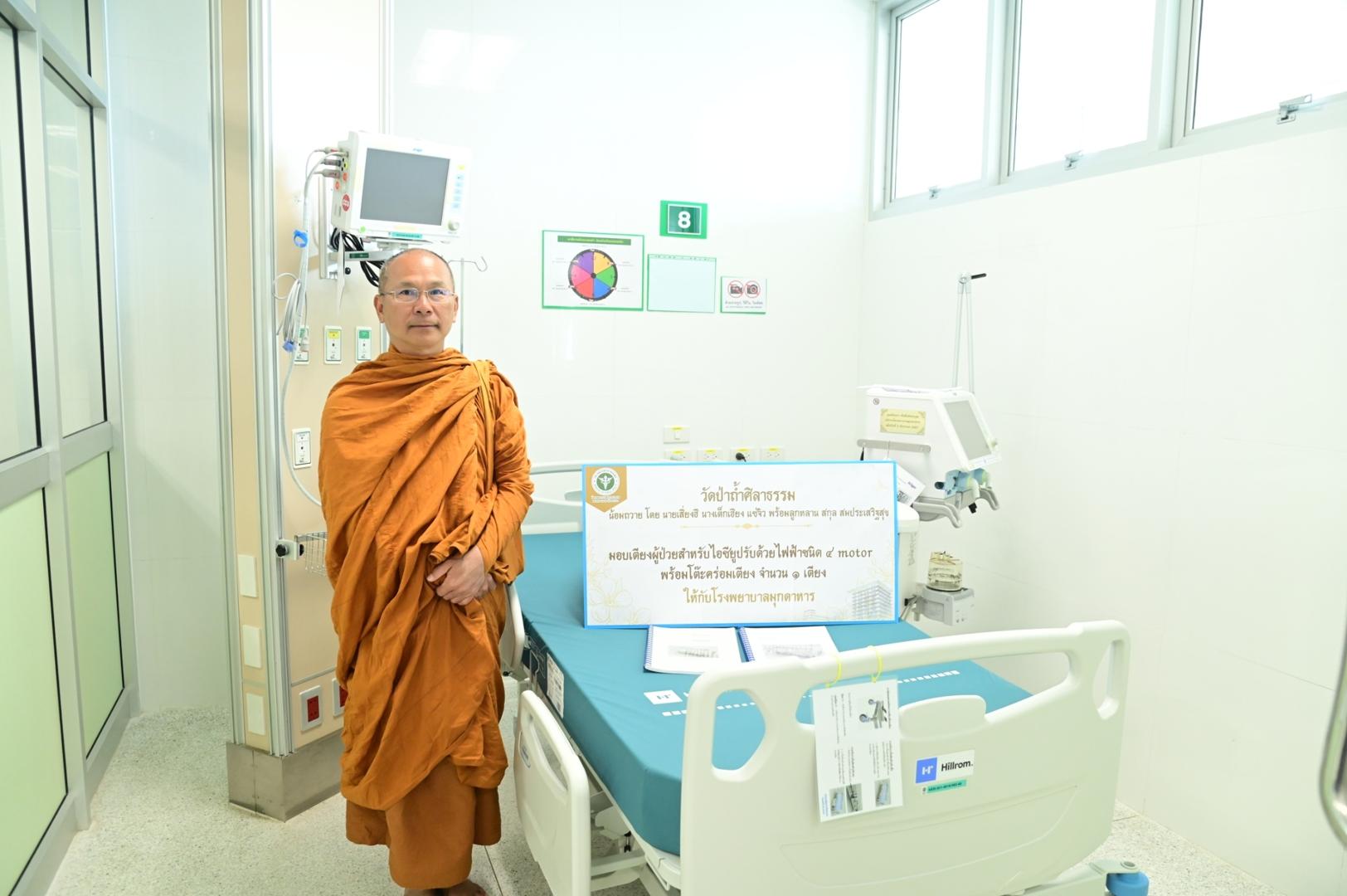 โรงพยาบาลมุกดาหาร ได้รับความเมตตาจากพระอาจารย์วรวุฒิ วัดป่าถ้ำศิลาธรรม มีเมตตาจิตมอบเตียงผู้ป่วยสำหรับไอซียูปรับด้วยไฟฟ้าชนิด 4 motorพร้อมโต๊ะคร่อมเตียง
