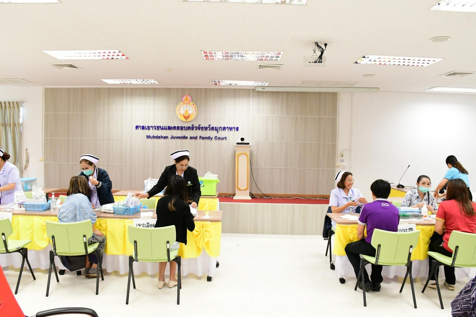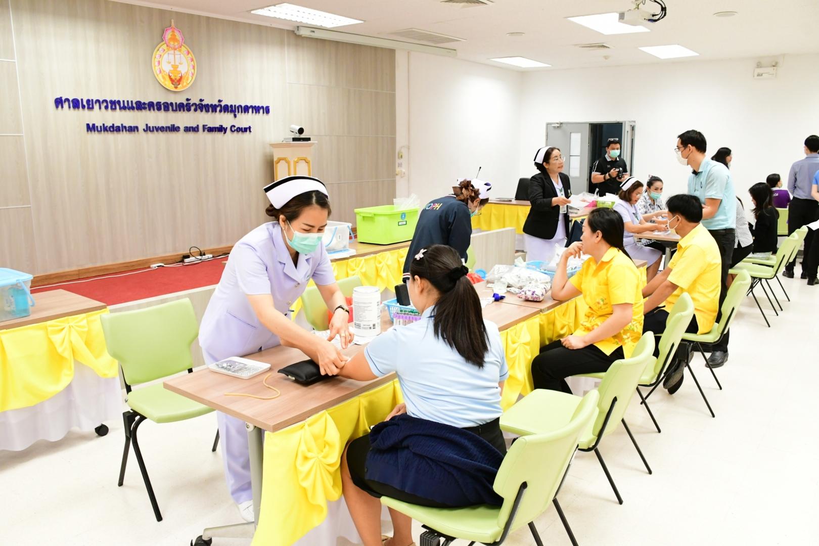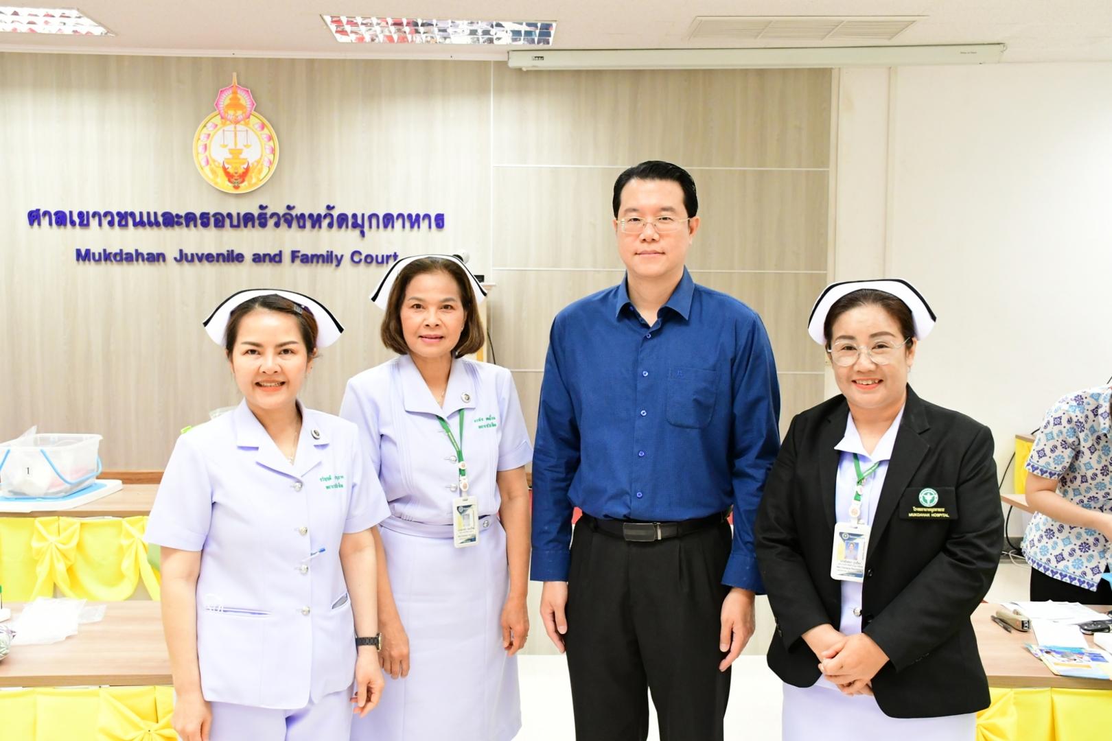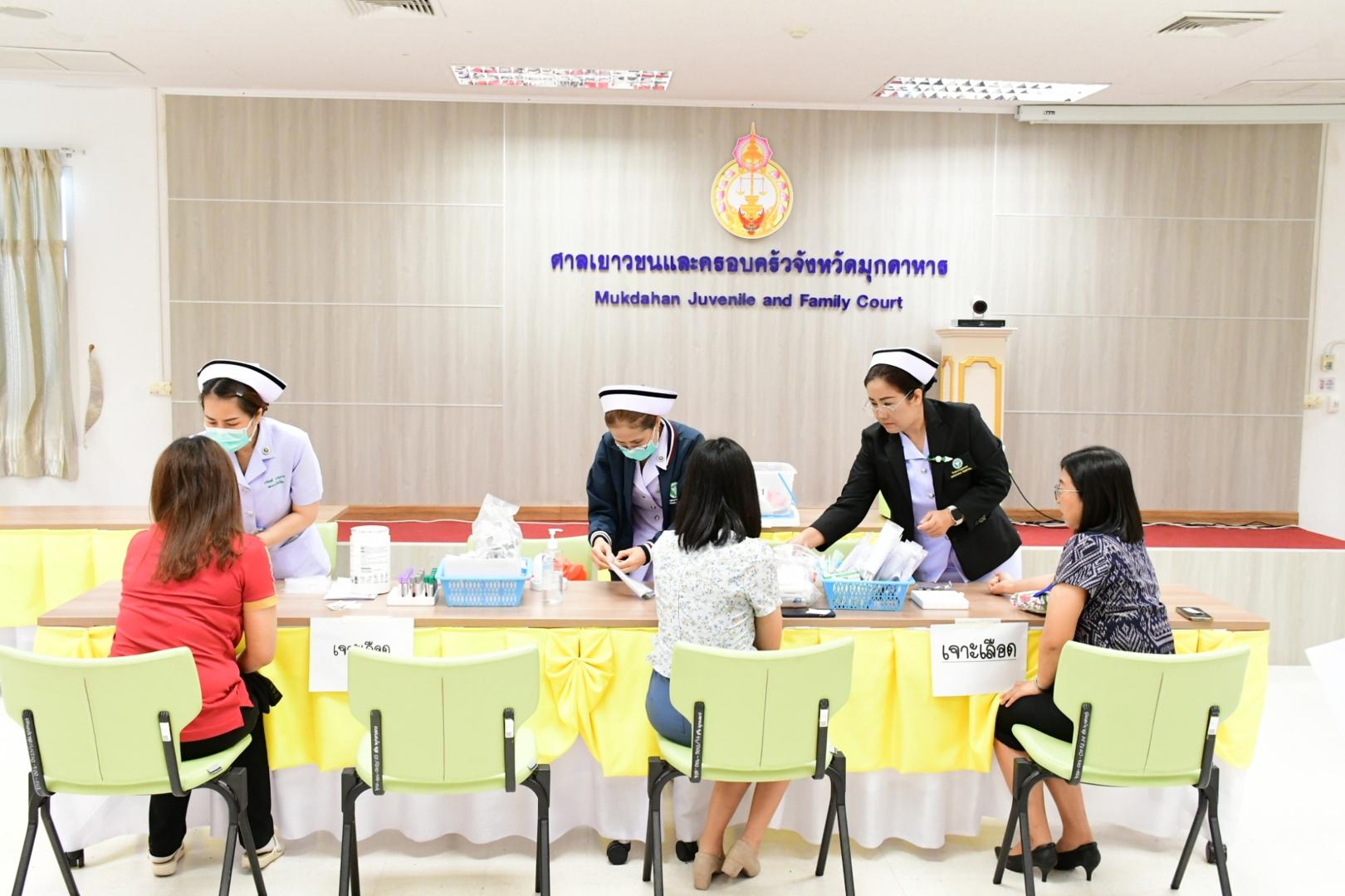 โรงพยาบาลมุกดาหารออกตรวจสุขภาพ เจ้าหน้าที่ศาลจังหวัดมุกดาหารและ ศาลเยาวชนและครอบครัวจังหวัดมุกดาหาร