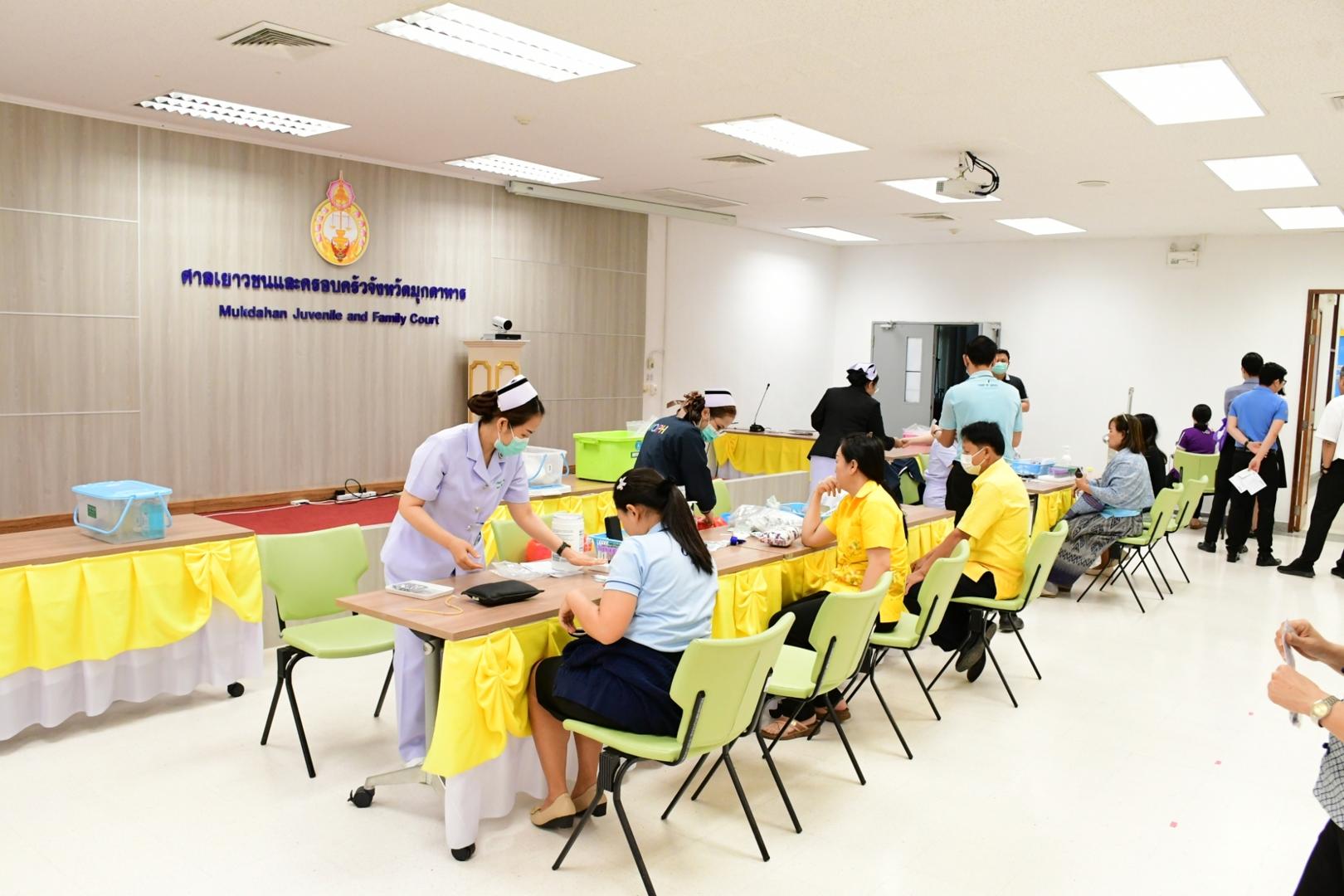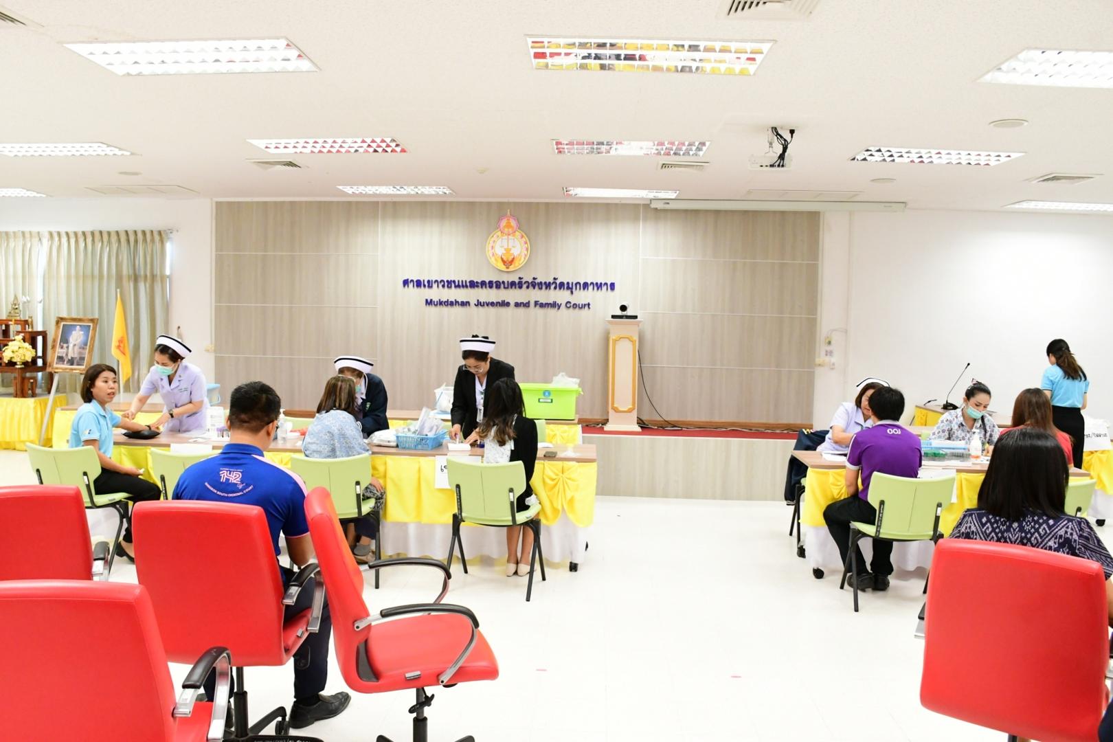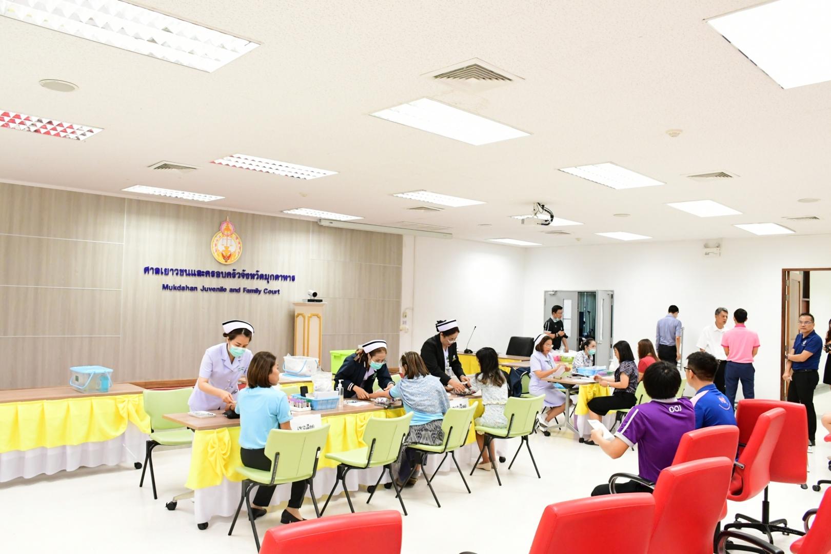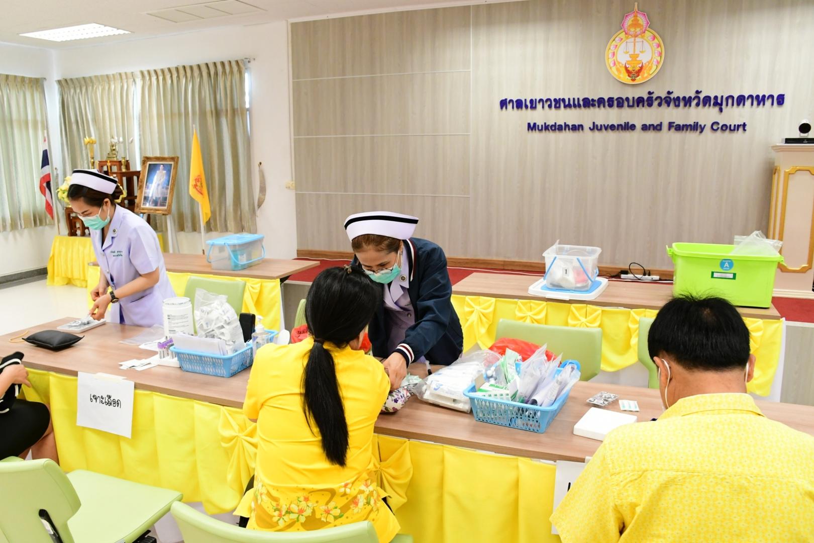 โรงพยาบาลมุกดาหารออกตรวจสุขภาพ เจ้าหน้าที่ศาลจังหวัดมุกดาหารและ ศาลเยาวชนและครอบครัวจังหวัดมุกดาหาร