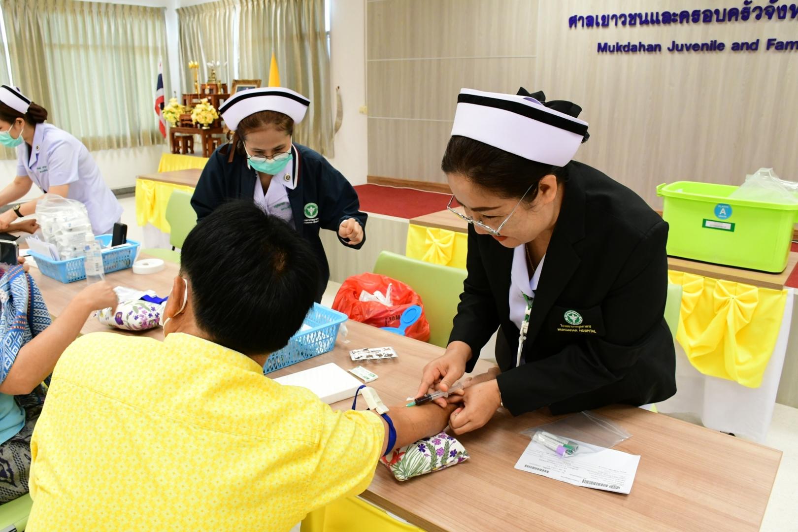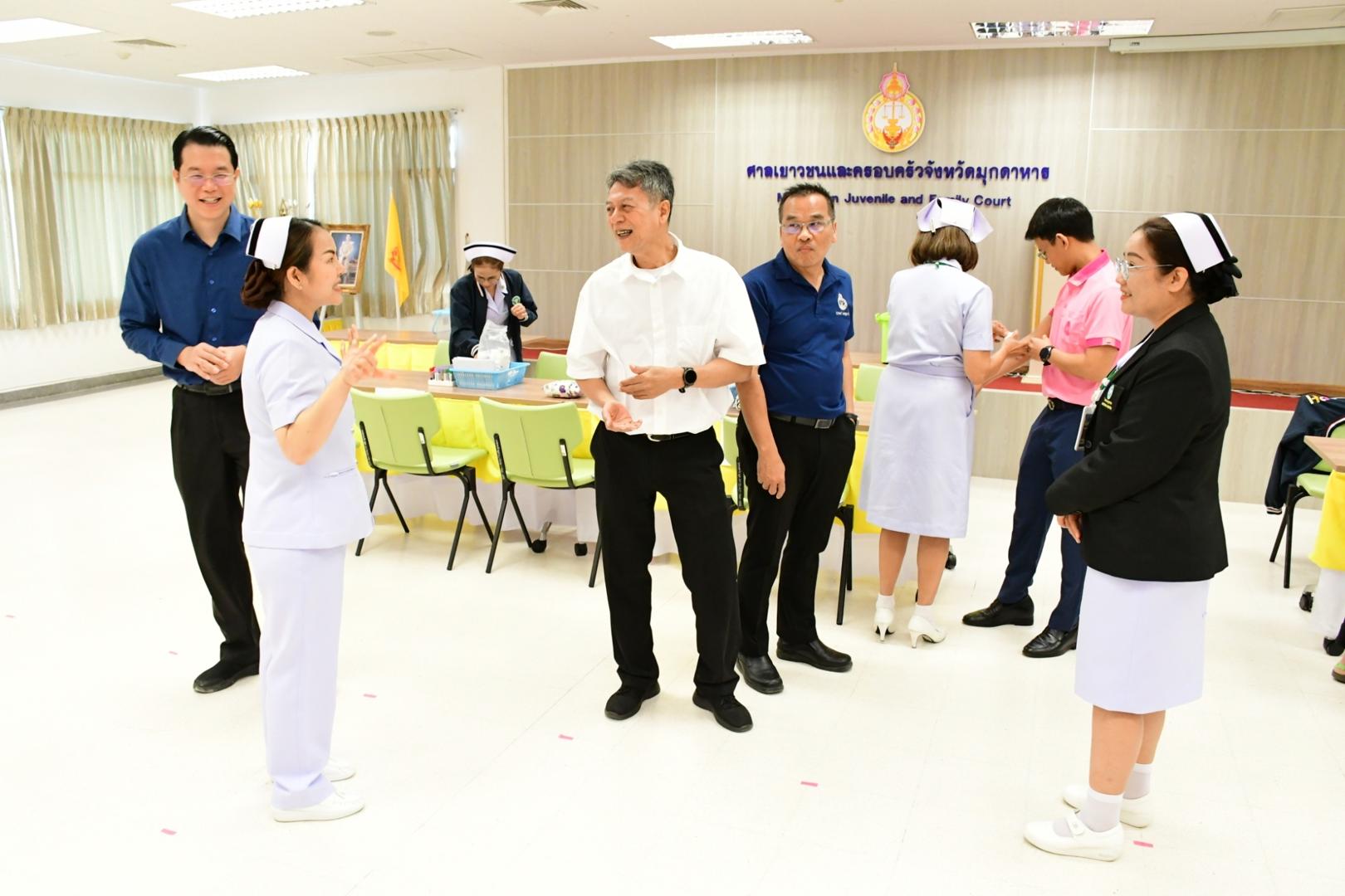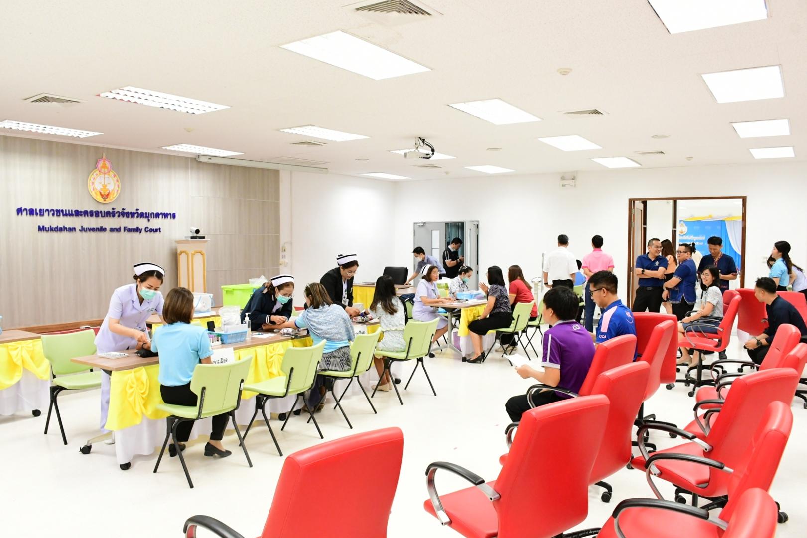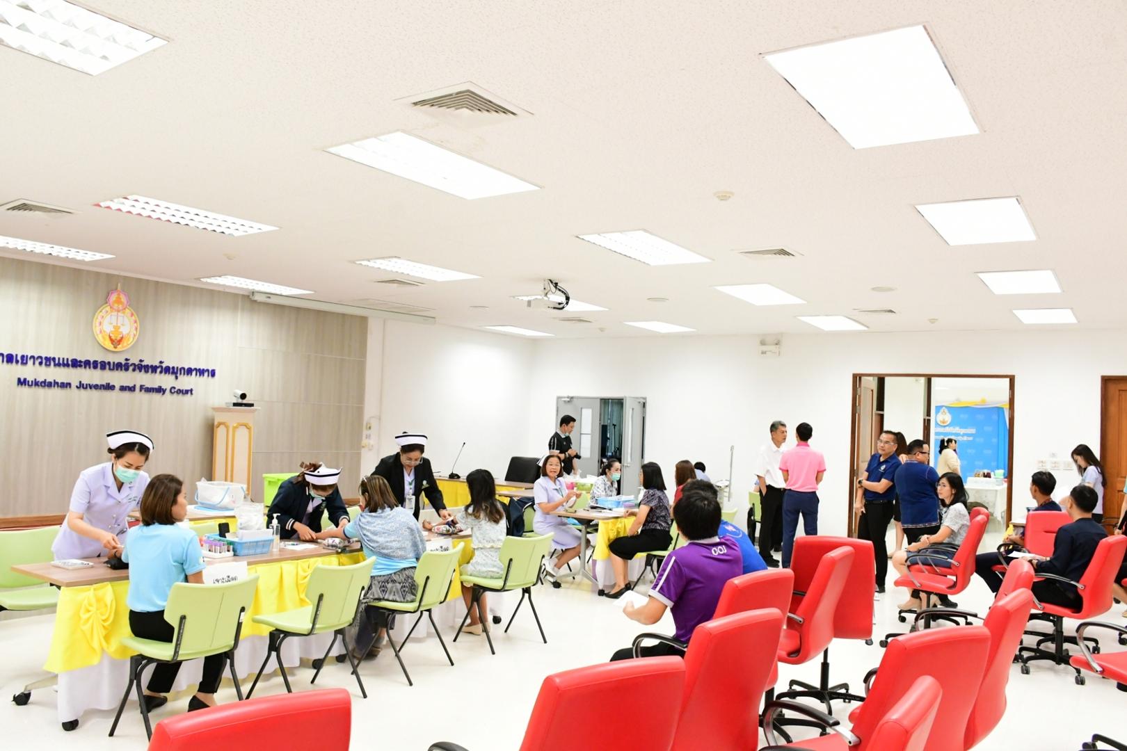 โรงพยาบาลมุกดาหารออกตรวจสุขภาพ เจ้าหน้าที่ศาลจังหวัดมุกดาหารและ ศาลเยาวชนและครอบครัวจังหวัดมุกดาหาร