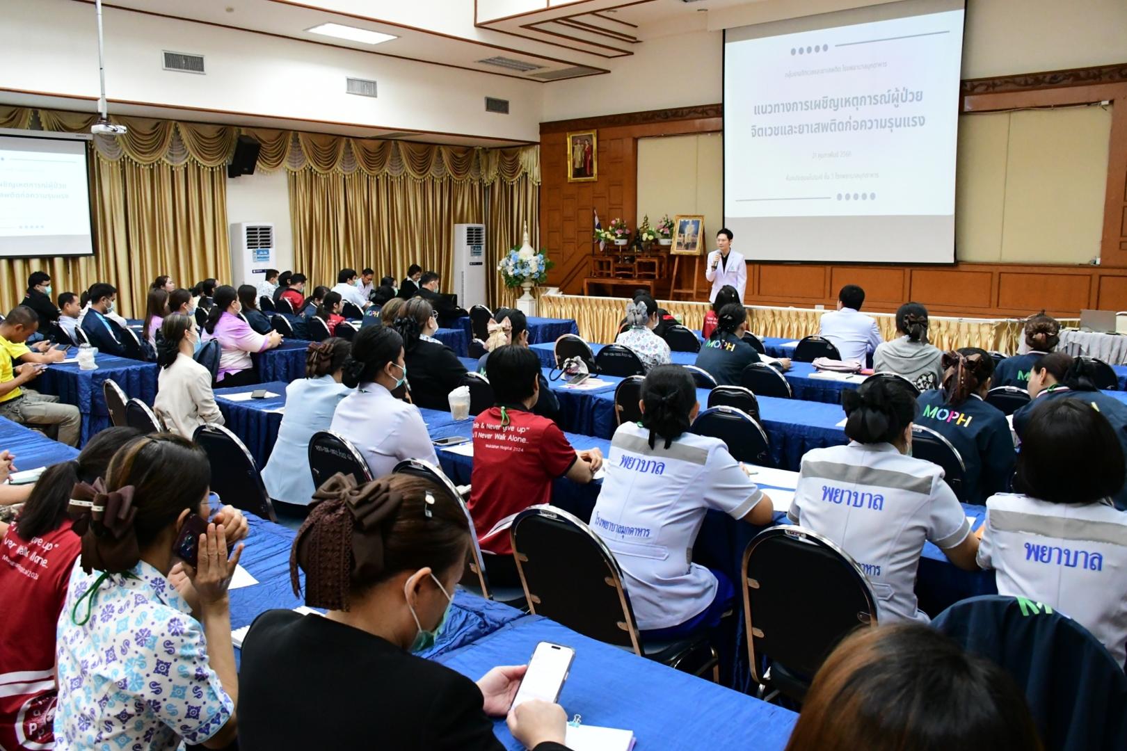 แพทย์หญิงกันตินันท์ มหาสุวีระชัย ผู้อำนวยการโรงพยาบาลมุกดาหาร มอบหมายให้นายแพทย์วิลาศ นรินทร์ รองผู้อำนวยการฝ่ายการแพทย์ เป็นประธานเปิดการประชุมฯ นายแพทย์เจริญชัย ยุทธวรวิทย์ หัวหน้ากลุ่มงานจิตเวช และยาเสพติด เป็นผู้กล่าวรายงานฯ พร้อมด้วยคณะผู้บริหารและเจ้าหน้าที่โรงพยาบาลมุกดาหาร เข้าร่วมประชุมเชิงปฏิบัติการซ้อมแผนเผชิญเหตุการณ์ ผู้ป่วยจิตเวชและยาเสพติดก่อความรุนแรง โรงพยาบาลมุกดาหาร จังหวัดมุกดาหาร ปีงบประมาณ 2568 เพื่อพัฒนาศักยภาพของผู้ปฏิบัติในการรับมือกับสถานการณ์ผู้ป่วยจิตเวช และยาเสพติดที่ก้าวร้าวรุนแรง และการเจรจาต่อรอง แนวทางการประสานงานระหว่างหน่วยงานที่เกี่ยวข้อง และเตรียมความพร้อมในการรับมือในสถานการณ์จริง