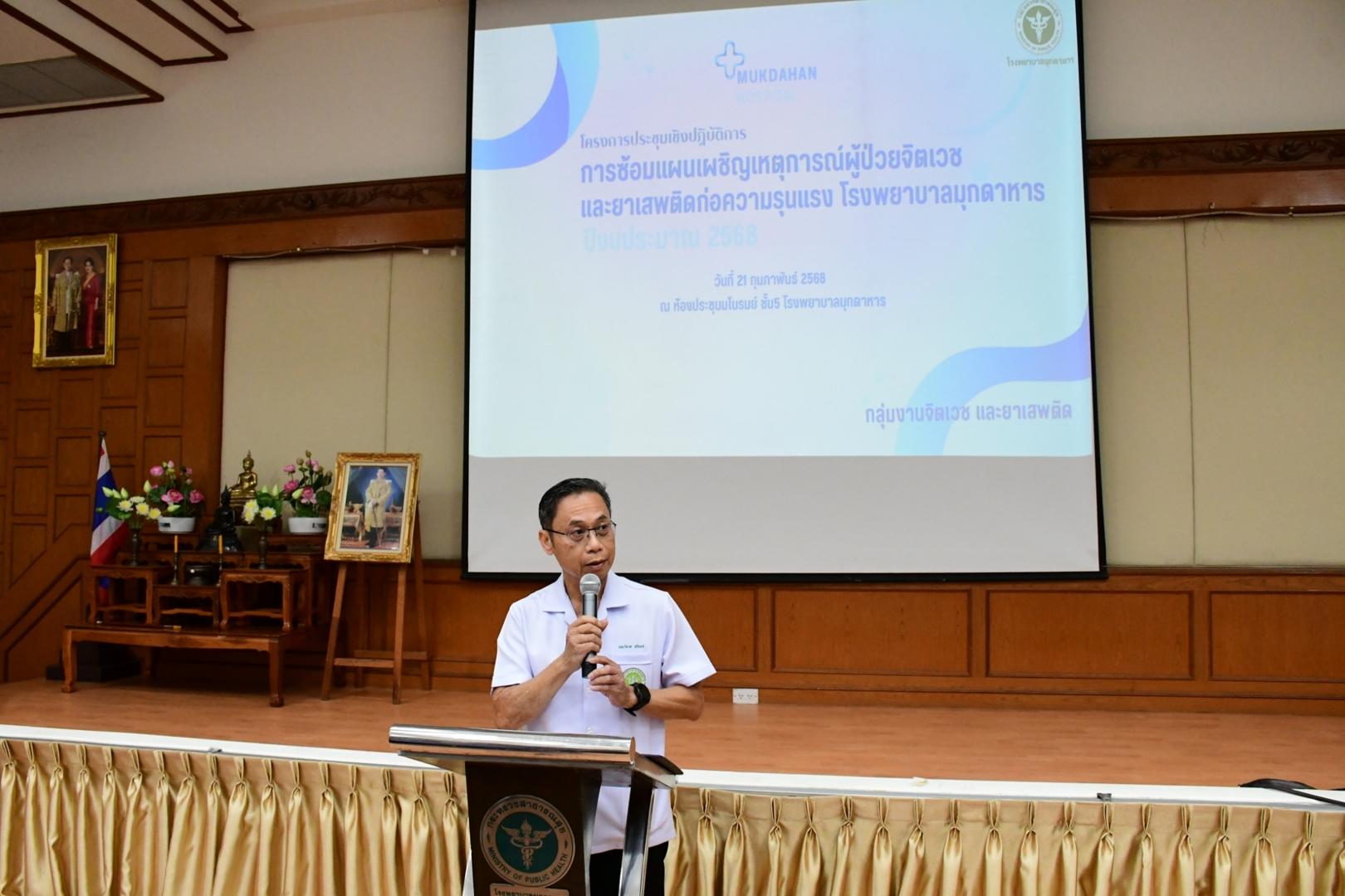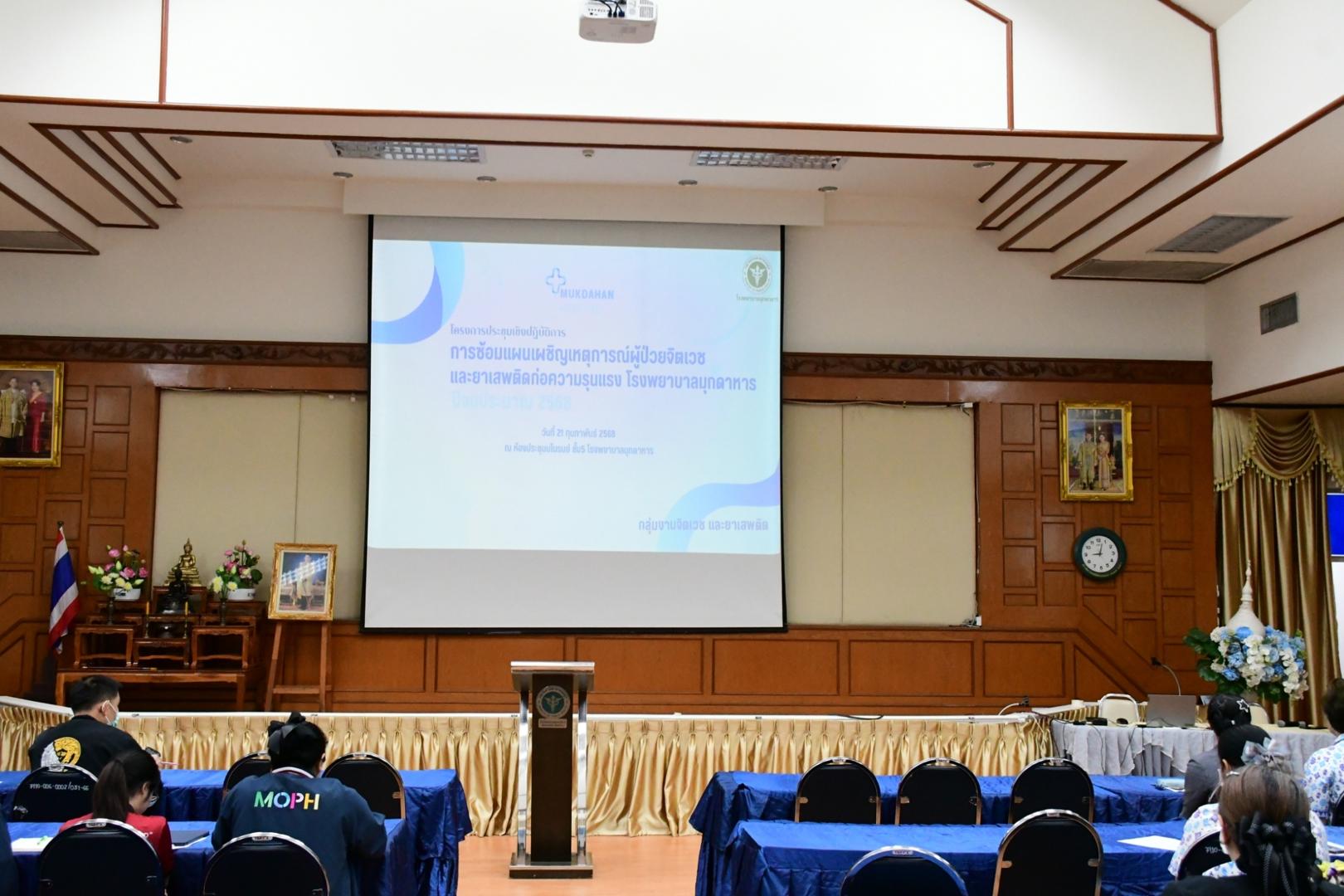 โรงพยาบาลมุกดาหารจัดประชุมเชิงปฏิบัติการซ้อมแผนเผชิญเหตุการณ์ ผู้ป่วยจิตเวชและยาเสพติดก่อความรุนแรง โรงพยาบาลมุกดาหาร จังหวัดมุกดาหาร ปีงบประมาณ 2568