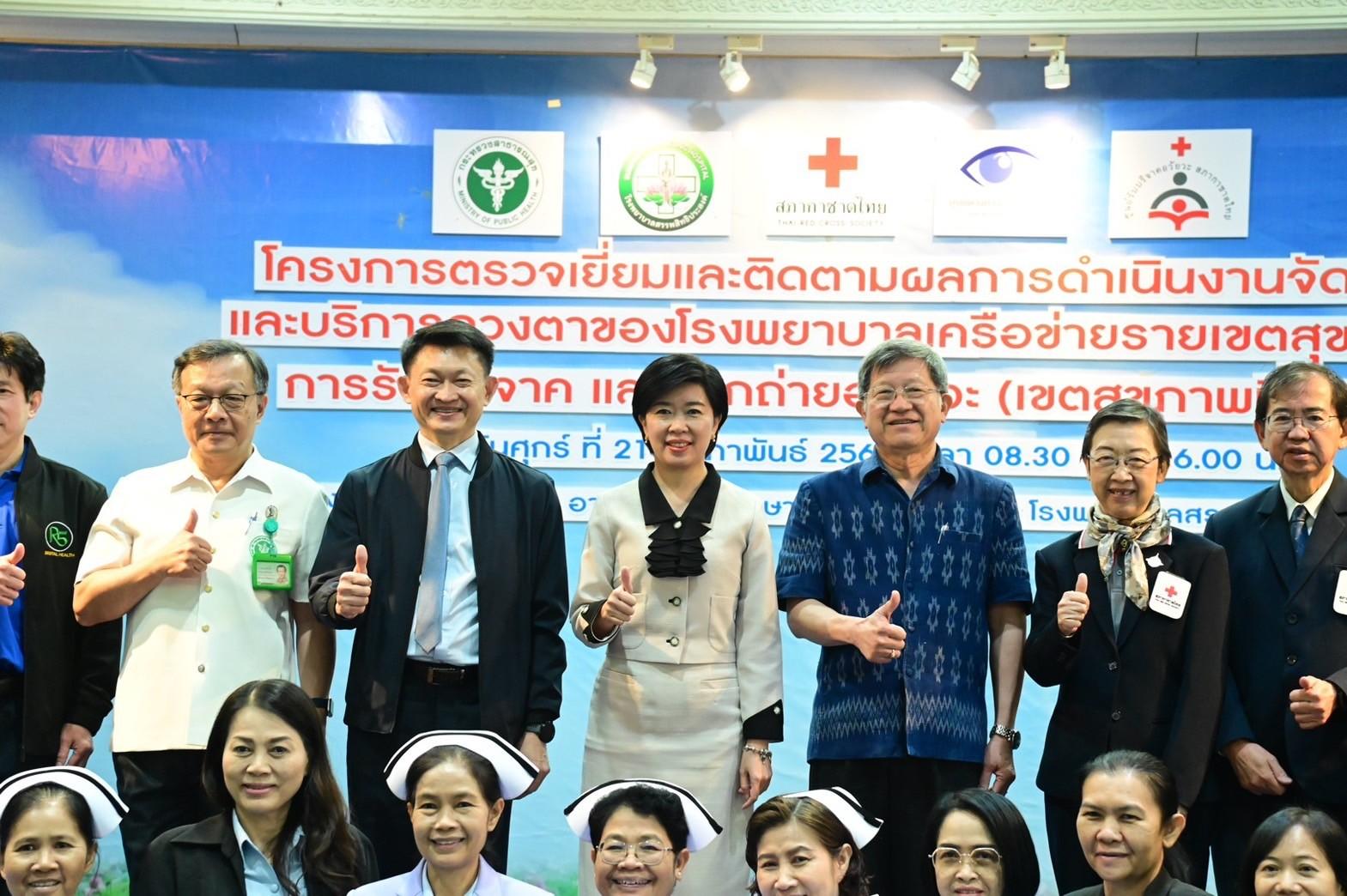 โดยมีแพทย์หญิงอุไรวรรณ จำนรรจ์สิริ สาธารณสุขนิเทศก์ ผู้อำนวยการสำนักงานเขตสุขภาพที่ 10 เป็นประธานกล่าวต้อนรับคณะตรวจเยี่ยมฯ นายแพทย์โสภณ เมฆธน ประธานคณะกรรมการจัดหาและบริการดวงตาแห่งสภากาชาดไทย เป็นผู้กล่าววัตถุประสงค์ของการลงพื้นที่ตรวจเยี่ยมฯ