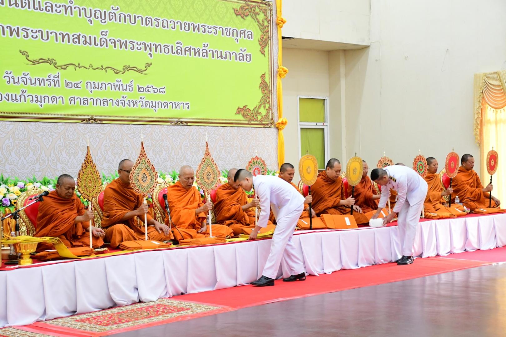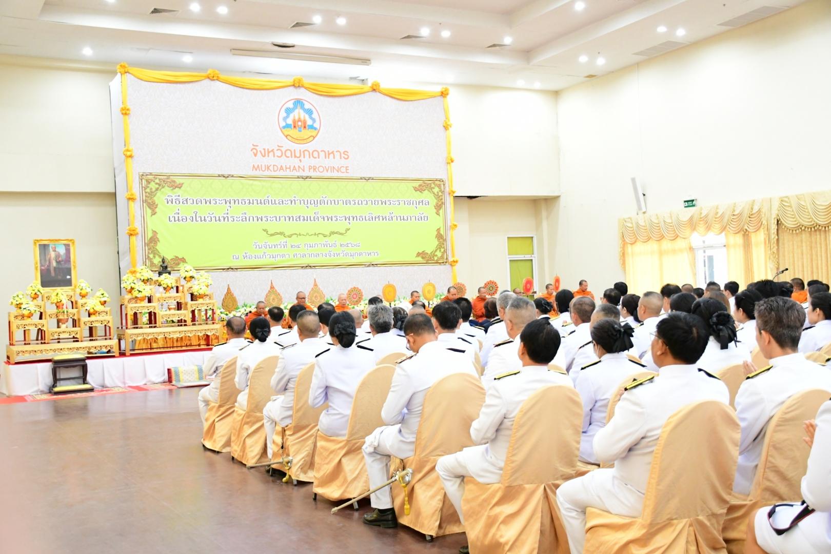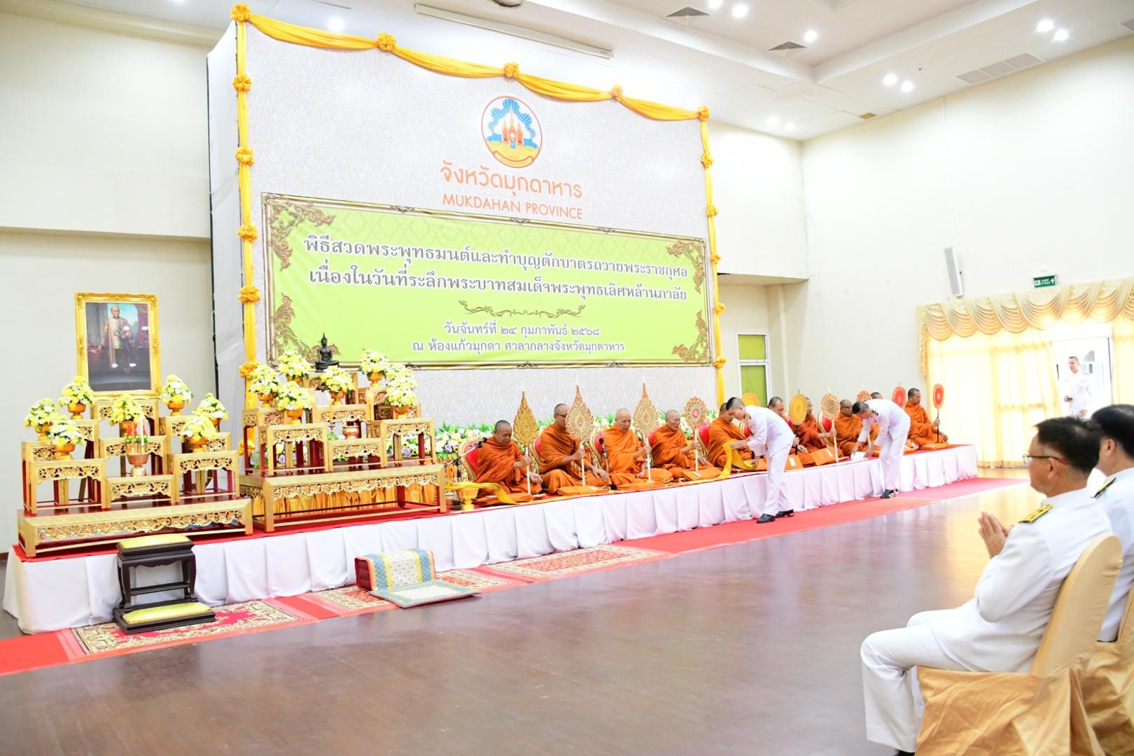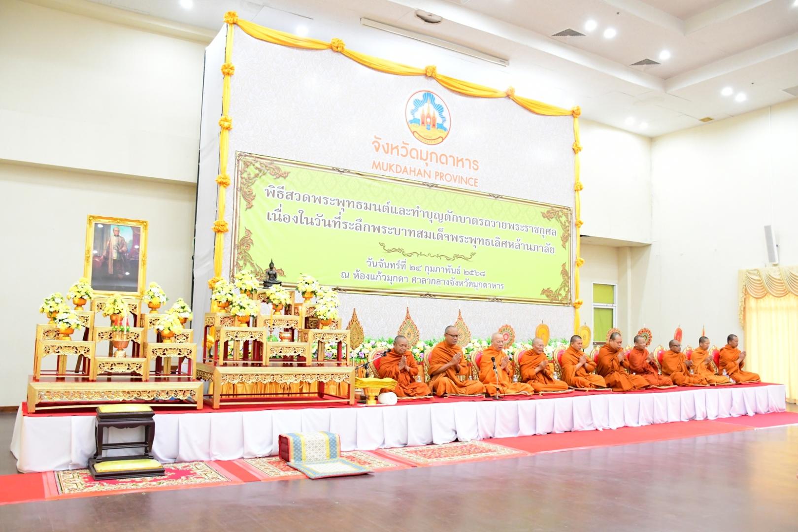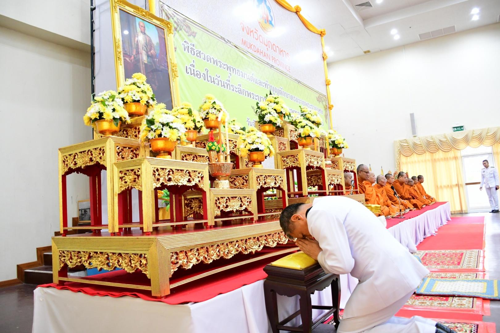 แพทย์หญิงกันตินันท์ มหาสุวีระชัย ผู้อำนวยการโรงพยาบาลมุกดาหาร มอบหมายให้นางพัชนี ฤกษ์ใหญ่ รองหัวหน้าพยาบาลด้านบริหารการพยาบาล พร้อมด้วยคณะเจ้าหน้าที่โรงพยาบาลมุกดาหาร ร่วมกิจกรรมเนื่องในวันที่ระลึกพระบาทสมเด็จพระพุทธเลิศหล้านภาลัย โดยมีพิธีสวดพระพุทธมนต์และพิธีทำบุญตักบาตร พระสงฆ์ จำนวน 59 รูป