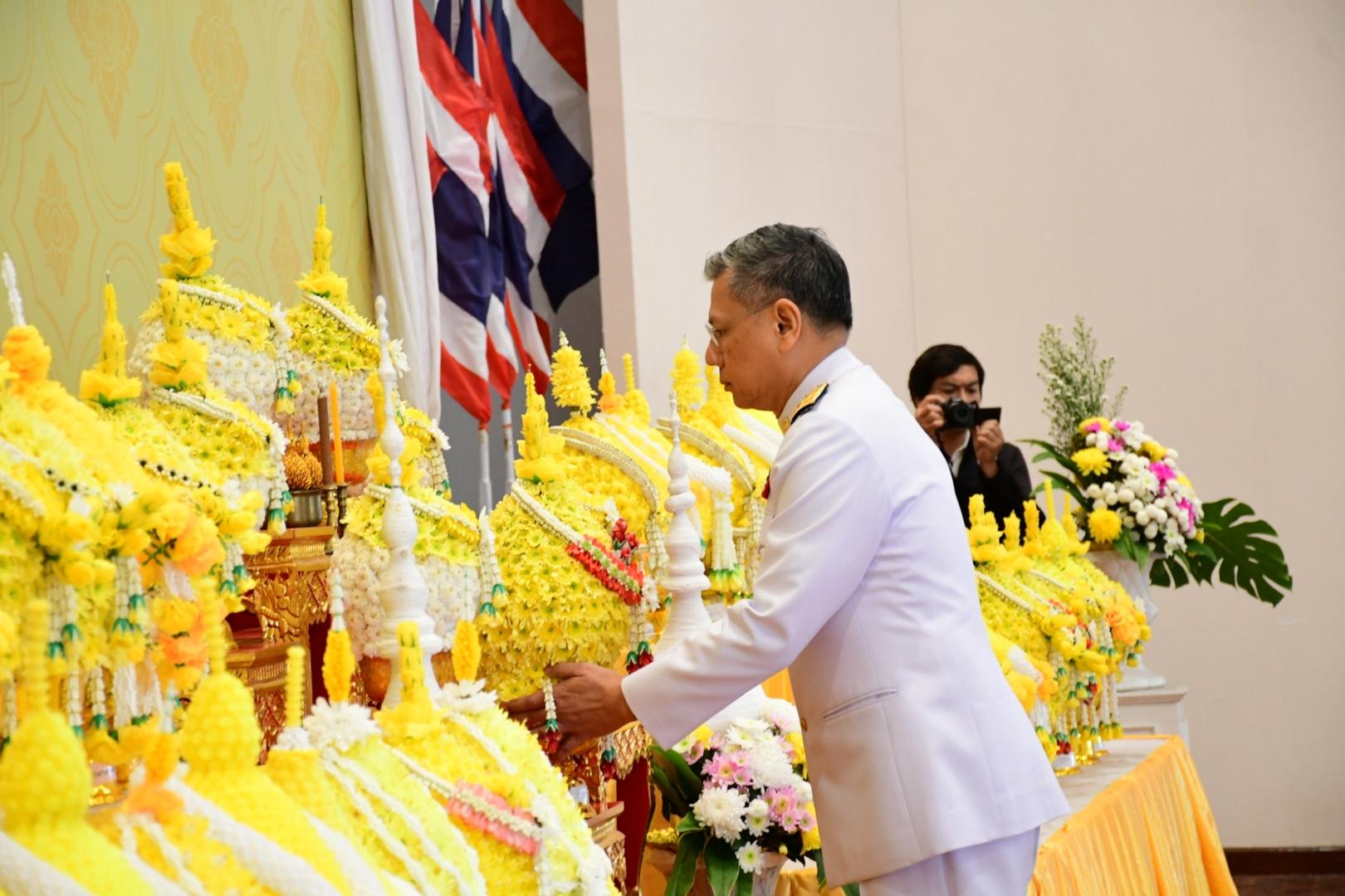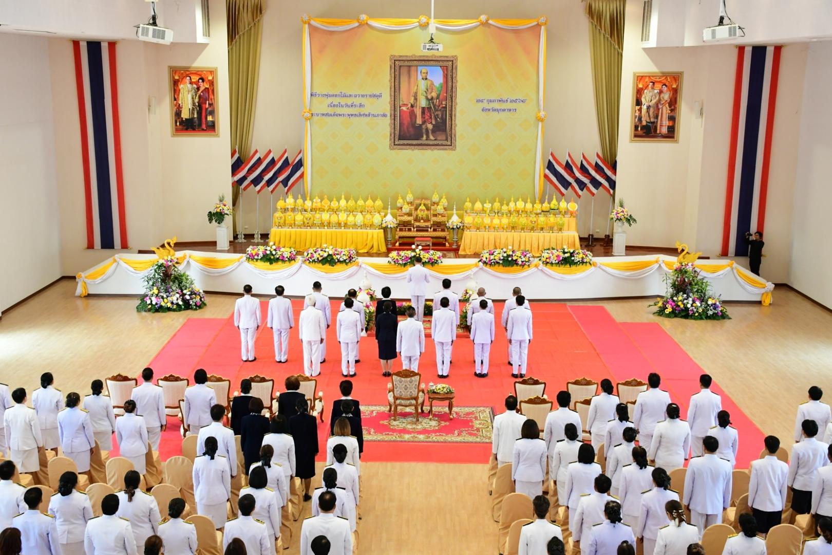 เมื่อเวลา 07.30 น. พิธีวางพานพุ่มดอกไม้และถวายราชสดุดี เพื่อน้อมรำลึกถึงพระมหากรุณาธิคุณของพระบาทสมเด็จพระพุทธเลิศหล้านภาลัย เนื่องในวันที่ระลึกพระบาทสมเด็จพระพุทธเลิศหล้านภาลัย
