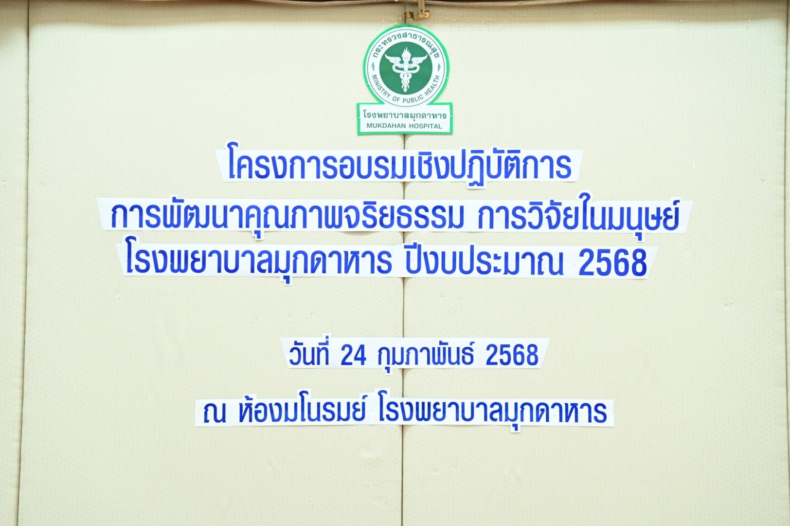 โรงพยาบาลมุกดาหารจัดอบรมเชิงปฏิบัติการการพัฒนาคุณภาพจริยธรรมการวิจัยในมนุษย์ โรงพยาบาลมุกดาหาร ปีงบประมาณ 2568