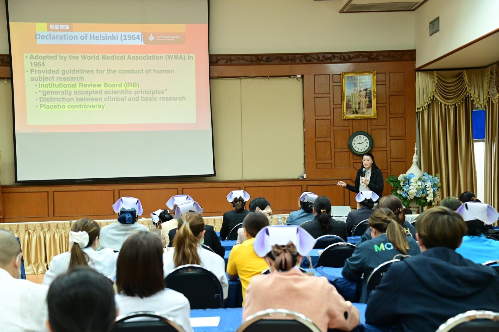 โดยได้รับเกียรติจาก ผู้ช่วยศาสตราจารย์ ดร.พญ.พรรณทิพา ว่องไว รองผู้อำนวยการสถาบันบริหารจัดการความรู้ด้านจริยธรรมการวิจัยในมนุษย์ คณะเเพทยศาสตร์ มหาวิทยาลัยขอนแก่น เป็นวิทยากรหลักในการอบรมครั้งนี้