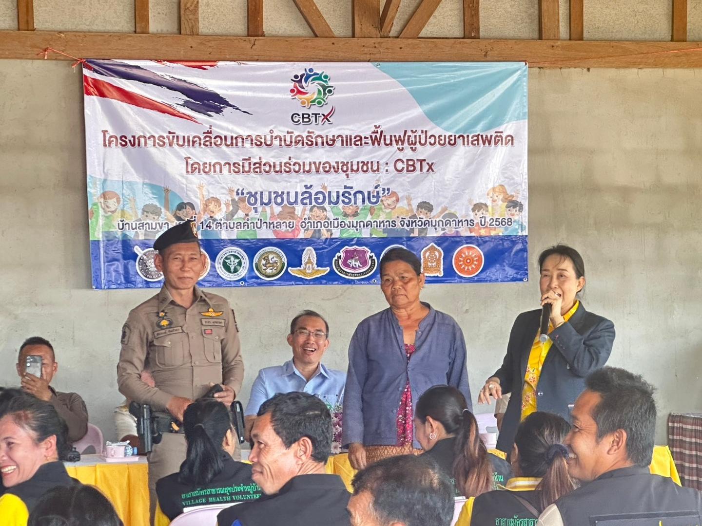 แพทย์หญิงกันตินันท์ มหาสุวีระชัย ผู้อำนวยการโรงพยาบาลมุกดาหาร มอบหมายให้นางวรนุชเกราะชูกุล หัวหน้ากลุ่มงานการพยาบาลจิตเวชและยาเสพติด พร้อมด้วยบุคลากรในสังกัด กระทรวงสาธารณสุข เข้าร่วมประชาคม การดำเนินงานบำบัดรักษาและฟื้นฟูผู้ป่วยยาเสพติดฯ โดยการมีส่วนร่วม CBTxชุมชนล้อมรักษ์