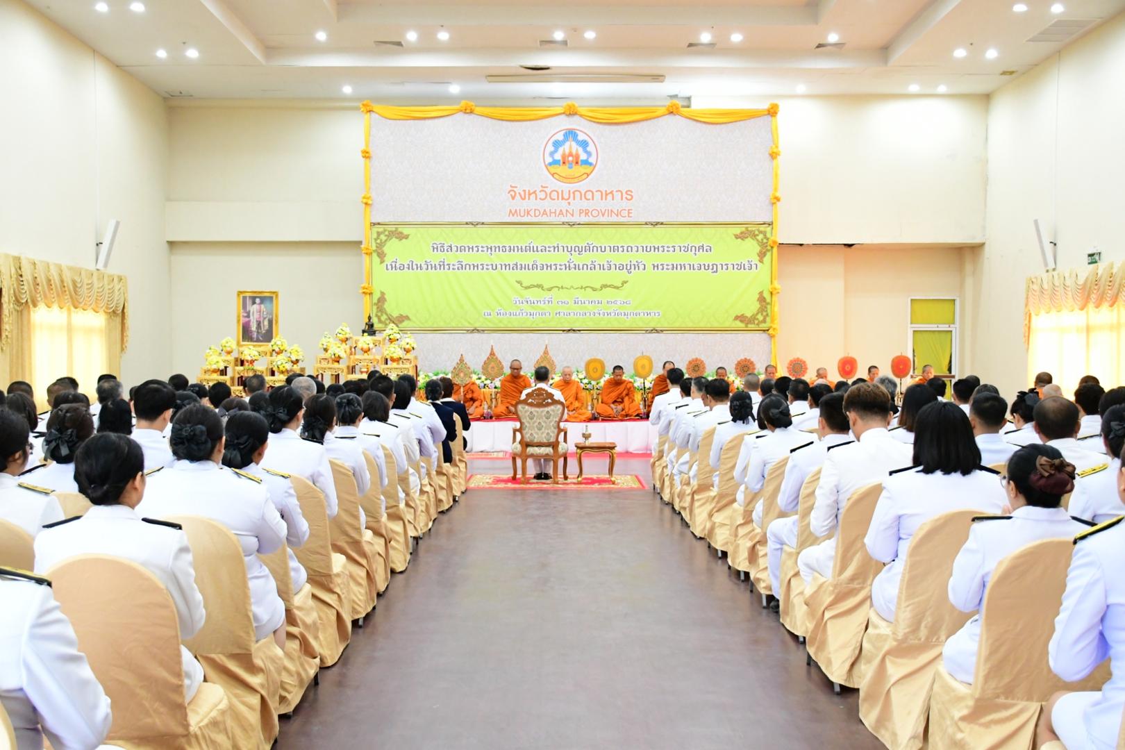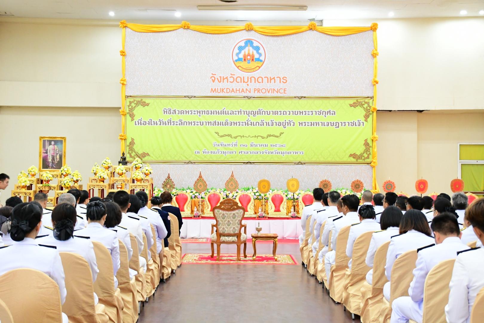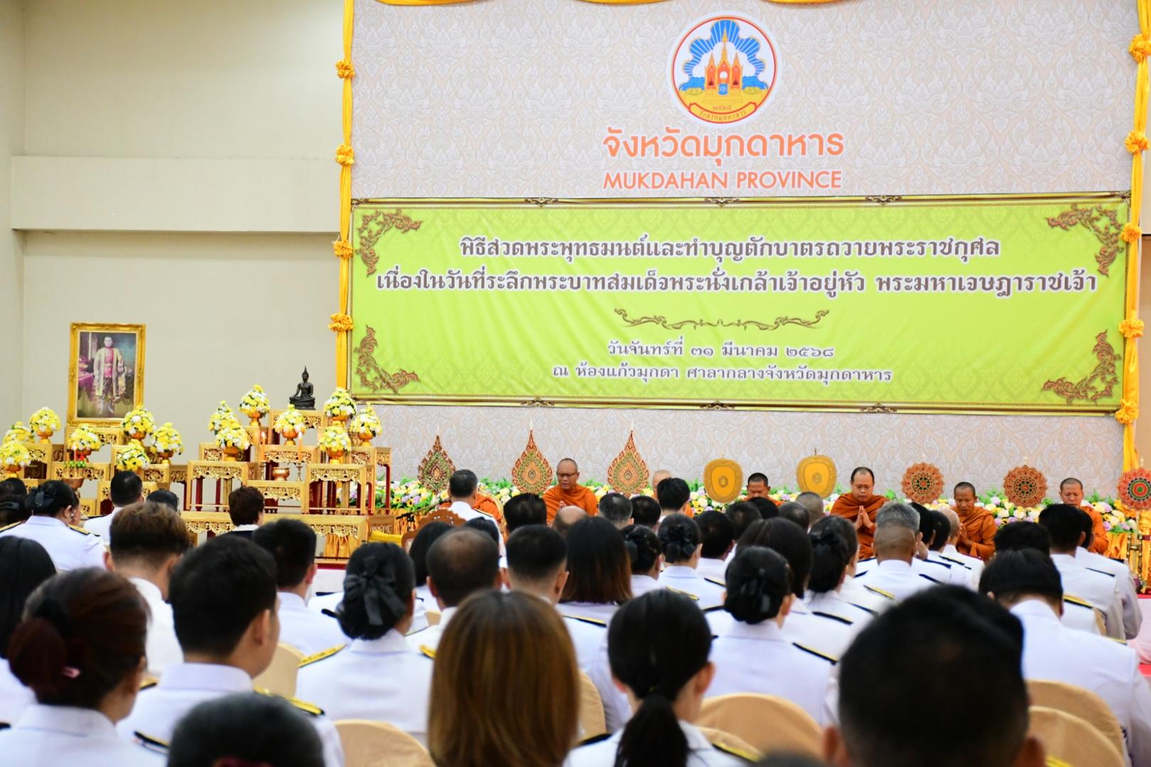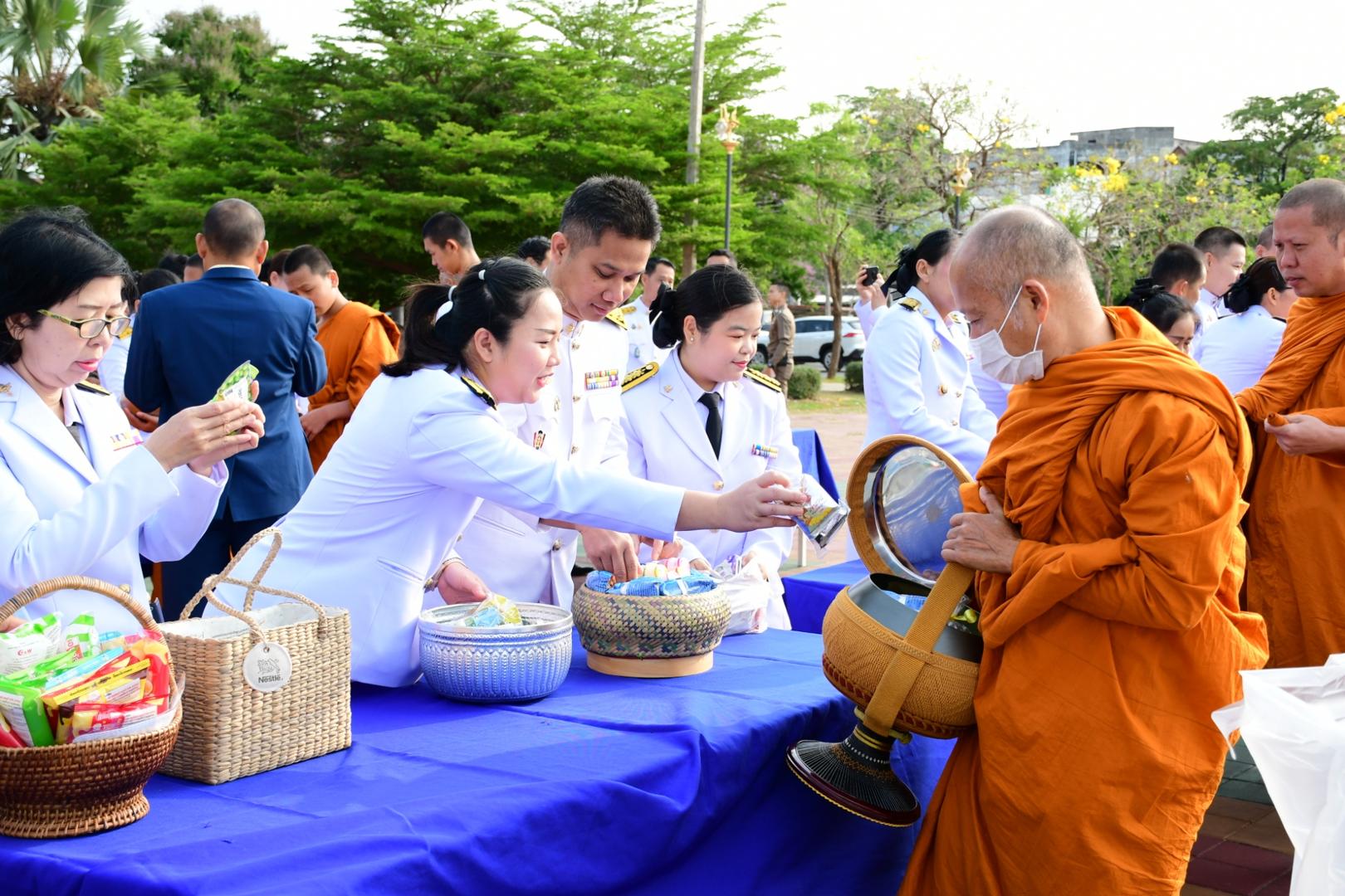 แพทย์หญิงกันตินันท์ มหาสุวีระชัย ผู้อำนวยการโรงพยาบาลมุกดาหาร มอบหมายให้นายแพทย์ปิยพงษ์ บำรุง รองผู้อำนวยการด้านบริการปฐมภูมิ พร้อมด้วยคณะผู้บริหารและเจ้าหน้าที่โรงพยาบาลมุกดาหาร เข้าร่วมพิธีสวดพระพุทธมนต์และทำบุญตักบาตรถวายพระราชกุศล พระสงฆ์จำนวน 59 รูป