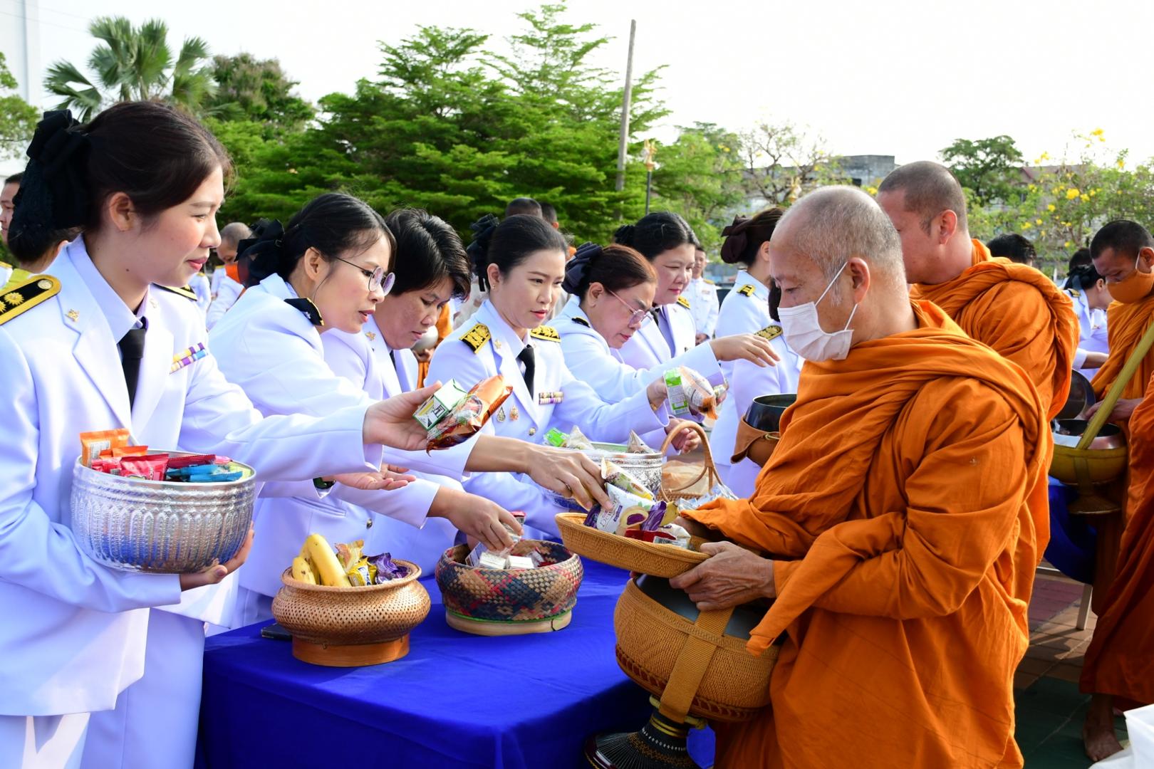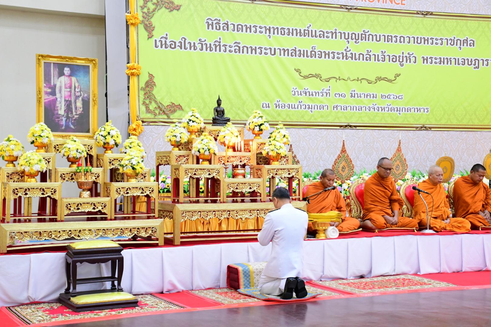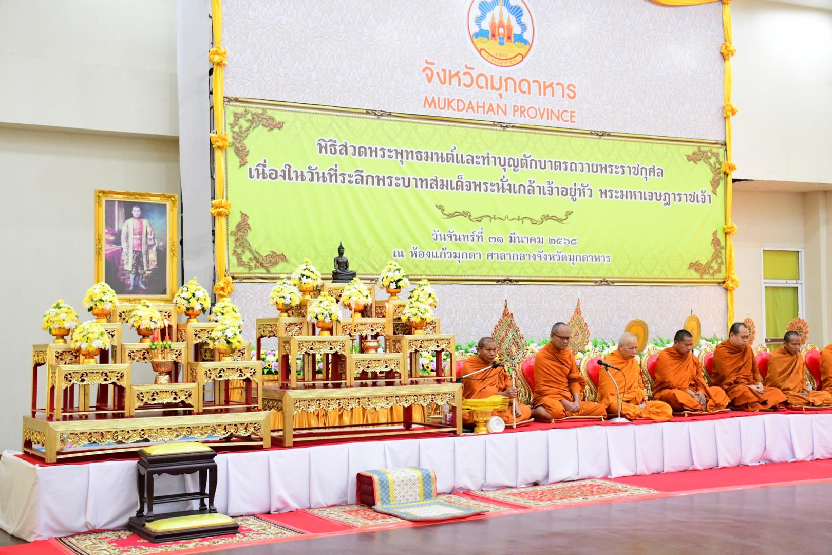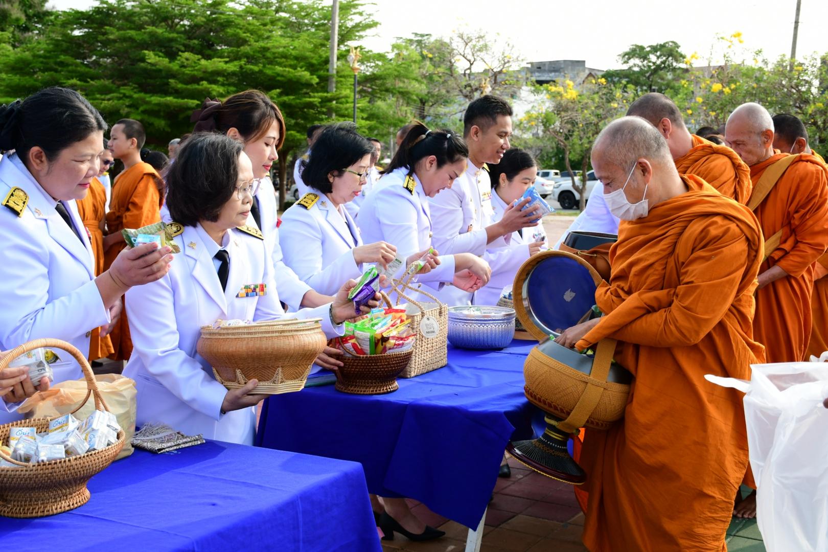 แพทย์หญิงกันตินันท์ มหาสุวีระชัย ผู้อำนวยการโรงพยาบาลมุกดาหาร มอบหมายให้นายแพทย์ปิยพงษ์ บำรุง รองผู้อำนวยการด้านบริการปฐมภูมิ พร้อมด้วยคณะผู้บริหารและเจ้าหน้าที่โรงพยาบาลมุกดาหาร เข้าร่วมพิธีสวดพระพุทธมนต์และทำบุญตักบาตรถวายพระราชกุศล พระสงฆ์จำนวน 59 รูป