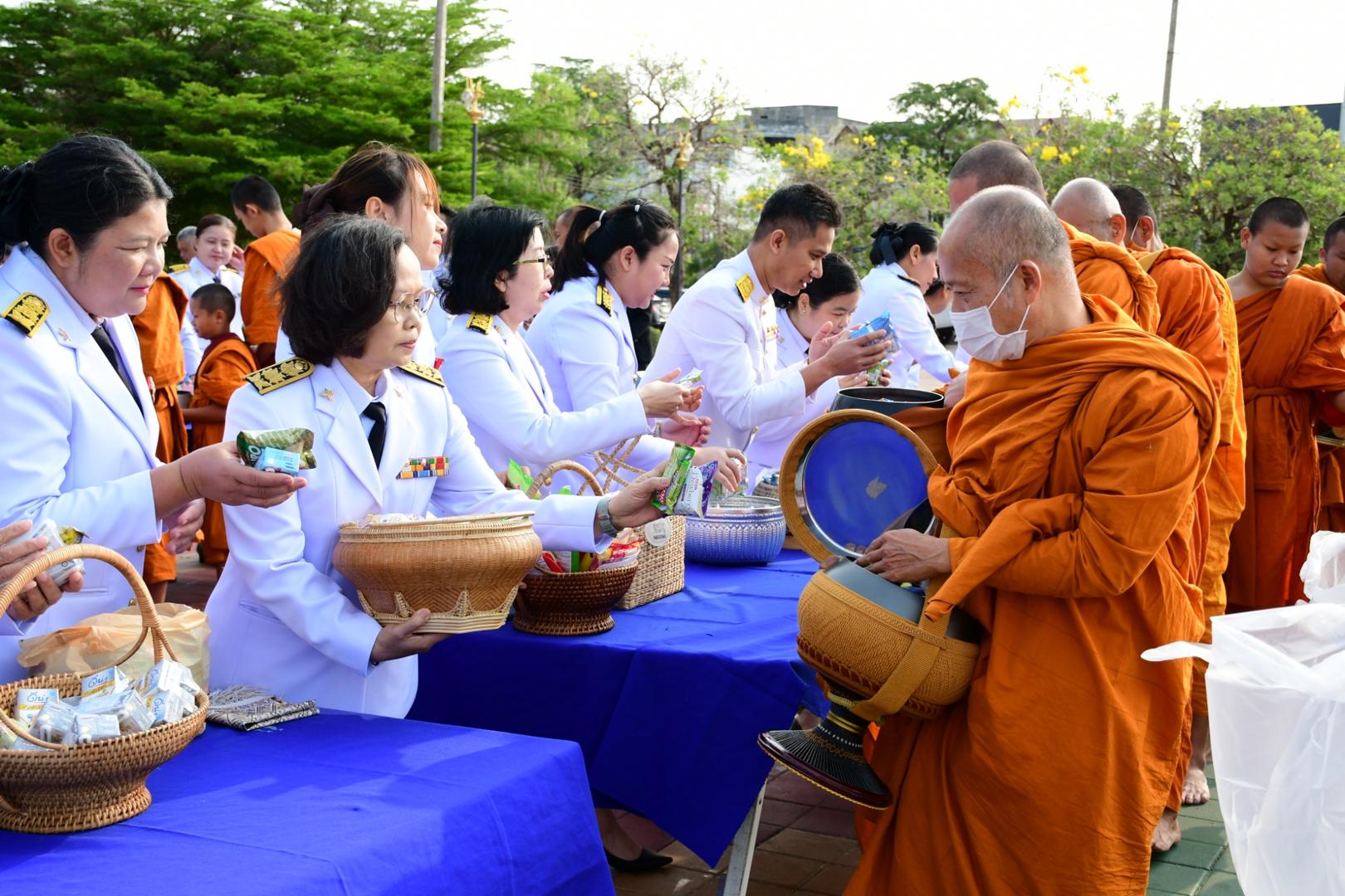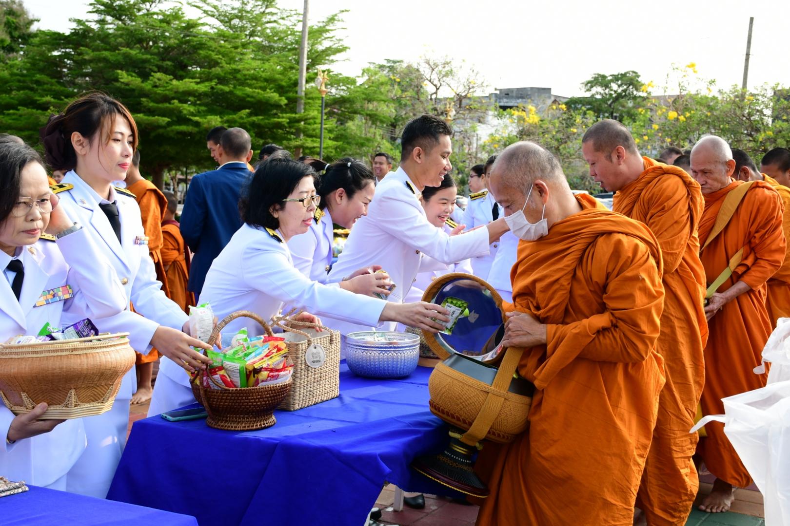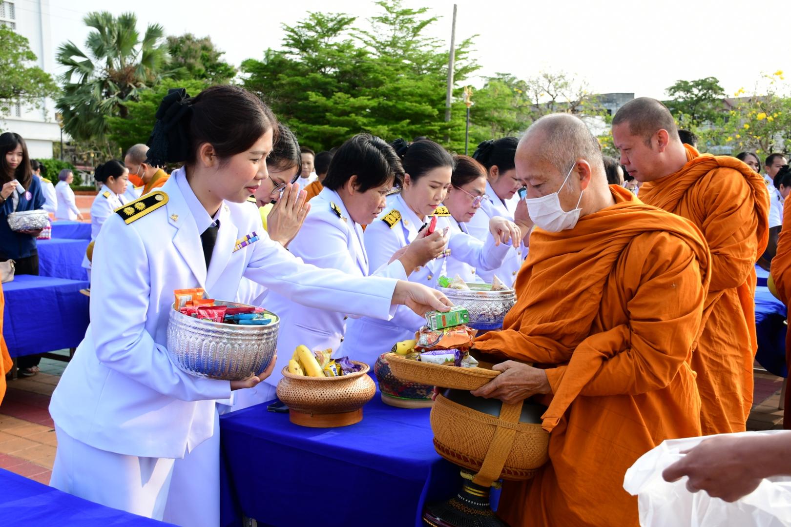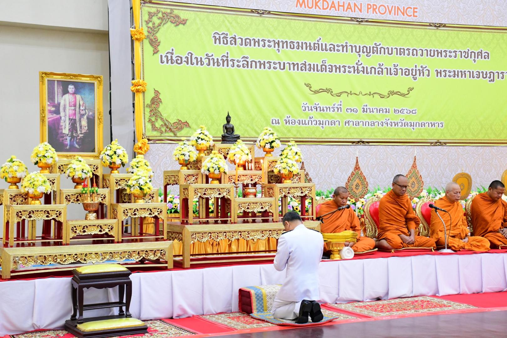 แพทย์หญิงกันตินันท์ มหาสุวีระชัย ผู้อำนวยการโรงพยาบาลมุกดาหาร มอบหมายให้นายแพทย์ปิยพงษ์ บำรุง รองผู้อำนวยการด้านบริการปฐมภูมิ พร้อมด้วยคณะผู้บริหารและเจ้าหน้าที่โรงพยาบาลมุกดาหาร เข้าร่วมพิธีสวดพระพุทธมนต์และทำบุญตักบาตรถวายพระราชกุศล พระสงฆ์จำนวน 59 รูป