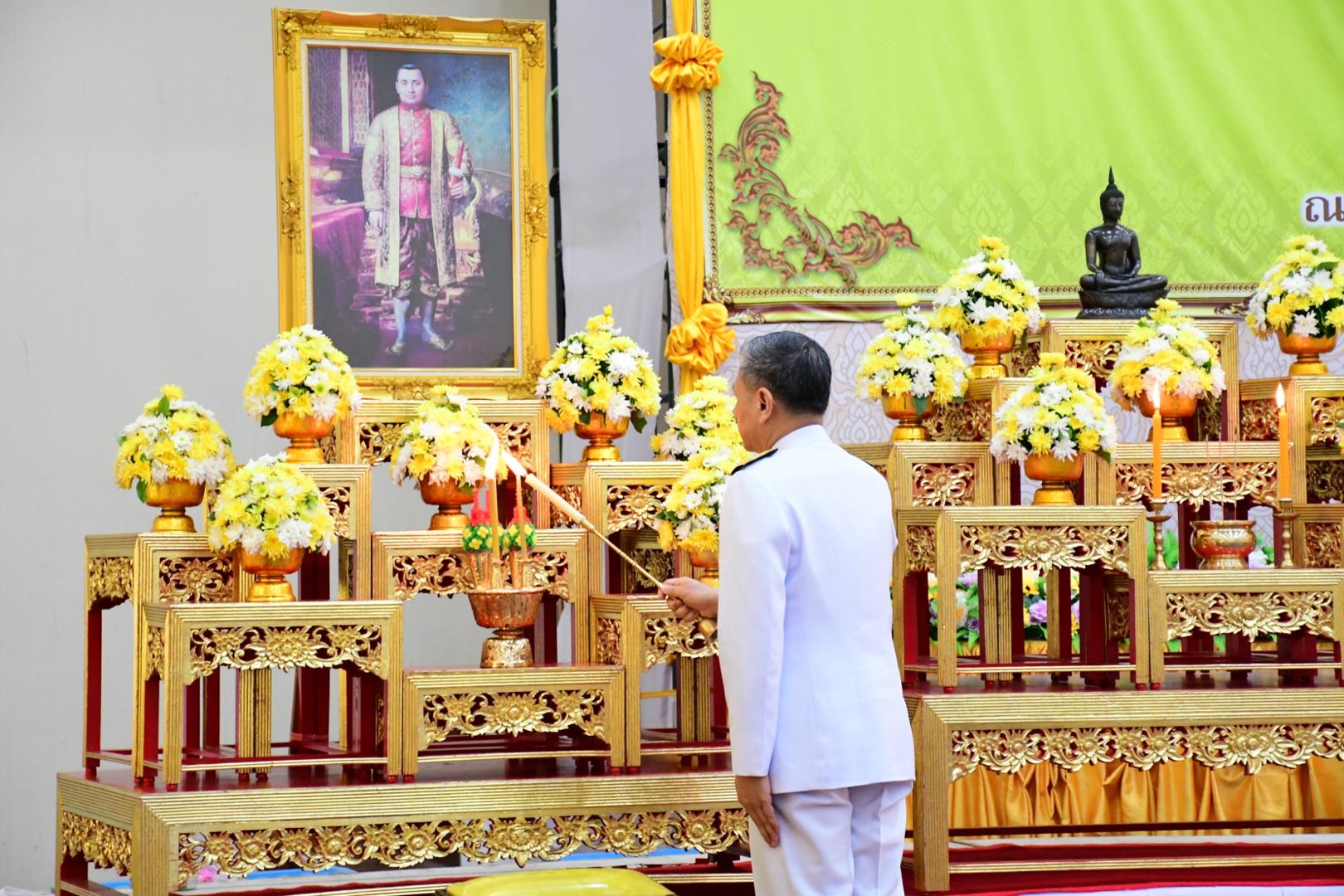 เมื่อเวลา 07.30 น. พิธีวางพานพุ่มดอกไม้และถวายราชสดุดี เพื่อน้อมรำลึกถึงพระมหากรุณาธิคุณ "เนื่องในวันที่ระลึกพระบาทสมเด็จพระนั่งเกล้าเจ้าอยู่หัว พระมหาเจษฎาราชเจ้า"