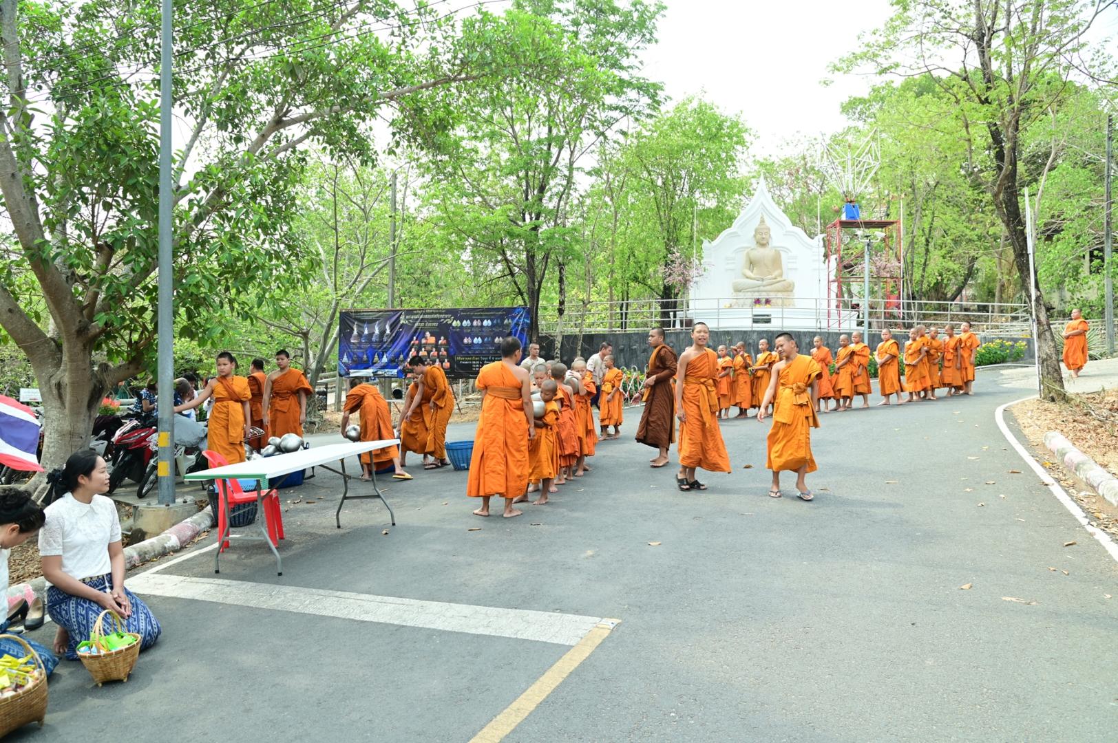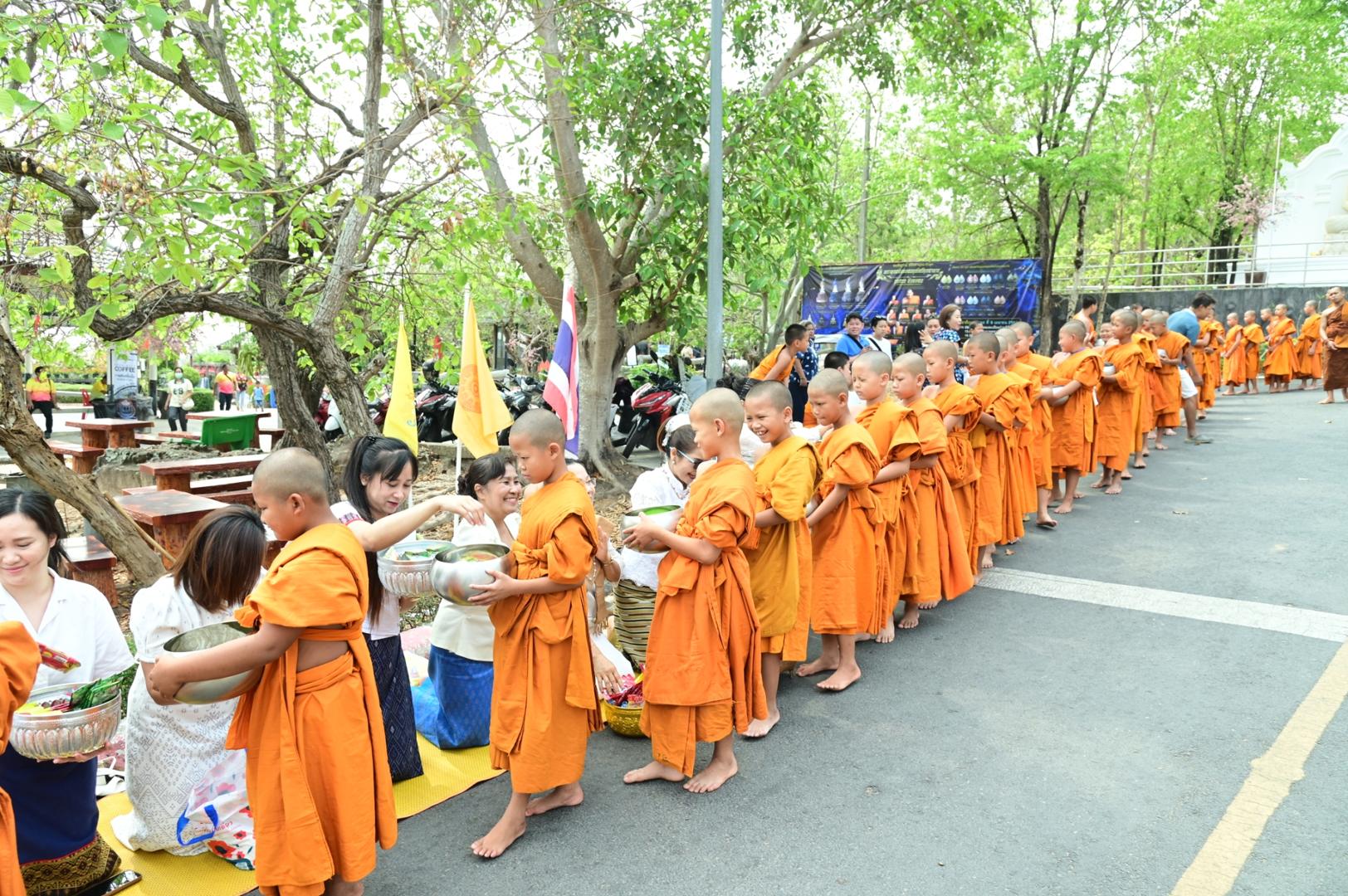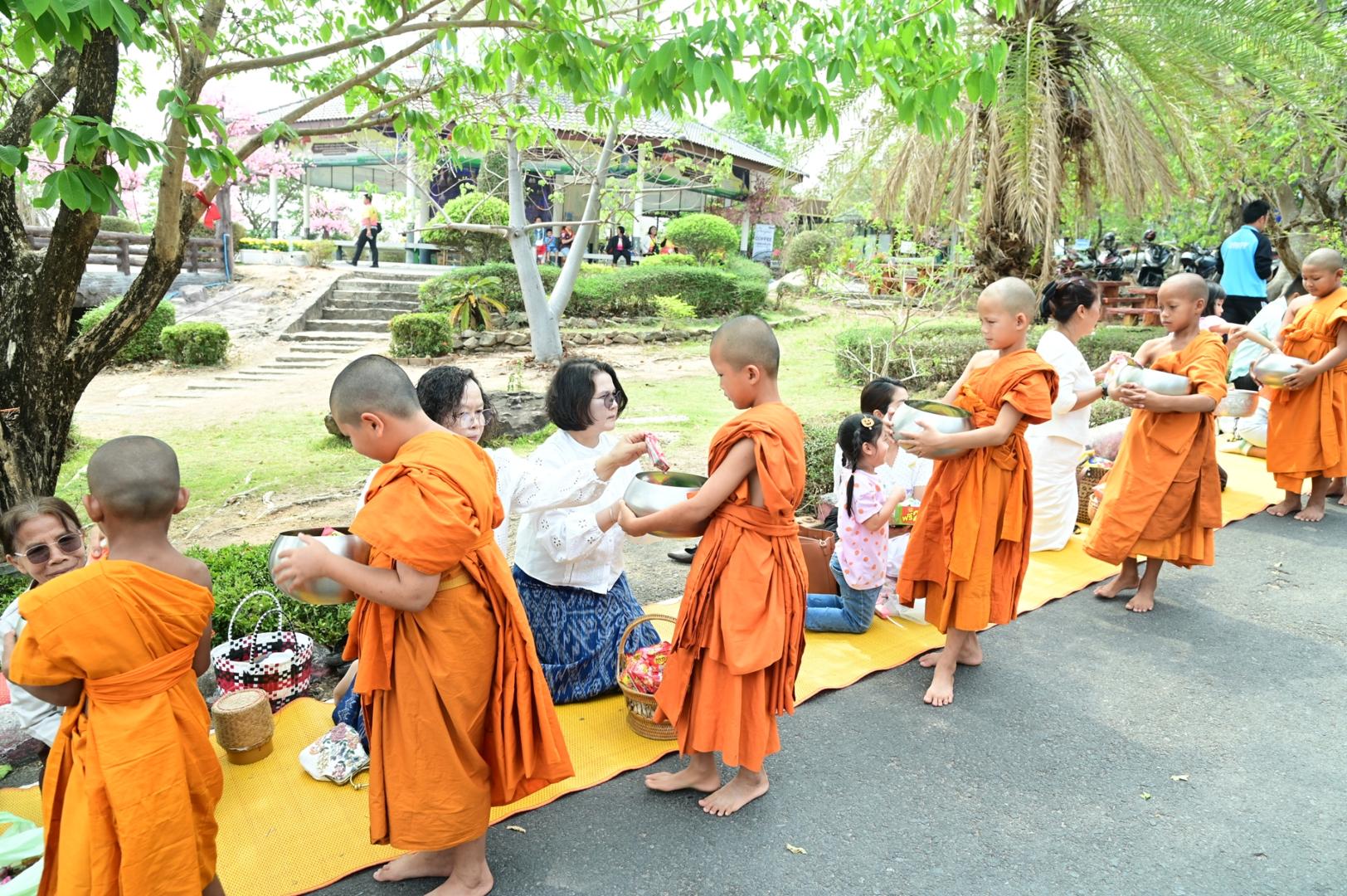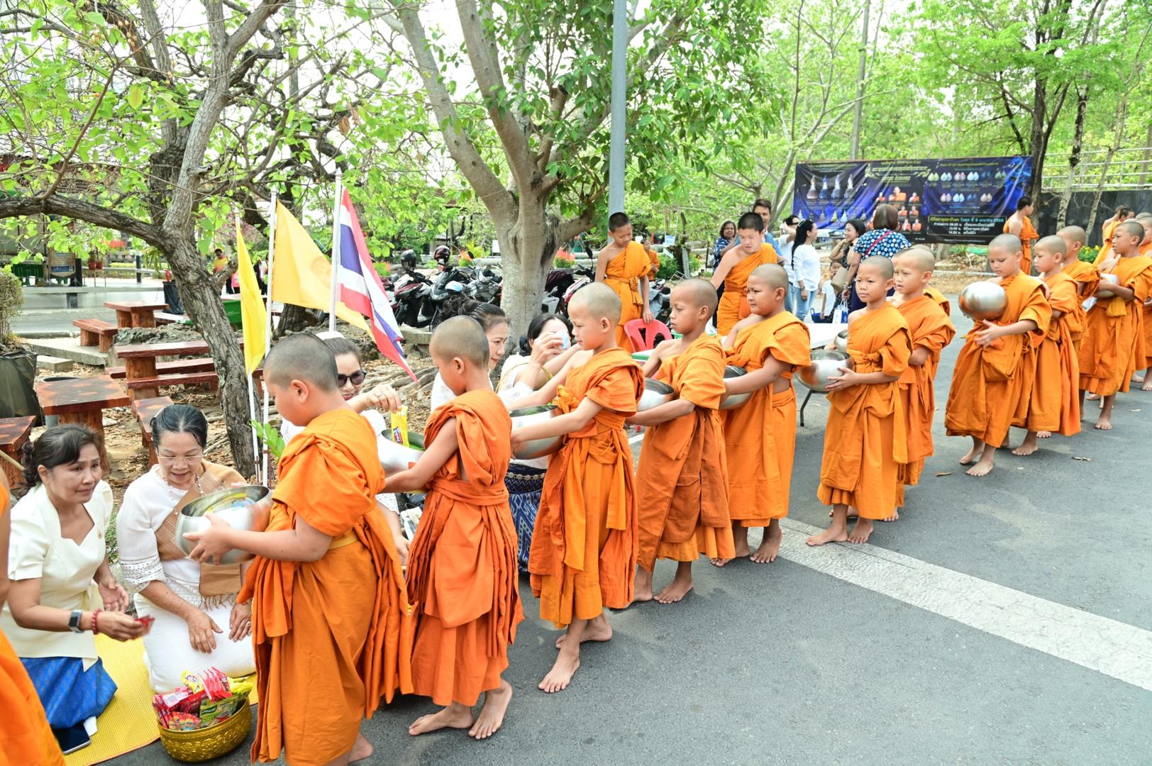 โรงพยาบาลมุกดาหารร่วมพิธีตักบาตร ถวายภัตตาหารเพล โครงการบรรพชาสามเณรภาคฤดูร้อนเฉลิมพระเกียรติ