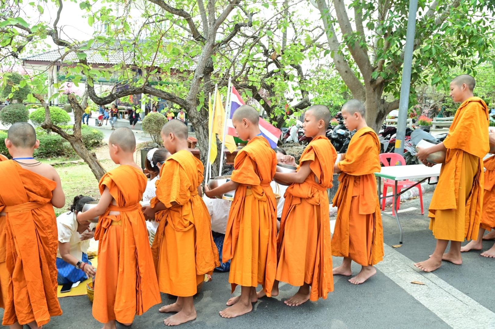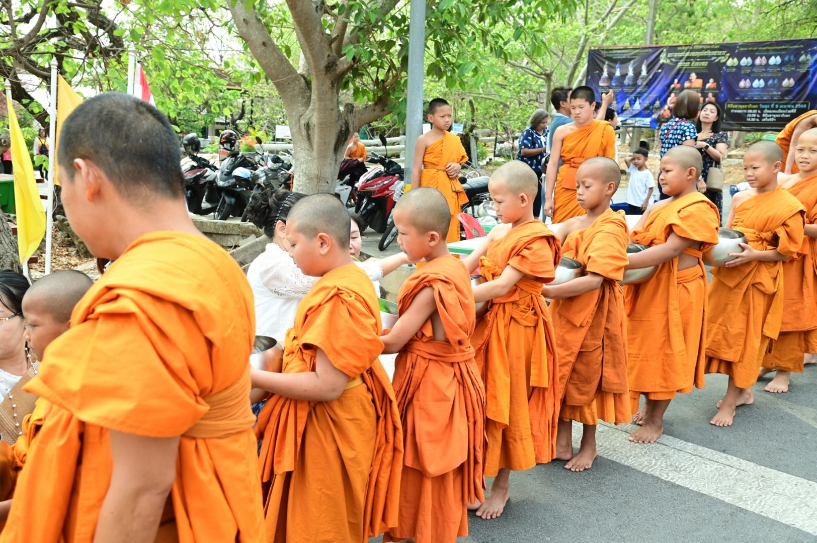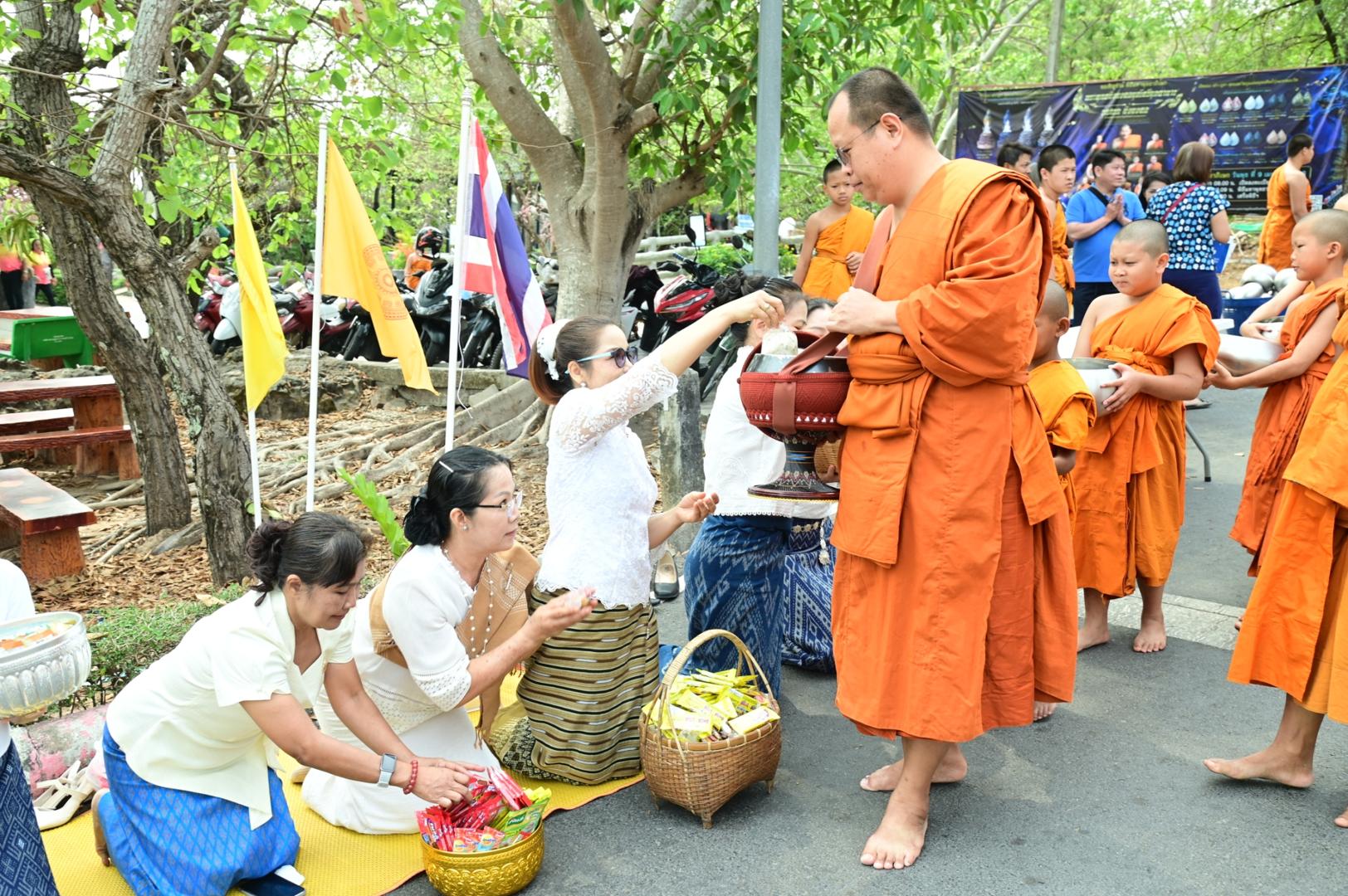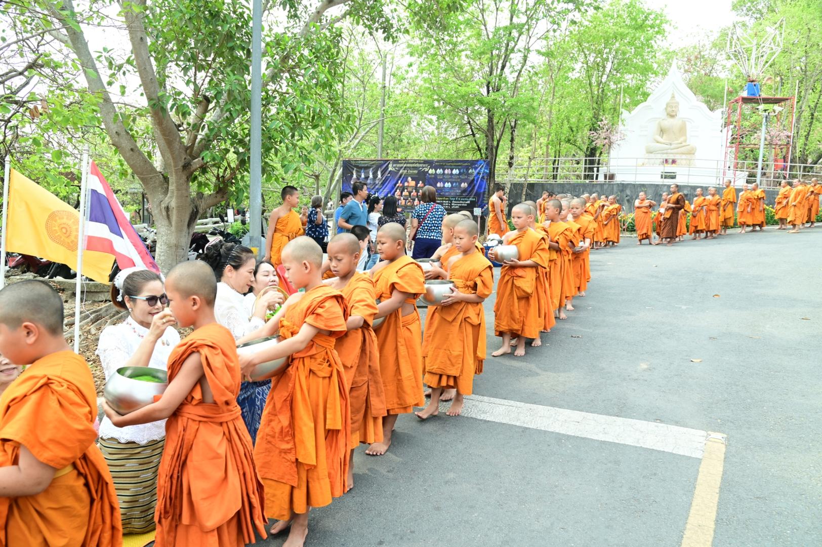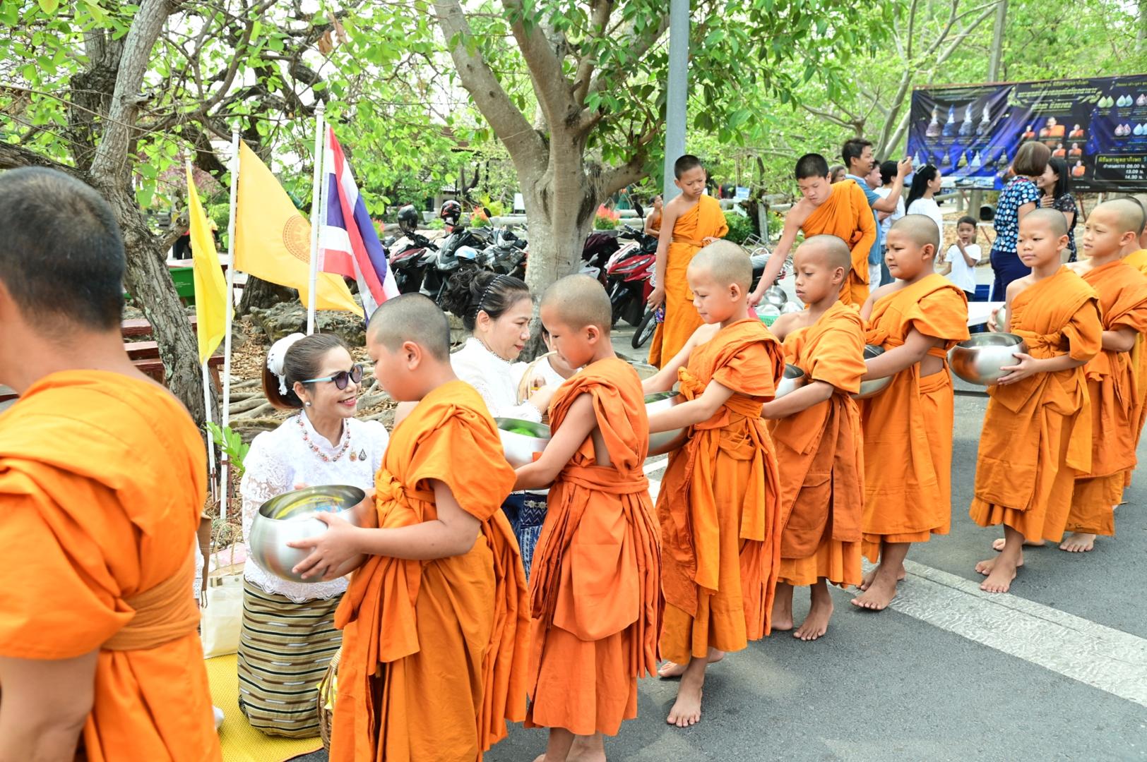 โรงพยาบาลมุกดาหารร่วมพิธีตักบาตร ถวายภัตตาหารเพล โครงการบรรพชาสามเณรภาคฤดูร้อนเฉลิมพระเกียรติ