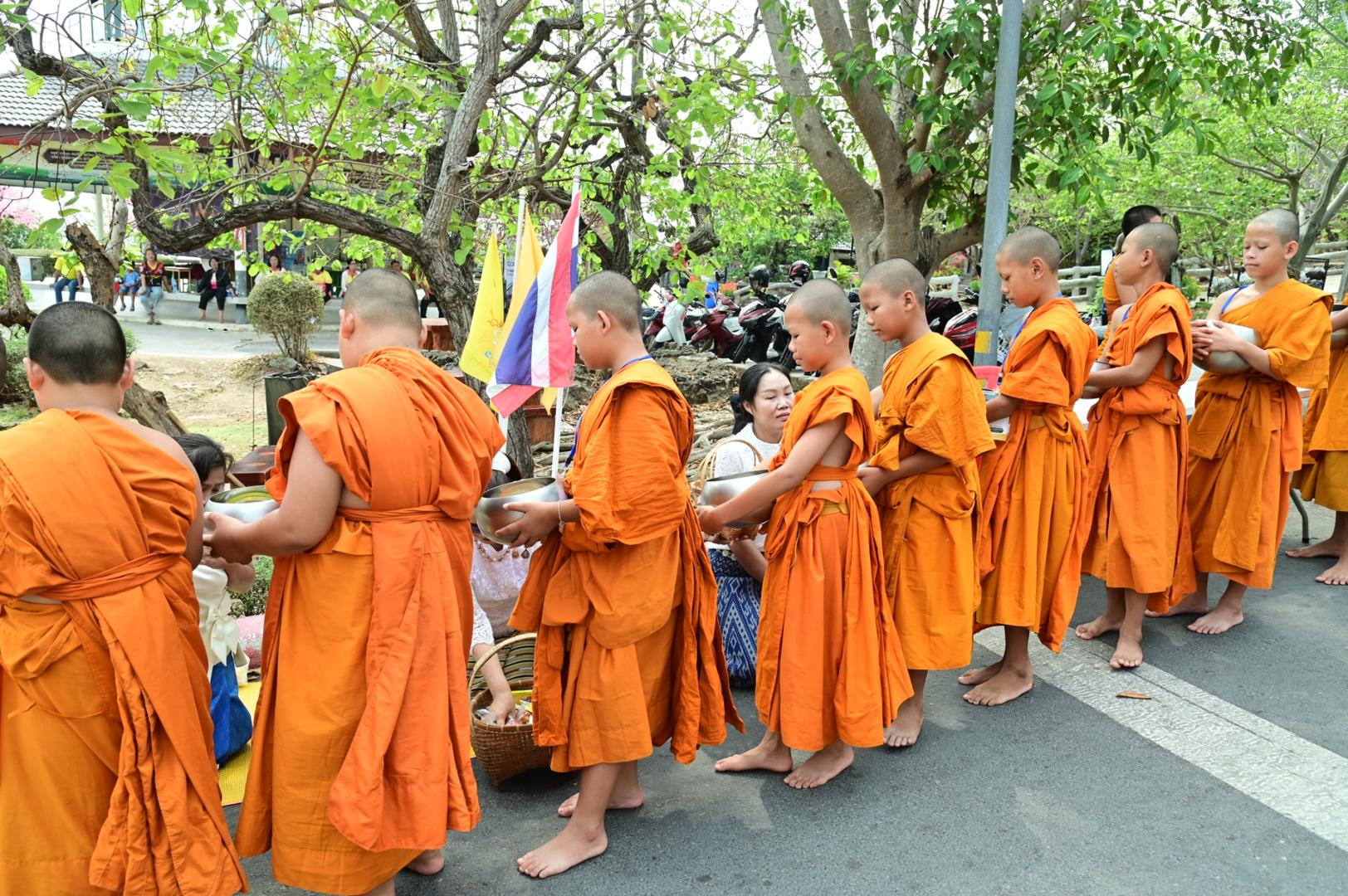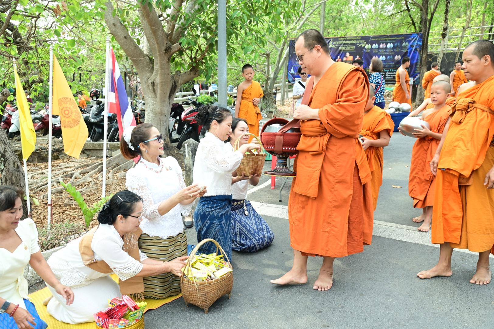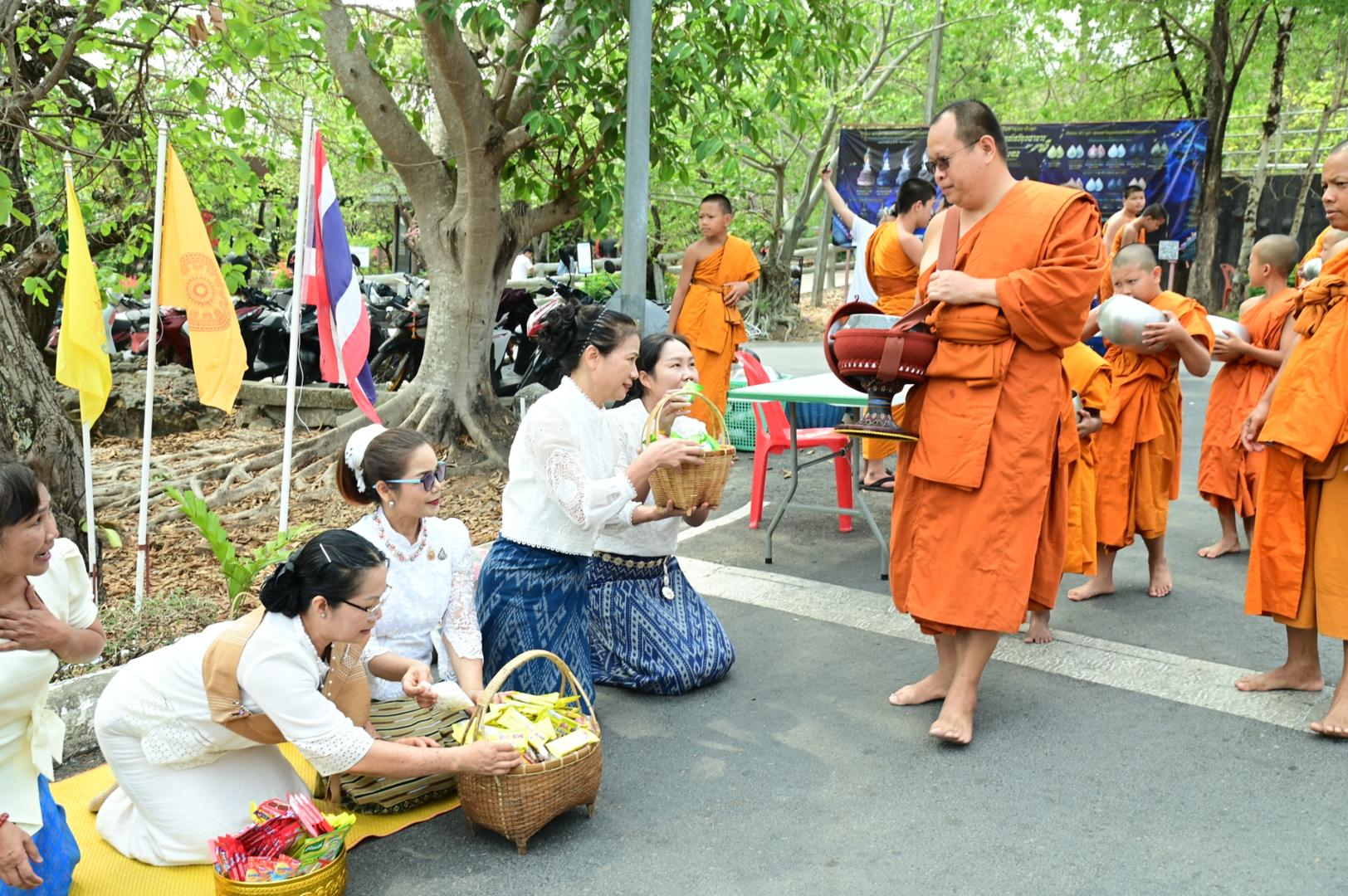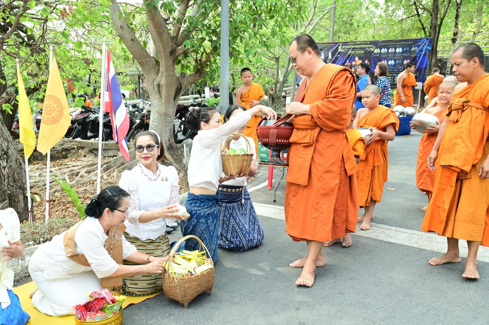 โรงพยาบาลมุกดาหารร่วมพิธีตักบาตร ถวายภัตตาหารเพล โครงการบรรพชาสามเณรภาคฤดูร้อนเฉลิมพระเกียรติ