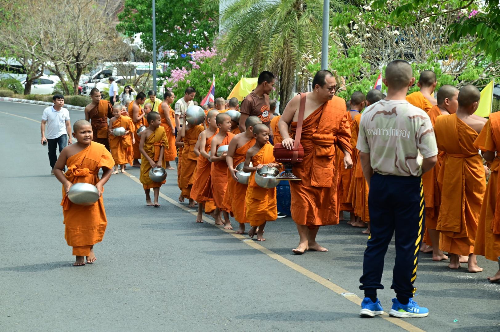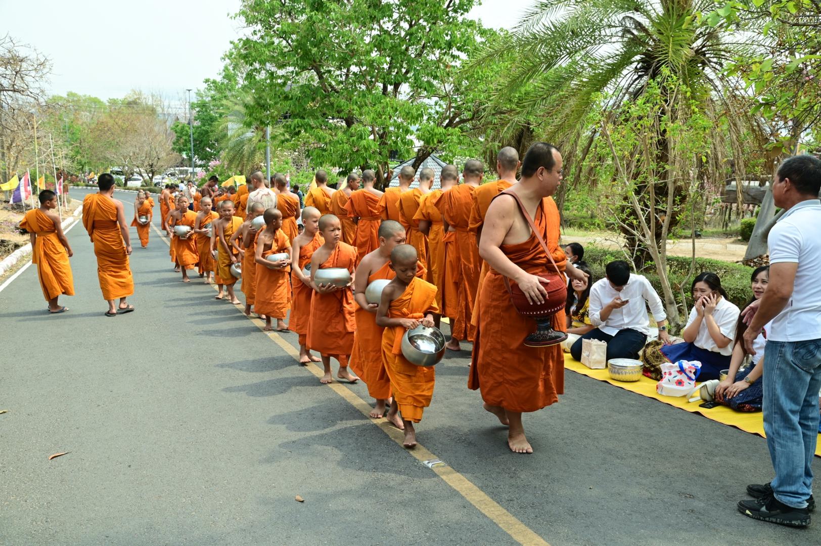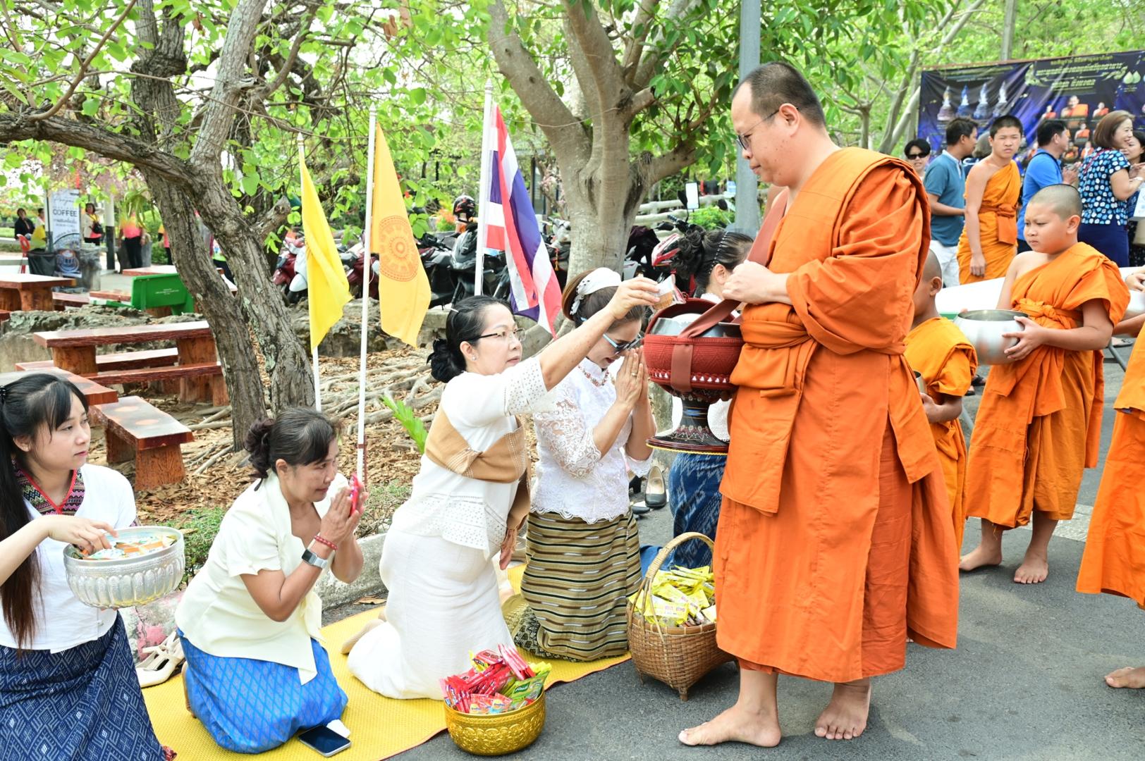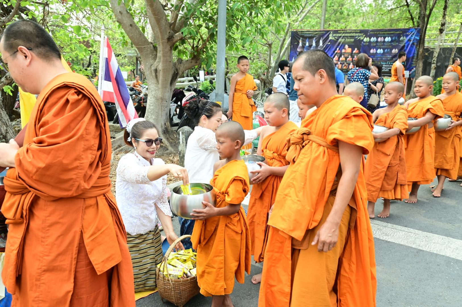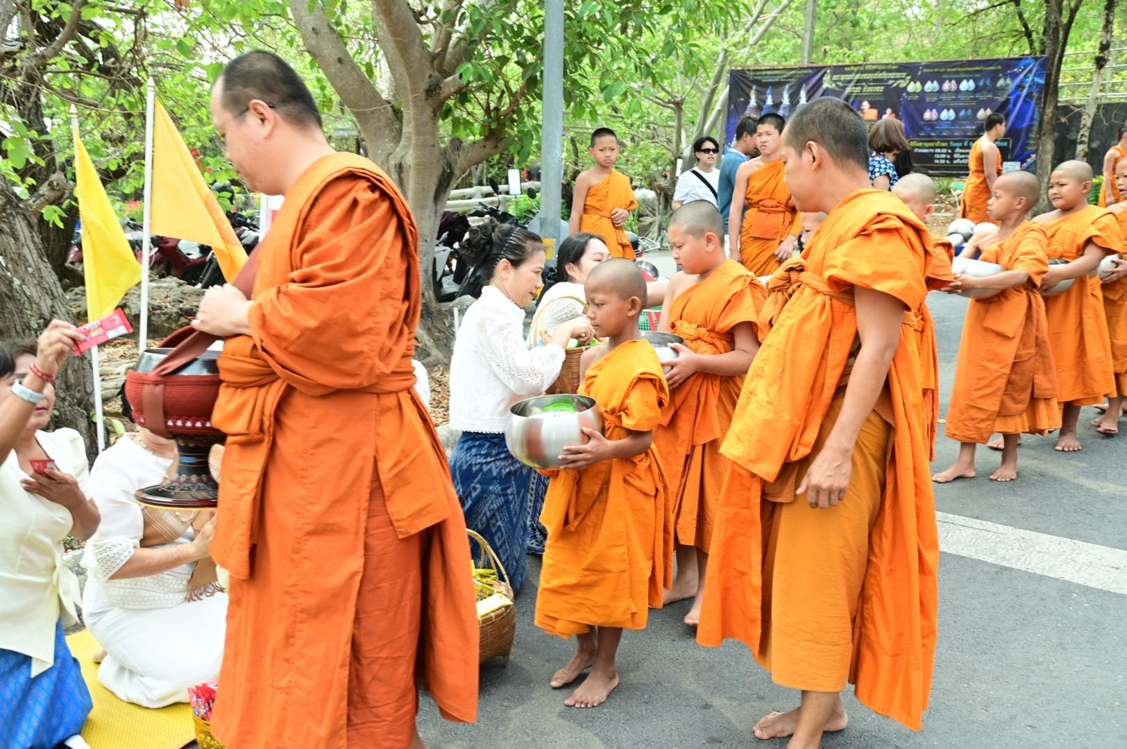 โรงพยาบาลมุกดาหารร่วมพิธีตักบาตร ถวายภัตตาหารเพล โครงการบรรพชาสามเณรภาคฤดูร้อนเฉลิมพระเกียรติ