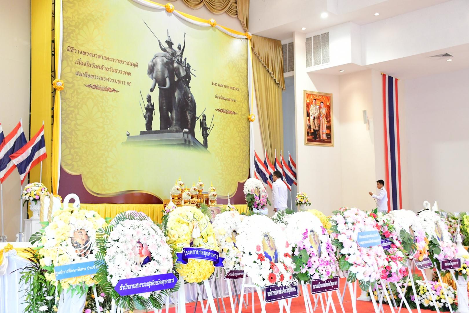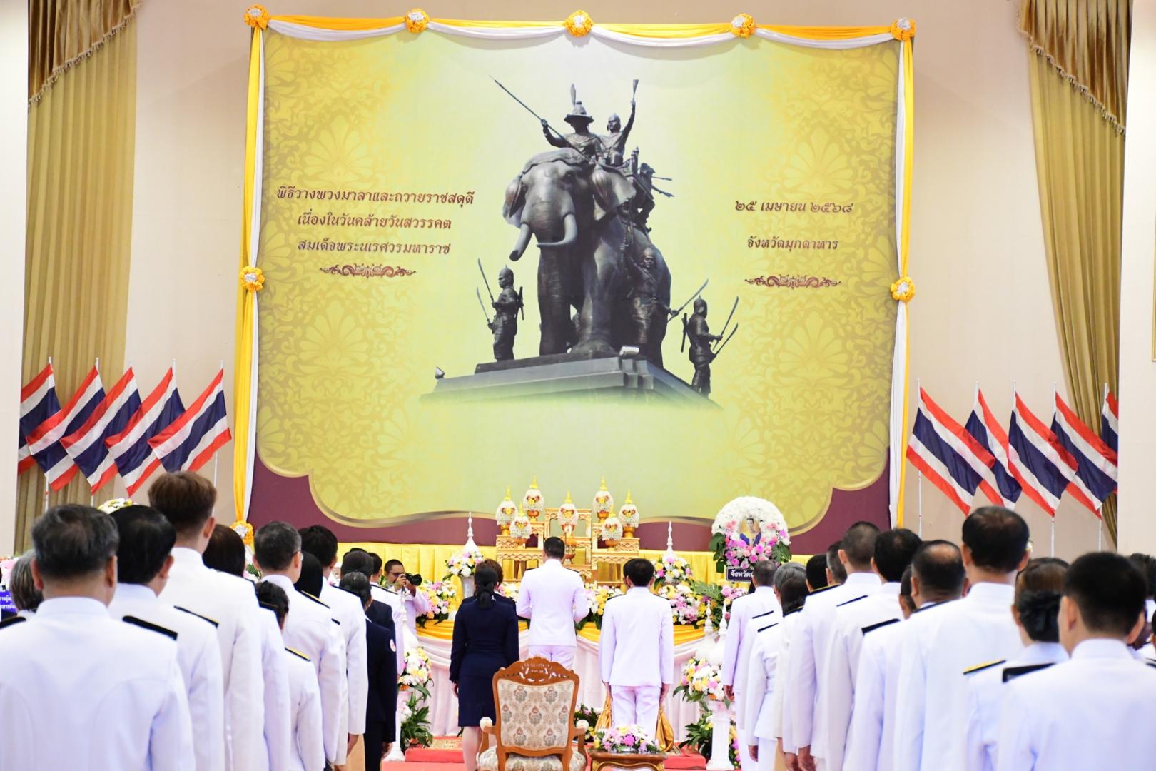 และเมื่อเวลา 07.30 น. แพทย์หญิงกันตินันท์ มหาสุวีระชัย ผู้อำนวยการโรงพยาบาลมุกดาหาร มอบหมายให้นายแพทย์วิลาศ นรินทร์ รองผู้อำนวยการฝ่ายการแพทย์ พร้อมด้วยบุคลากรในสังกัดกระทรวงสาธารณสุข เข้าร่วมพิธีวางพวงมาลาและถวายราชสดุดี เพื่อเป็นการน้อมรำลึกถึงพระมหากรุณาธิคุณของสมเด็จพระนเรศวรมหาราช