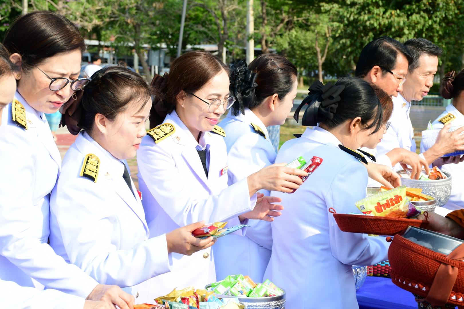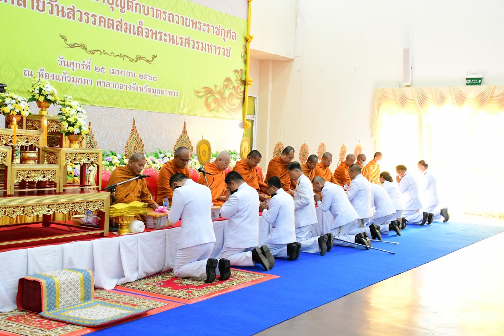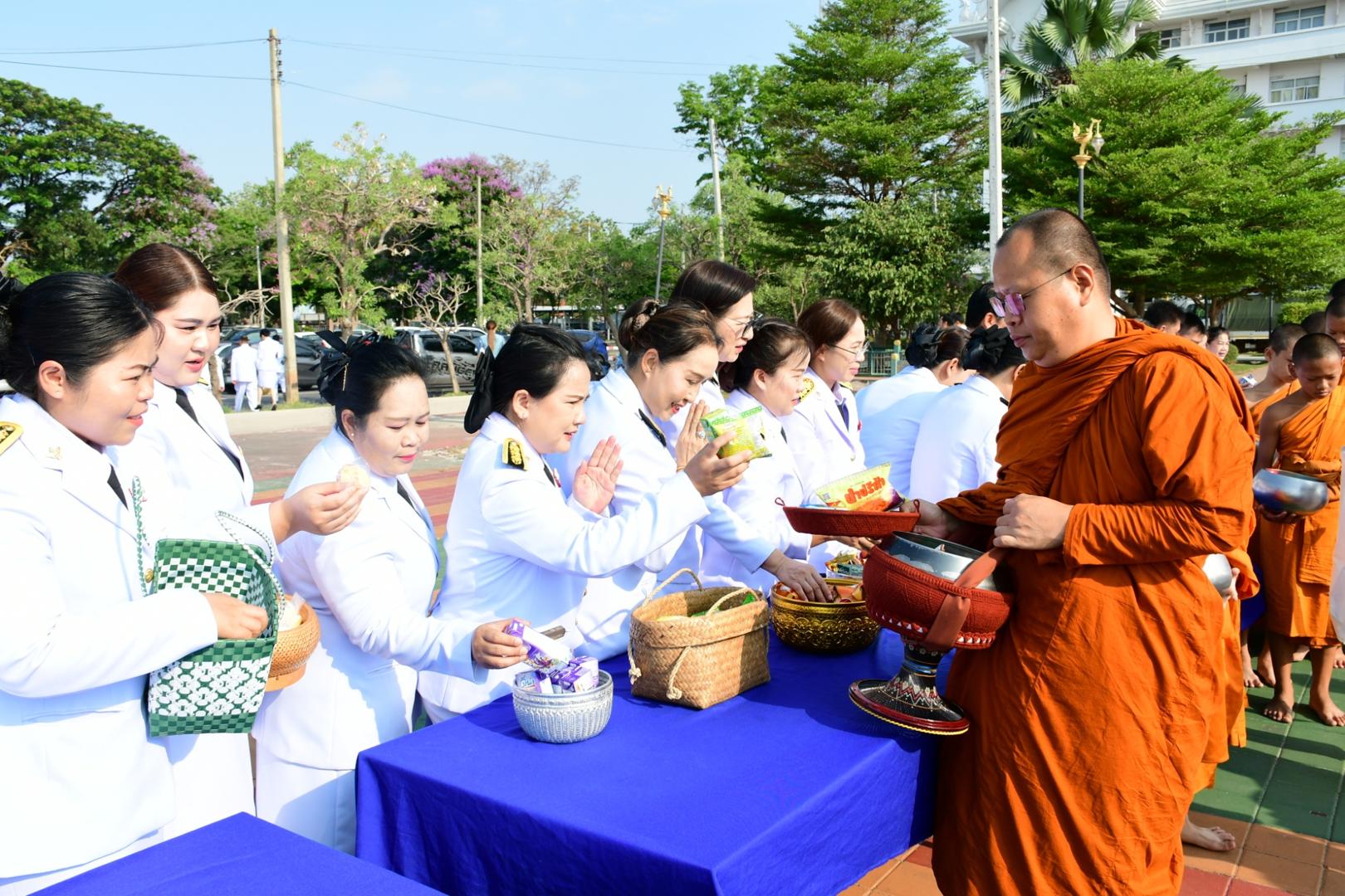 แพทย์หญิงกันตินันท์ มหาสุวีระชัย ผู้อำนวยการโรงพยาบาลมุกดาหาร มอบหมายให้นายแพทย์วิลาศ นรินทร์ รองผู้อำนวยการฝ่ายการแพทย์ พร้อมด้วยบุคลากรในสังกัดกระทรวงสาธารณสุข เข้าร่วมพิธีสวดพระพุทธมนต์ และทำบุญตักบาตร พระสงฆ์ จำนวน 59 รูป ถวายพระราชกุศล ณ ห้องแก้วมุกดา ศาลากลางจังหวัดมุกดาหาร