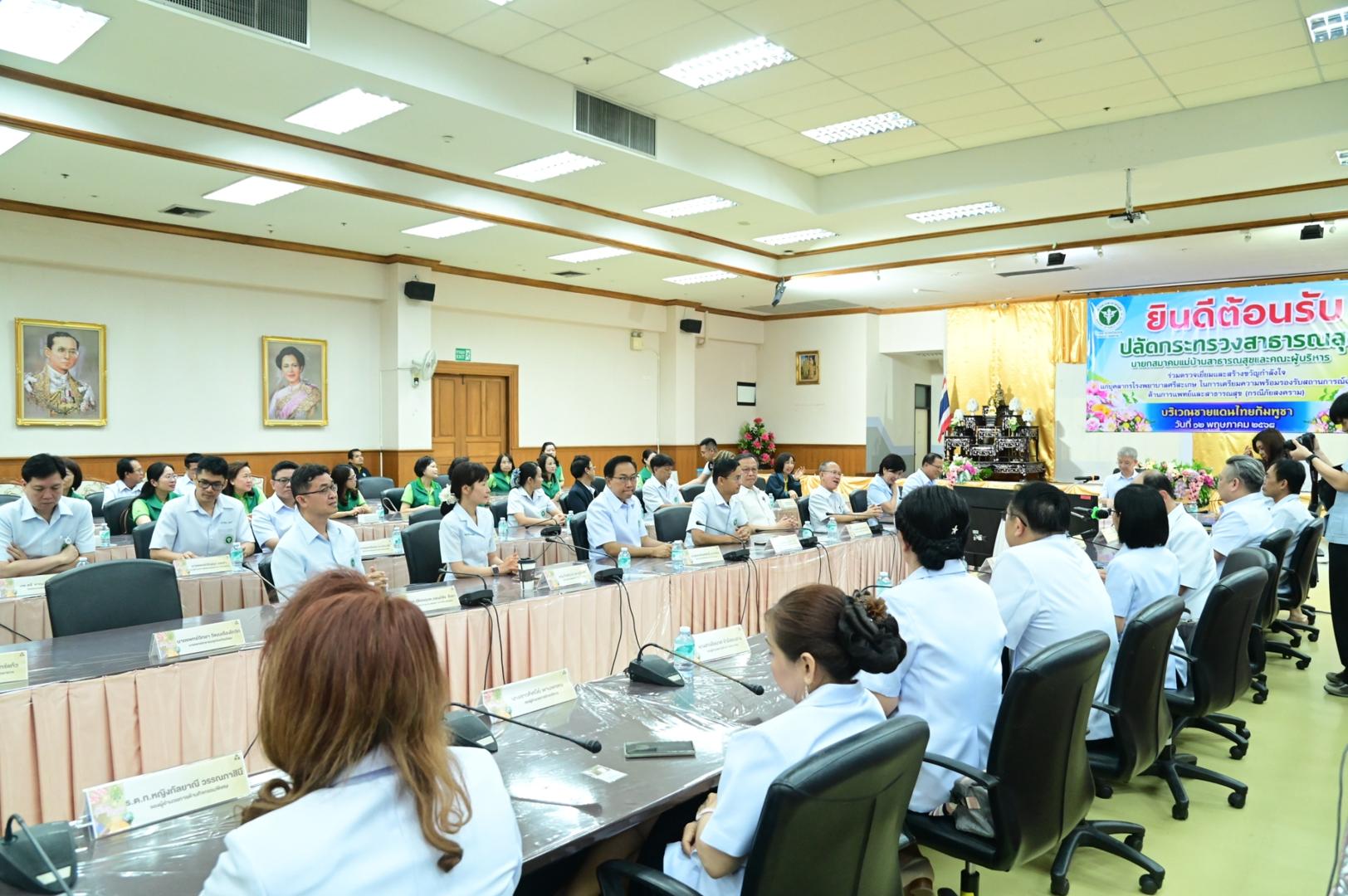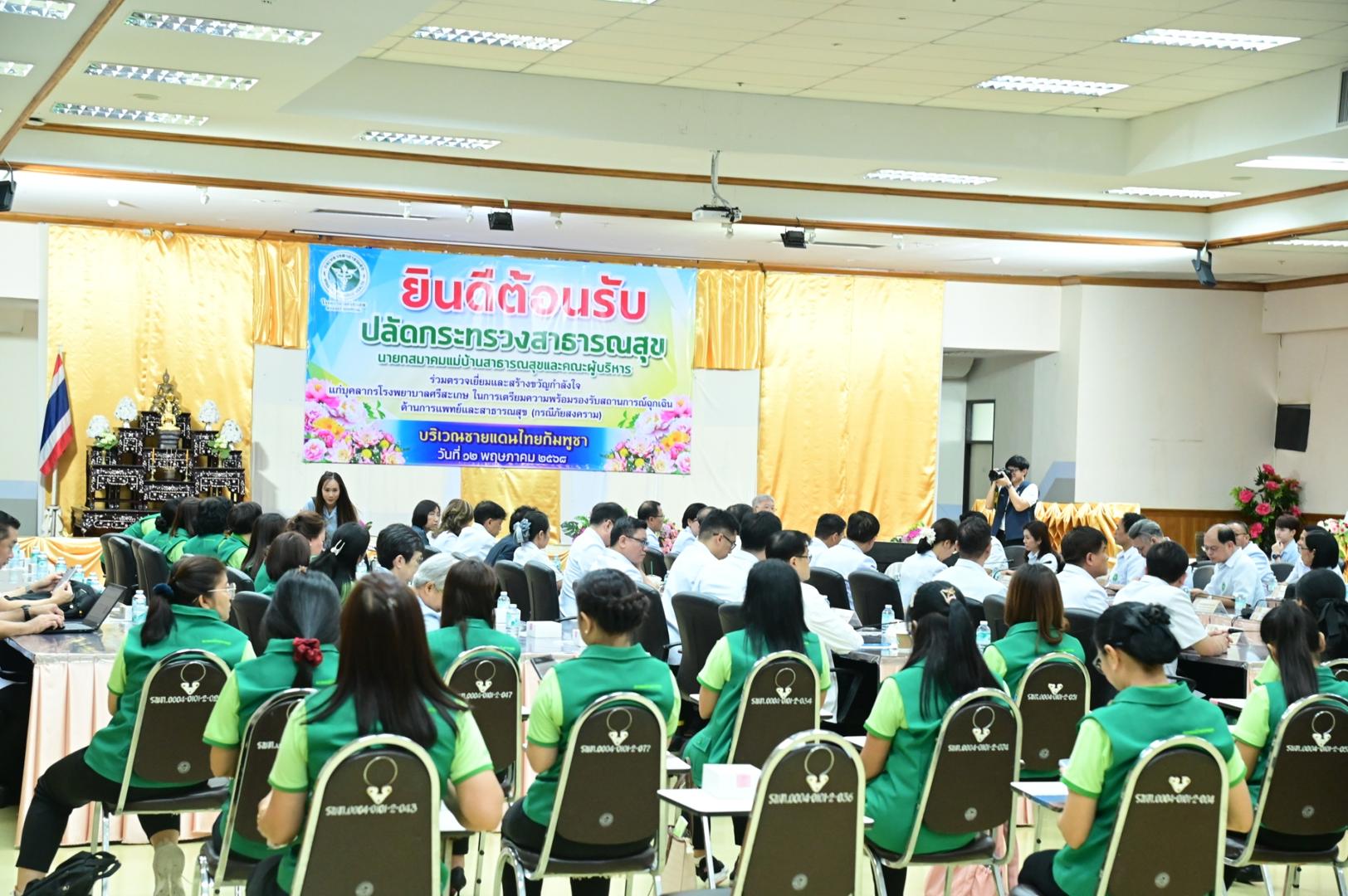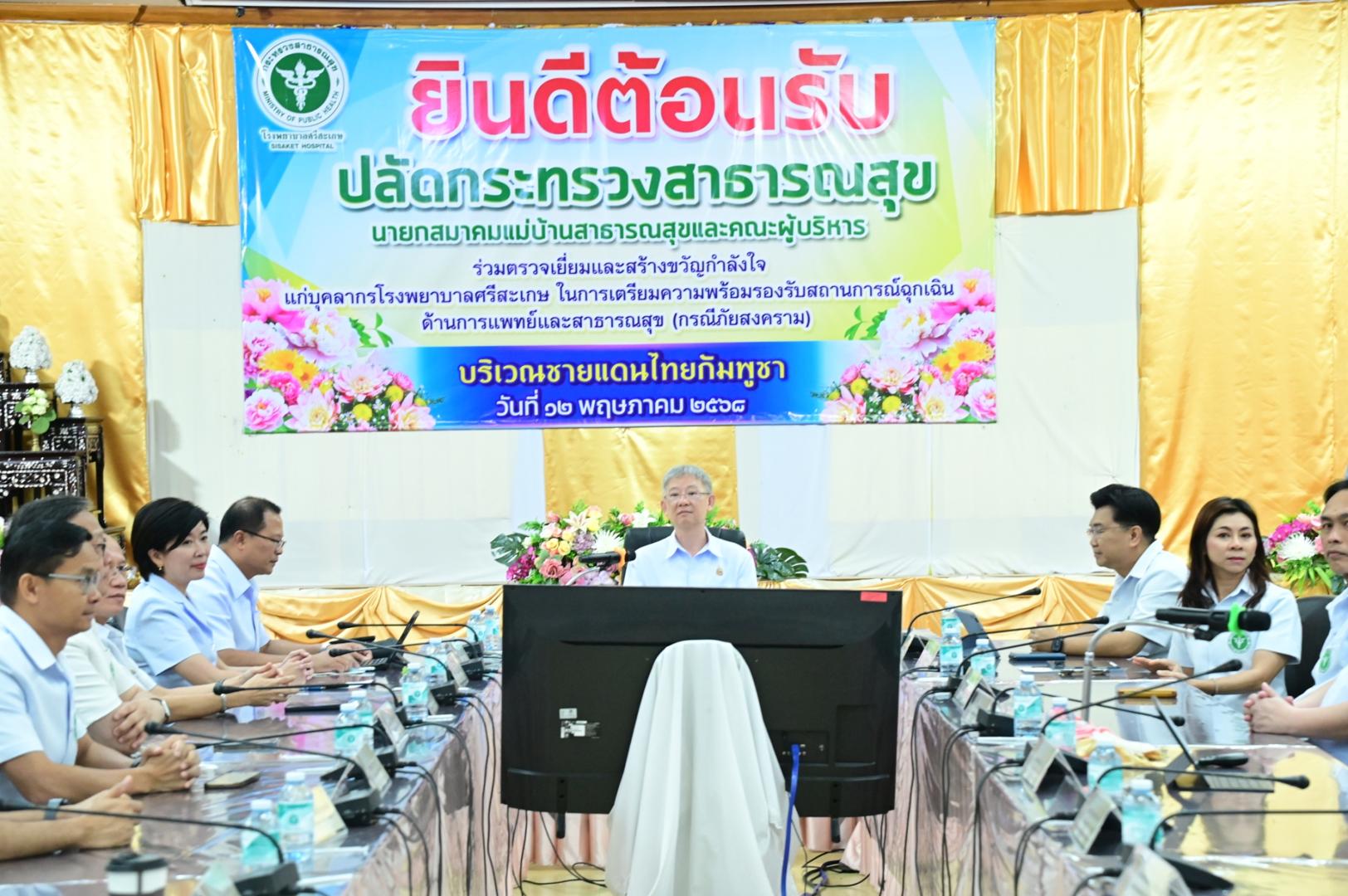แพทย์หญิงกันตินันท์ มหาสุวีระชัย ผู้อำนวยการโรงพยาบาลมุกดาหาร พร้อมด้วยคณะผู้บริหารและบุคลากรในสังกัดกระทรวงสาธารณสุข ร่วมต้อนรับการตรวจเยี่ยมและสร้างขวัญกำลังใจแก่บุคลากรโรงพยาบาลแม่ข่ายในการเตรียมความพร้อม รองรับสถานการณ์ฉุกเฉินด้านการแพทย์และสาธารณสุข (กรณีภัยสงคราม) บริเวณชายแดนไทย-กัมพูชา จังหวัดศรีสะเกษ ปี 2568 เพื่อสร้างความเข้มแข็งของภาคีเครือข่าย สร้างขวัญกำลังใจ แก่บุคลากรสาธารณสุข และเตรียมความพร้อมของหน่วยบริการในระหว่างวันที่ 11-12 พฤษภาคม 2568