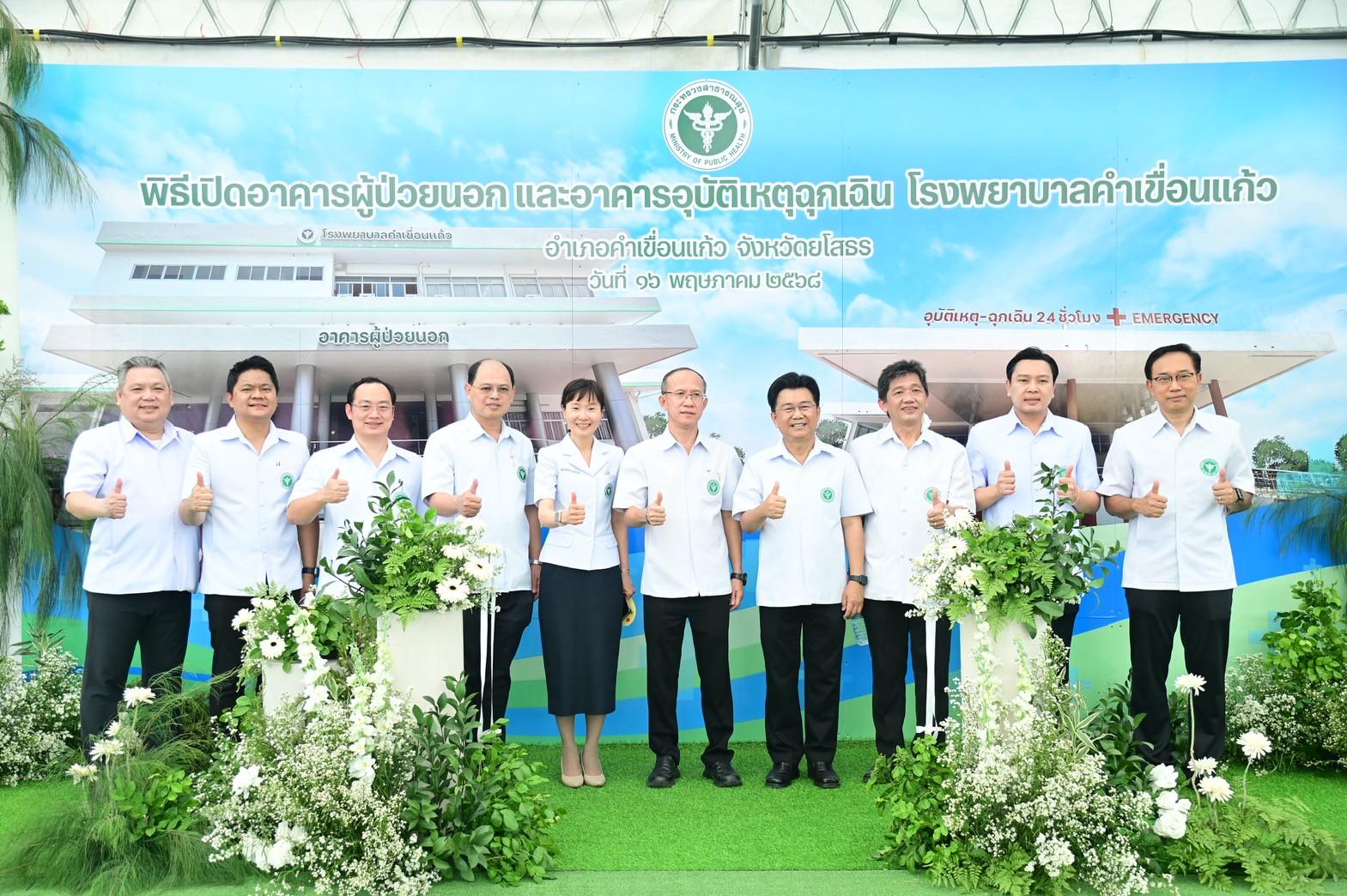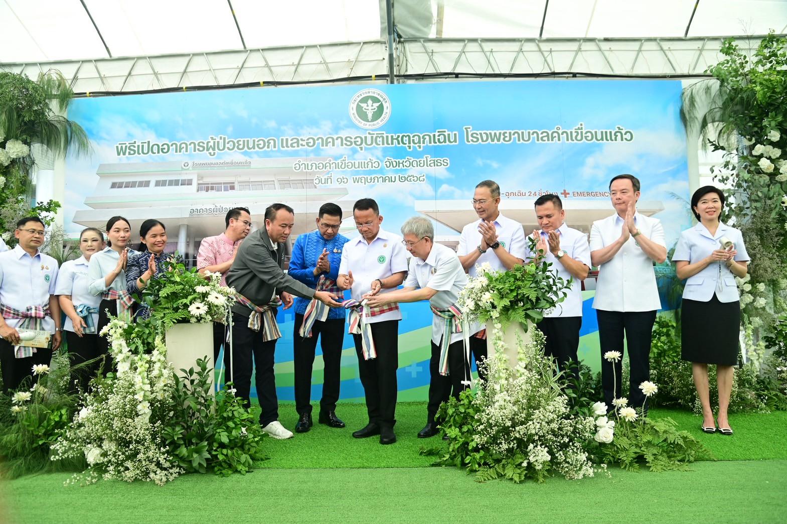 จากนั้นนายสมศักดิ์ เทพสุทิน รัฐมนตรีว่าการกระทรวงสาธารณสุข เป็นประธานเปิดอาคารผู้ป่วยนอก และอาคารอุบัติเหตุฉุกเฉิน โรงพยาบาลคำเขื่อนแก้ว และลงพื้นที่เยี่ยมชมนิทรรศการ พบปะเจ้าหน้าที่ ตรวจเยี่ยมให้กำลังใจ จุดบริการอาคารอุบัติเหตุฉุกเฉิน และอาคารผู้ป่วยนอก โรงพยาบาลคำเขื่อนแก้ว ให้สัมภาษณ์สื่อมวลชน