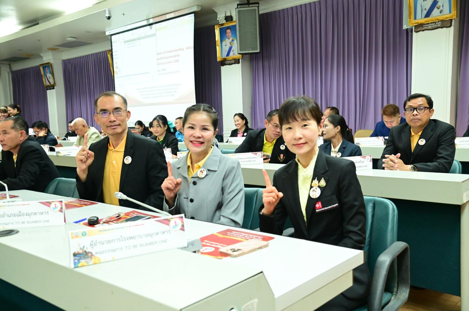 โรงพยาบาลมุกดาหาร ร่วมประชุมฯ และลงนามบันทึกความเข้าใจ (MOU) โครงการรณรงค์ป้องกันและแก้ไขปัญหายาเสพติด TO BE NUMBER ONE จังหวัดมุกดาหาร 2568