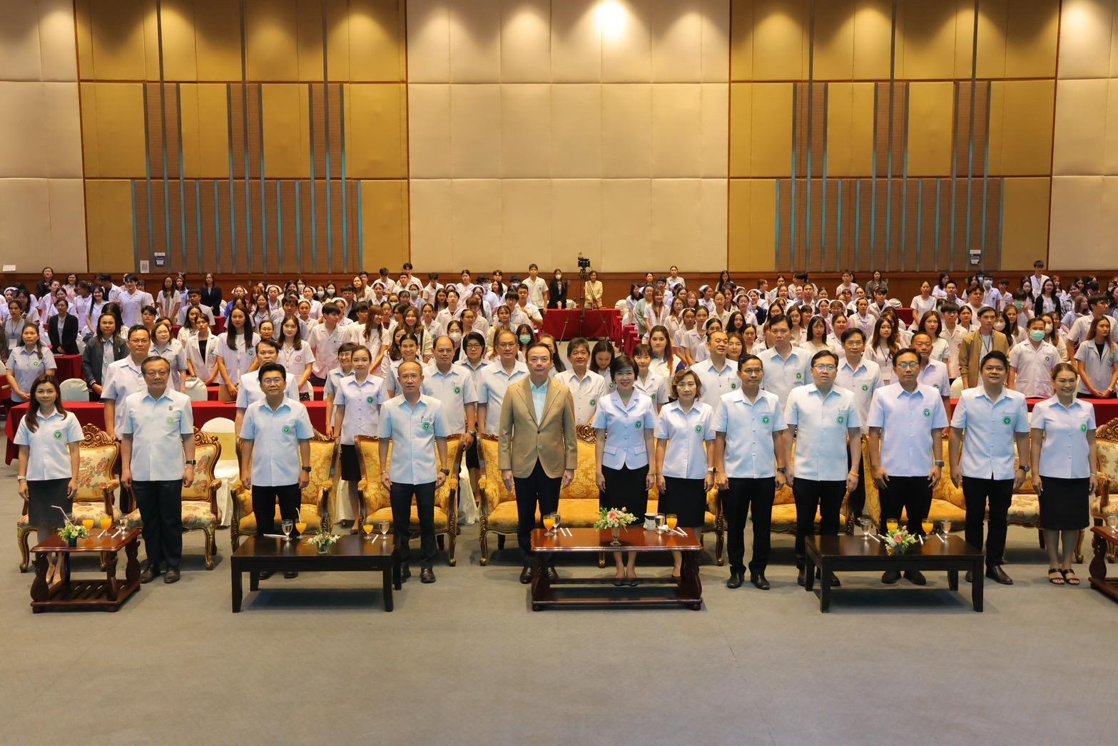แพทย์หญิงกันตินันท์ มหาสุวีระชัย ผู้อำนวยการโรงพยาบาลมุกดาหาร พร้อมด้วยคณะผู้บริหารและบุคลากรในสังกัดกระทรวงสาธารณสุขร่วมเป็นเกียรติและเข้าร่วมกิจกรรมโครงการอบรมข้าราชการพลเรือนบรรจุใหม่ “หลักสูตรต้นกล้าข้าราชการ” เขตสุขภาพที่ 10 ประจำปีงบประมาณ 2568 เพื่อปฐมนิเทศและพัฒนาข้าราชการพลเรือนบรรจุใหม่ ให้เข้าใจถึงระเบียบแบบแผนของทางราชการและเป็นข้าราชการที่ดี ในระหว่างวันที่ 21-23 พฤษภาคม 2568
