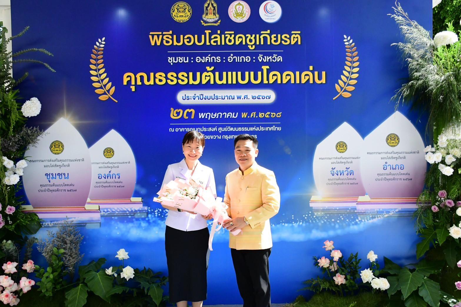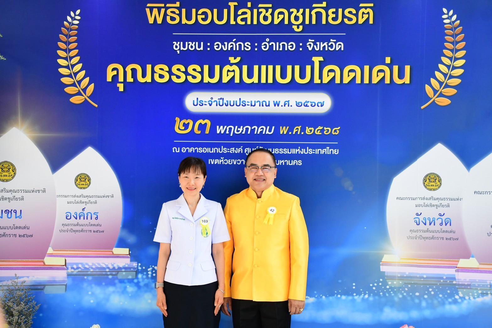 โดยมีนางสาวแพทองธาร ชินวัตร นายกรัฐมนตรี เป็นประธานฯ นางสาวสุดาวรรณ หวังศุภกิจโกศล รัฐมนตรีว่าการกระทรวงวัฒนธรรม เป็นผู้มอบโล่รางวัลเชิดชูเกียรติองค์กรคุณธรรมต้นแบบโดดเด่น ประจำปีงบประมาณ พ.ศ.2567 ในครั้งนี้