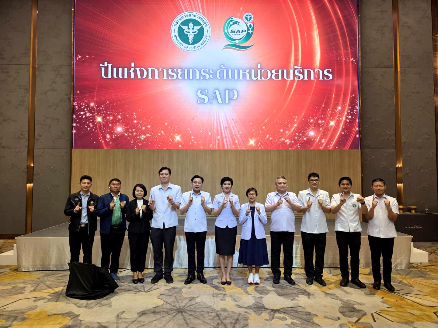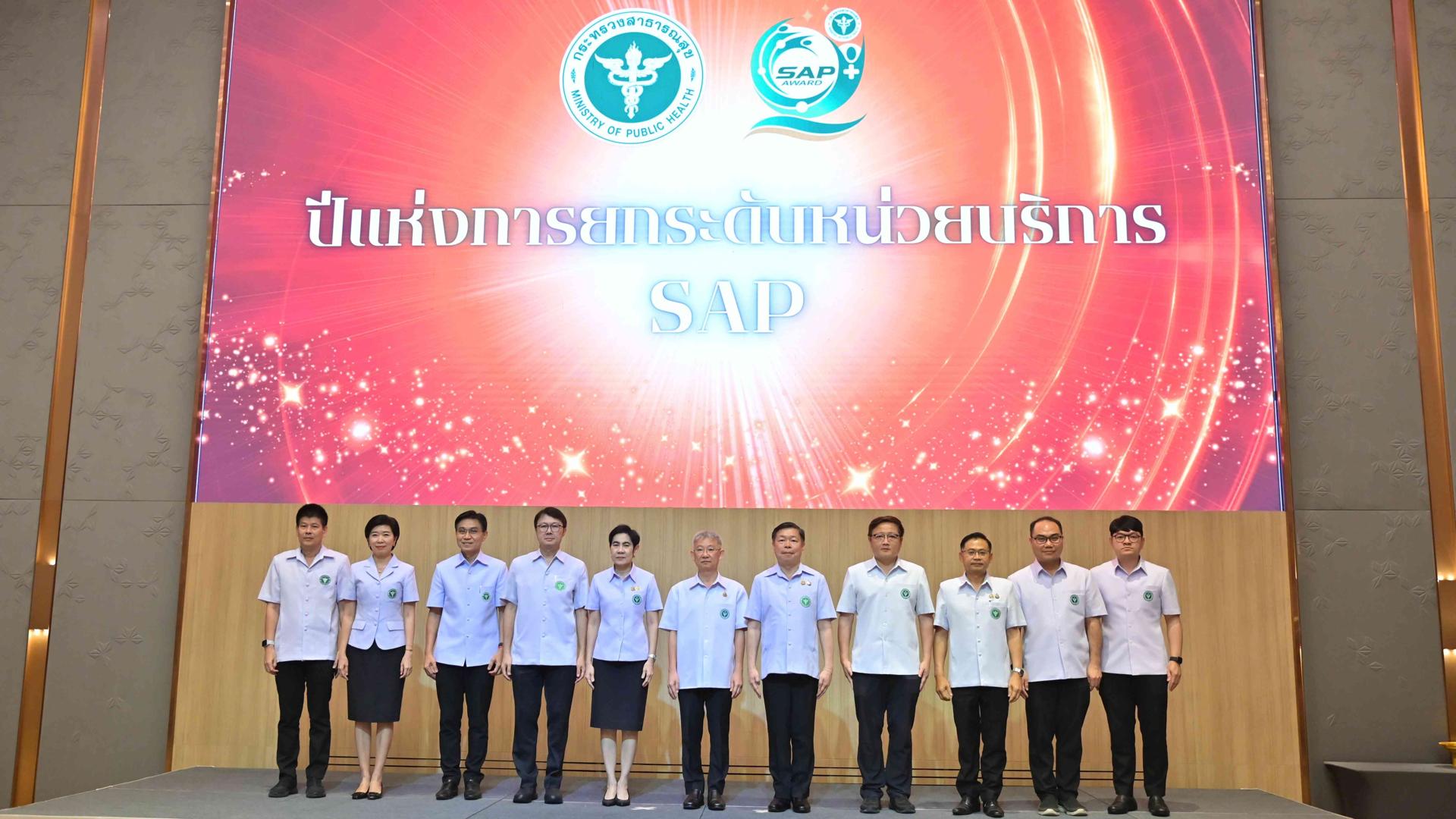 โดยนพ.โอภาส การย์กวินพงศ์ ปลัดกระทรวงสาธารณสุข เป็นประธานเปิดการประชุมเชิงปฏิบัติการการพัฒนาศักยภาพหน่วยบริการในสังกัดสำนักงานปลัดกระทรวงสาธารณสุข ตามรูปแบบ SAP ปีงบประมาณ พ.ศ. 2568 พร้อมมอบนโยบายสำคัญในการยกระดับหน่วยบริการทั่วประเทศ และมอบรางวัลการประกวดออกแบบตราสัญลักษณ์ (LOGO) ต้นแบบการยกระดับบริการสุขภาพของหน่วยบริการในรูปแบบ SAP (SAP AWARD)