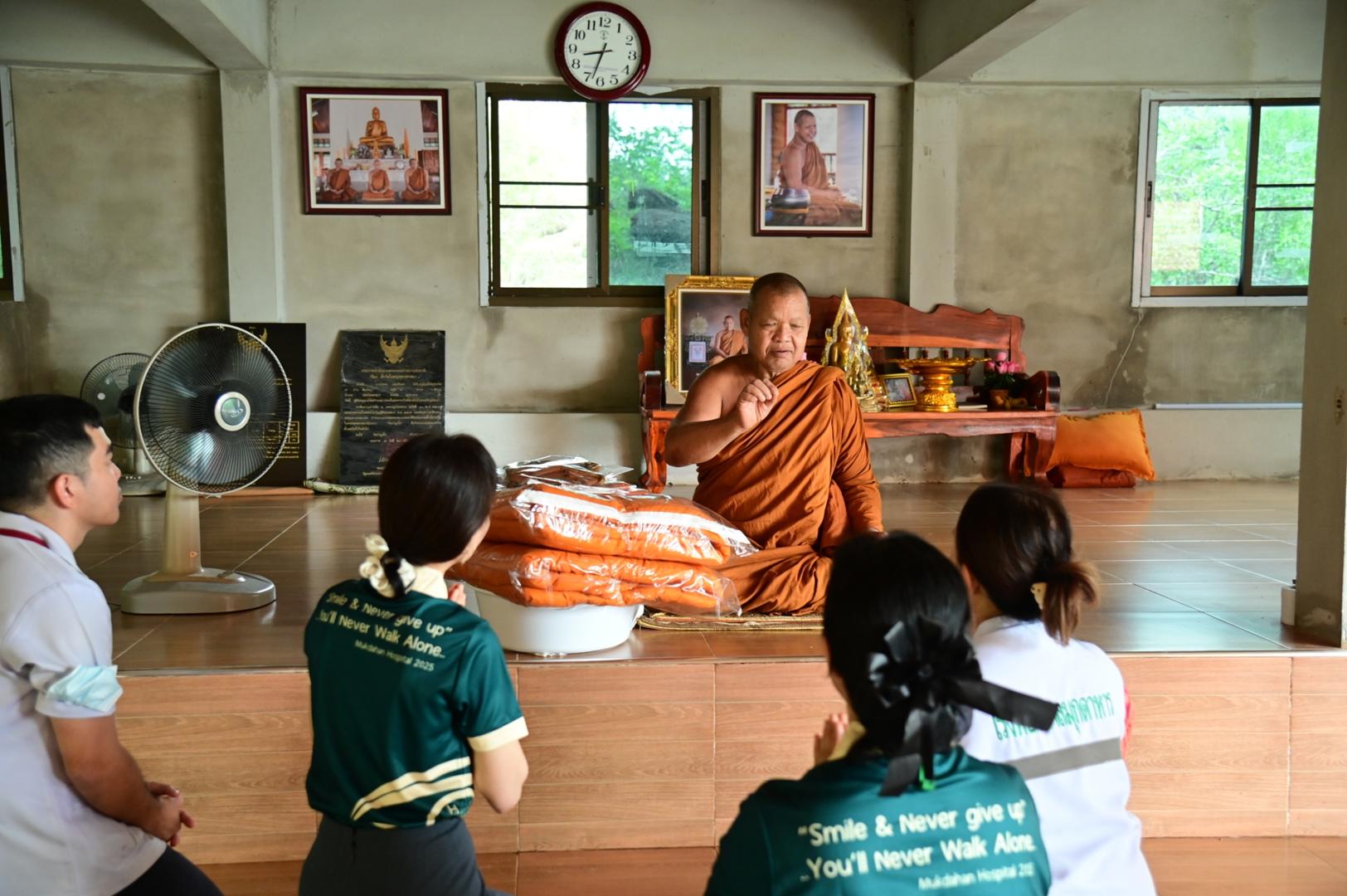ในการนี้ คณะโรงพยาบาลมุกดาหารได้ถวาย เงินทำบุญ ผ้าอาบน้ำฝน ผ้าห่ม และผ้าคลุมบาตรพระ เพื่อเป็นการสนับสนุนการปฏิบัติธรรมของพระสงฆ์ในช่วงเข้าพรรษา และสืบสานพระพุทธศาสนาให้เจริญมั่นคงสืบไป