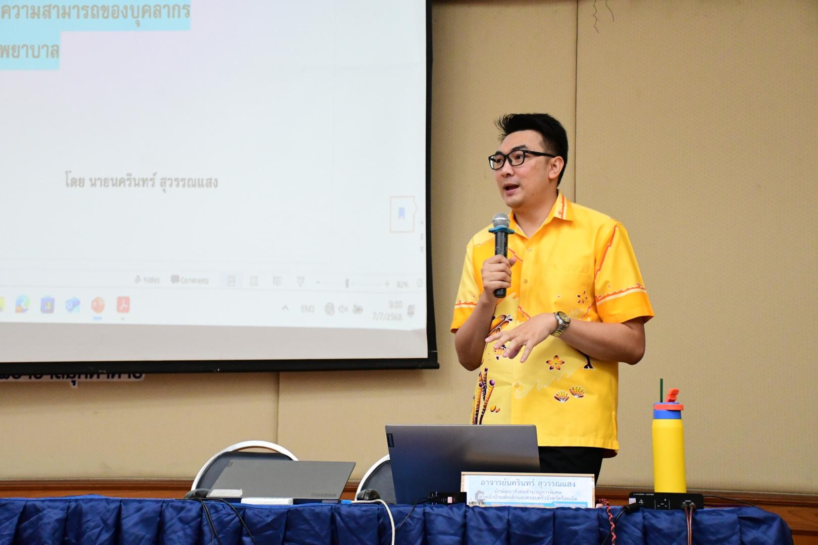 โดยได้รับเกียรติจากอาจารย์นครินทร์ สุวรรณแสง นักพัฒนาสังคมชำนาญการพิเศษ หัวหน้าบ้านพักเด็กและครอบครัวจังหวัดร้อยเอ็ด เป็นวิทยากรบรรยายเรื่องสมรรถนะวิชาชีพพยาบาล สำหรับบริการสุขภาพชาวต่างชาติ และการพัฒนาสมรรถนะวิชาชีพพยาบาล สำหรับบริการสุขภาพชาวต่างชาติ